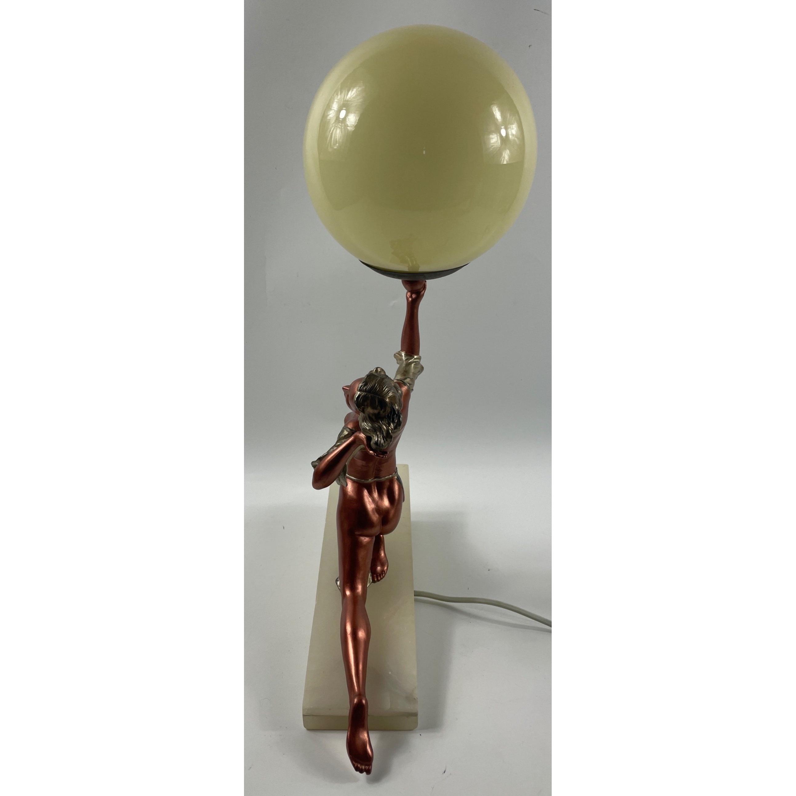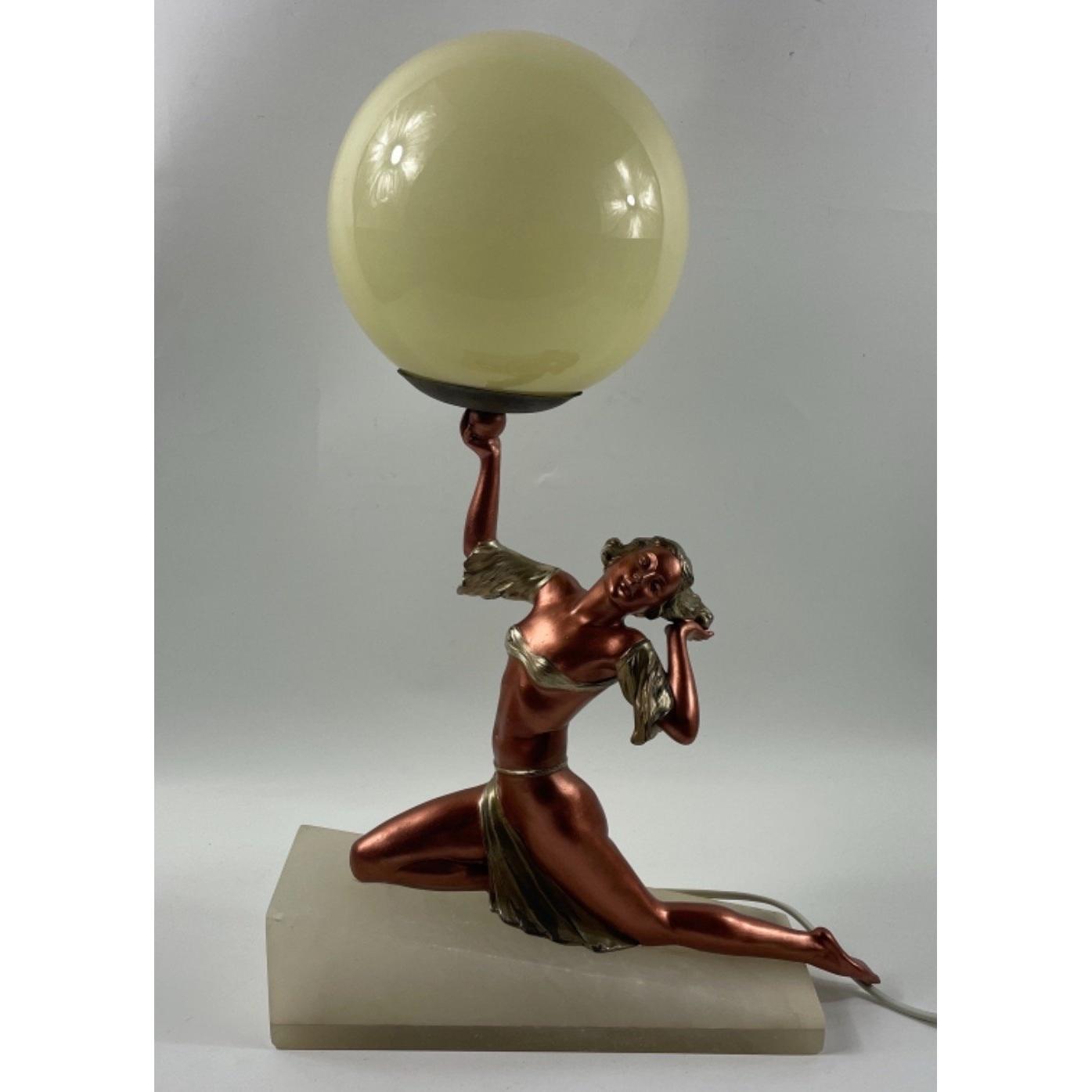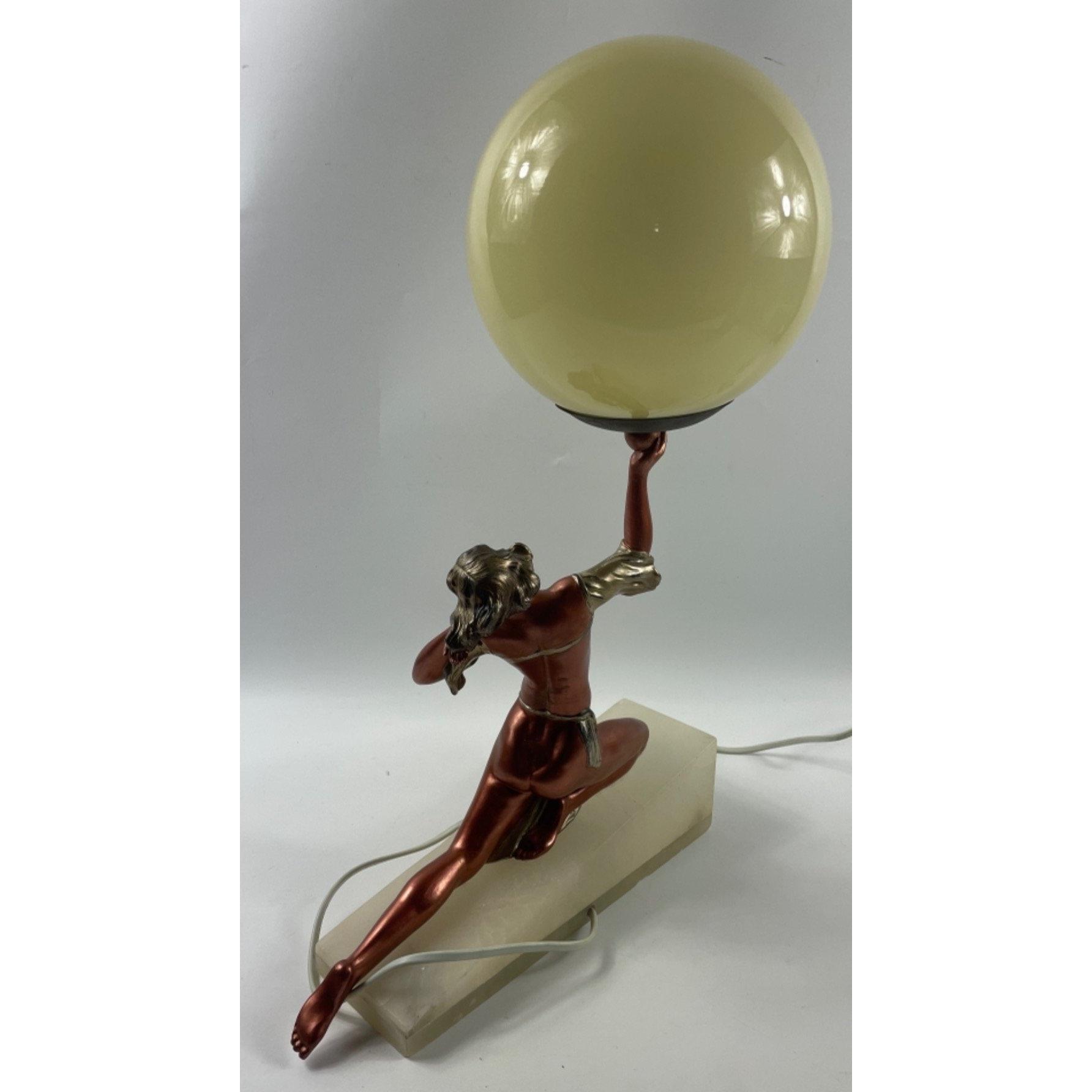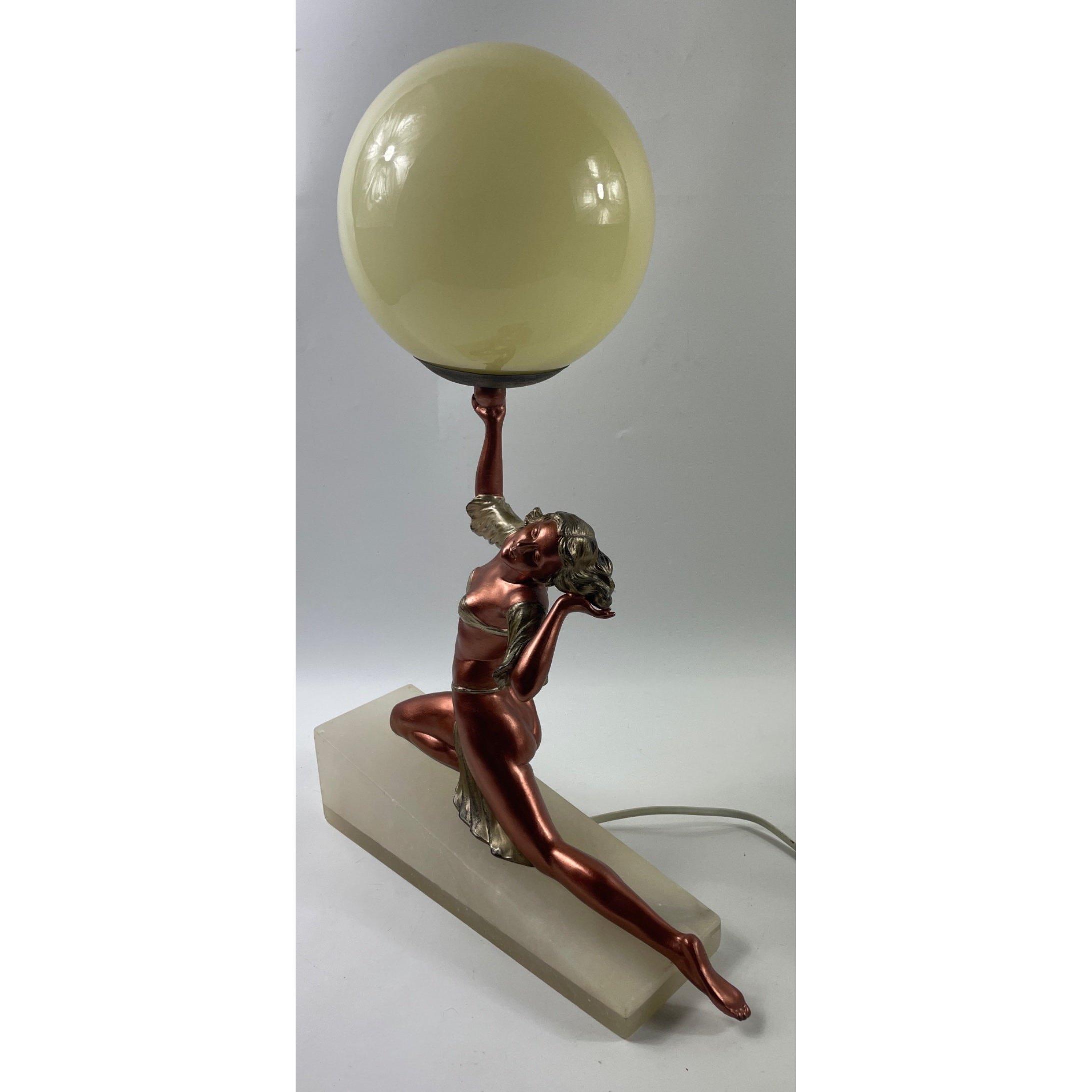 ART DECO 'LADY LAMP' - A large spelter kneeling lady lamp, thought to be designed by LORENZI - unsigned.