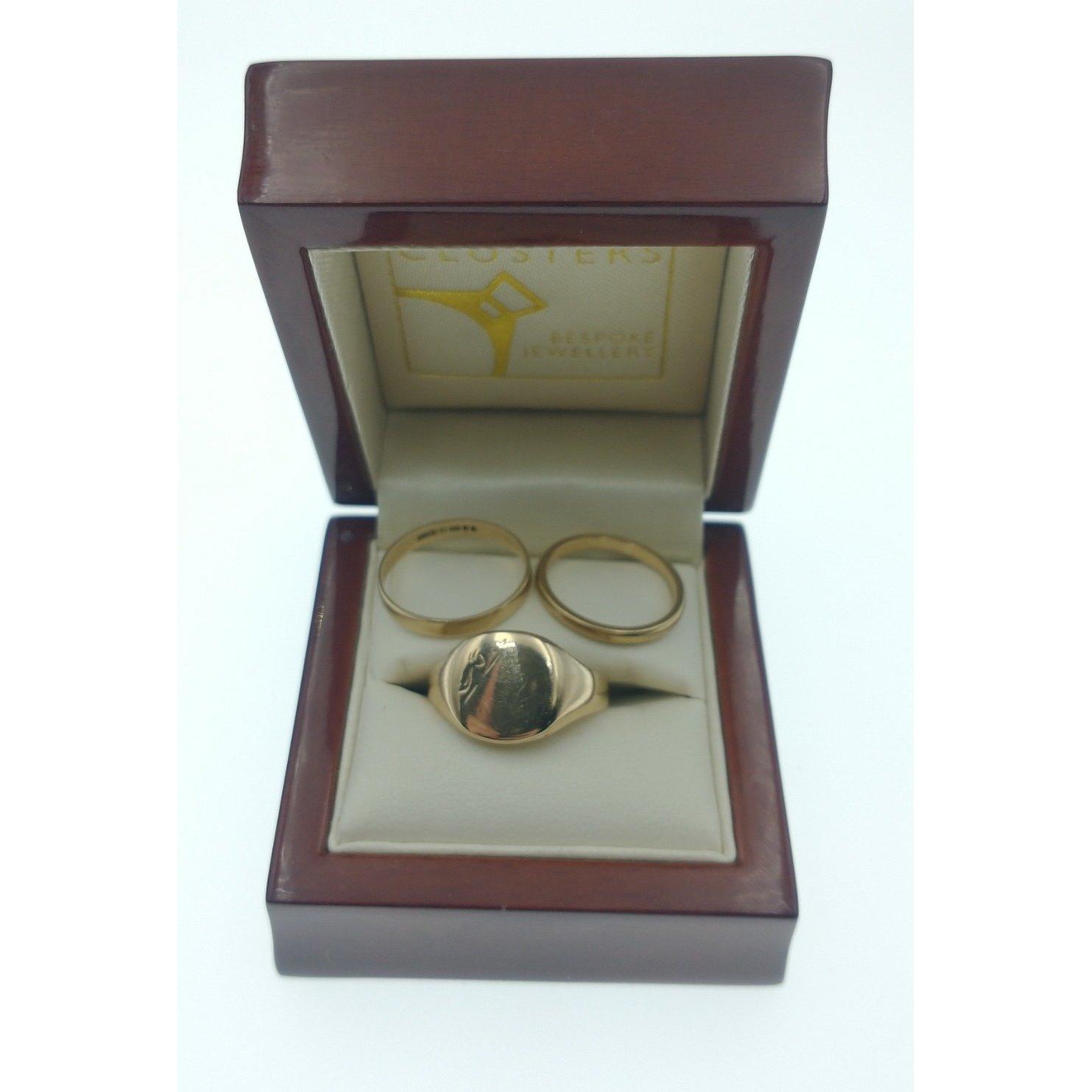 Three 9ct rings to include a man's signet ring size S and 2 wedding bands size J and N, gross weight 6gApprox 3 pieces