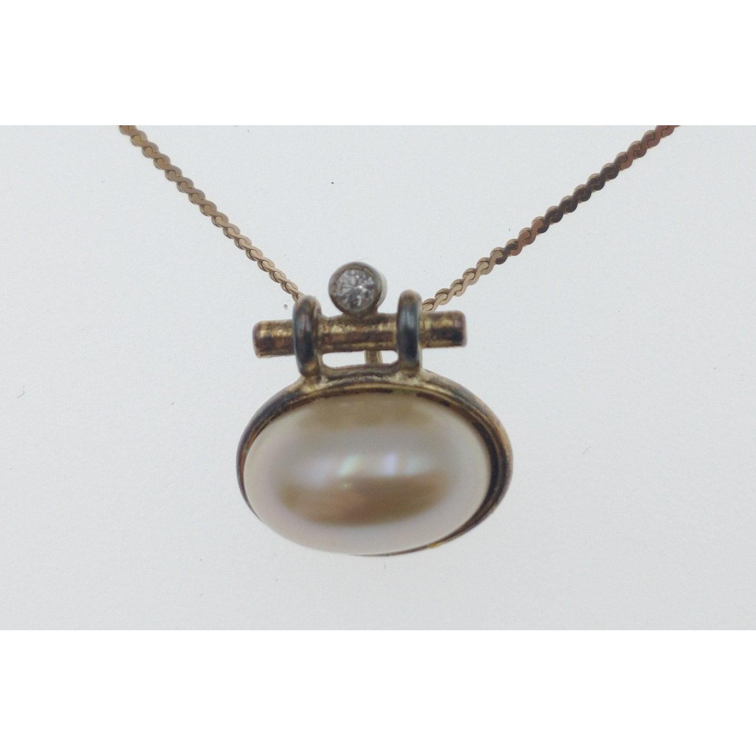 A 9ct gold chain with pearl and white stone pendant, chain 40cm, gross weight 2g plus a pair of pearl earrings in a Monet boxApprox 2 pieces