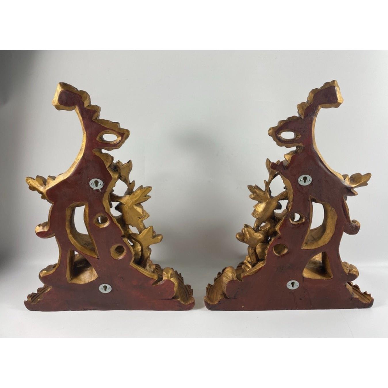 A gilded pair of HEAVILY CARVED wooden wall-mounted demi-lune shelves in gold length of shelf at rear 33cm, length of piece approx 47cmApprox 2 pieces
