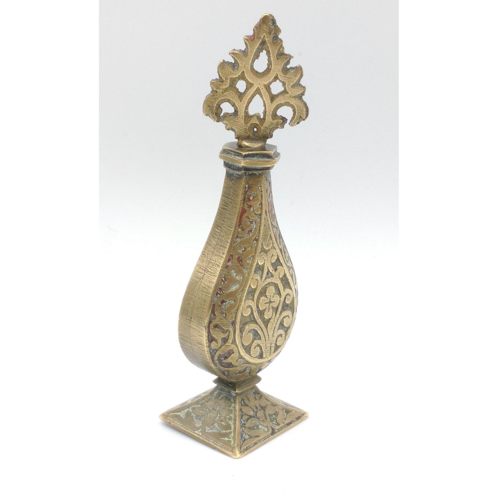 A highly unusual brass SCENT BOTTLE standing only 9cm high