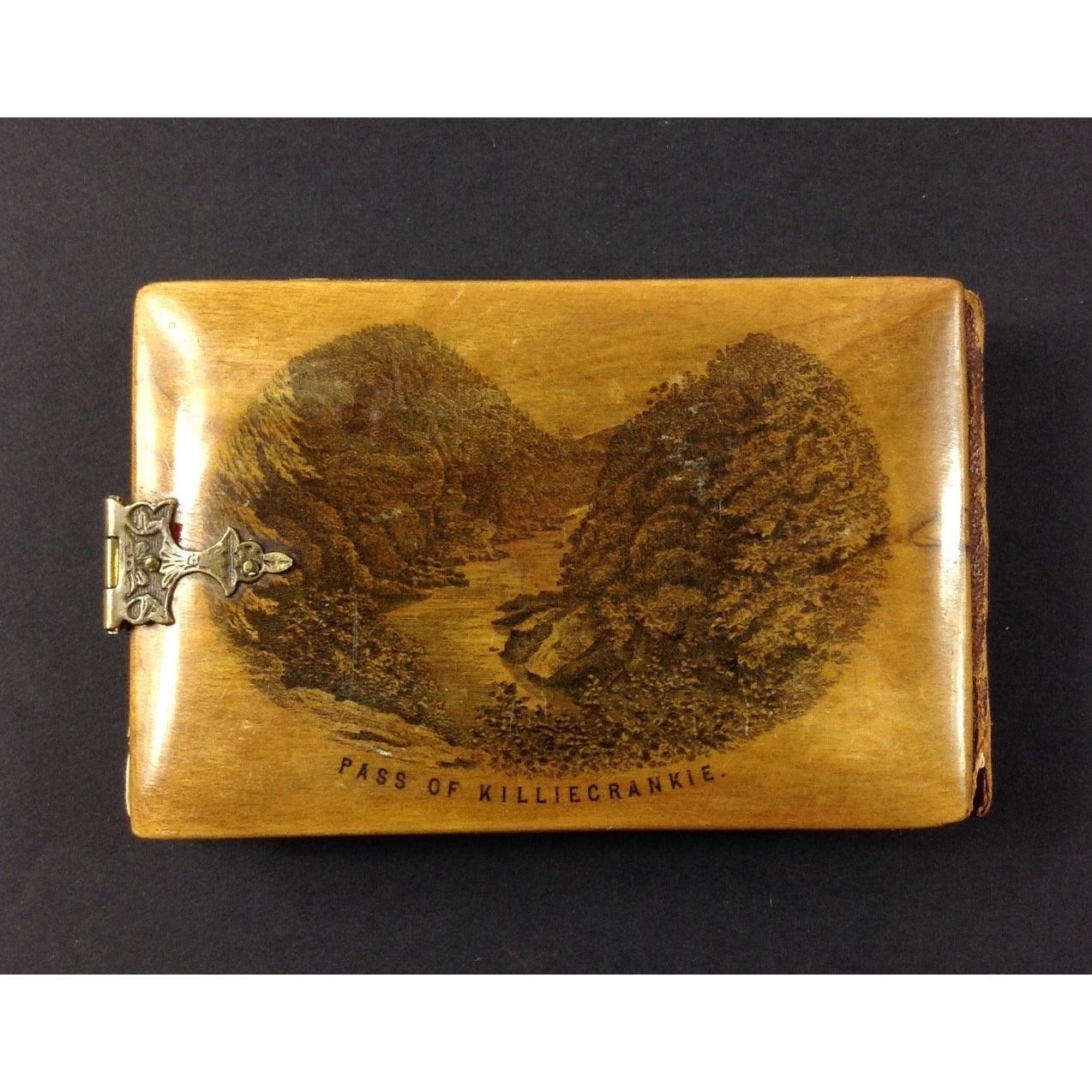 A vintage MAUCHLINE WARE pocket notebook with a view of Dunkeld and the Pass of Killiecrankie