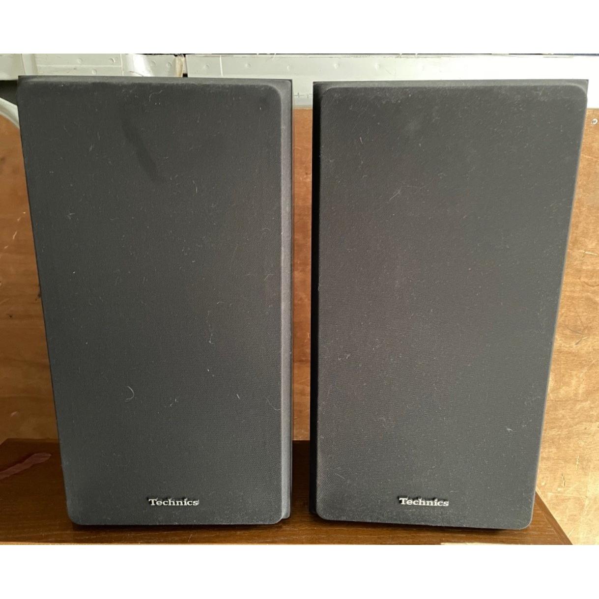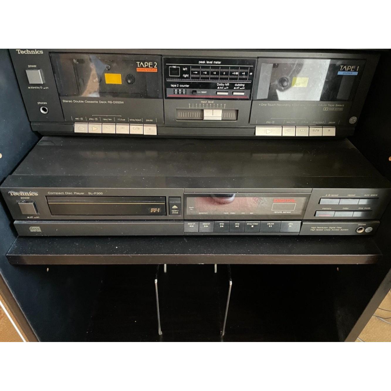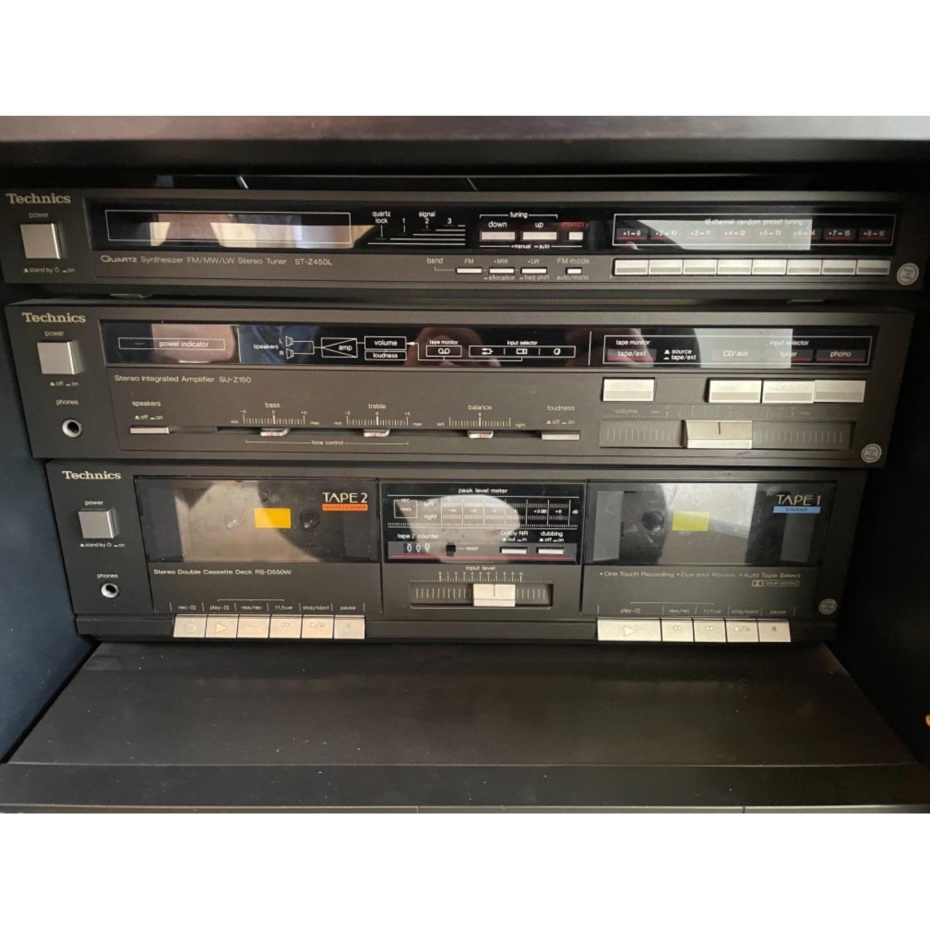 A c1980's TECHNICS media cabinet with a TECHNICS turntable No SL-B210 and an AMP SU-Z150 and also a SYNTHESISER ST-Z450L plus a twin cassette deck RS- D550W and also a TECHNICS SL-P300
