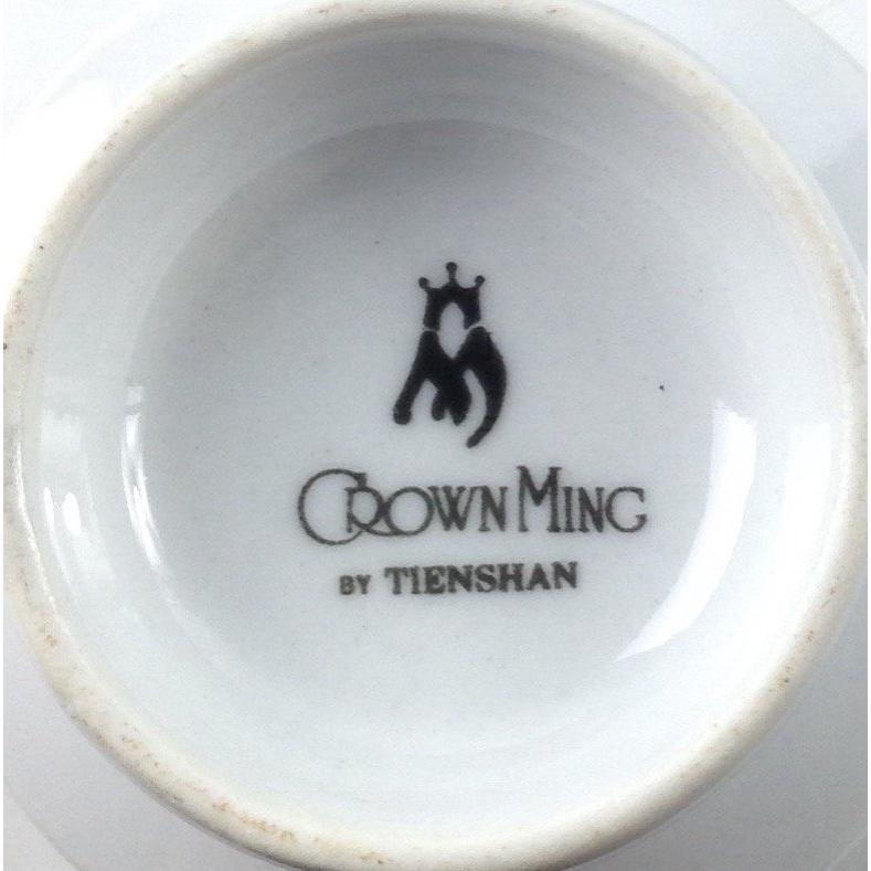 CROWN MING china in white with a gold rim to include 5 cups, 6 saucers (15cm dia), 6 side plates (19cm dia), 6 bowls (19cm dia), 6 plates (27cm dia), 1 lidded sugar bowl