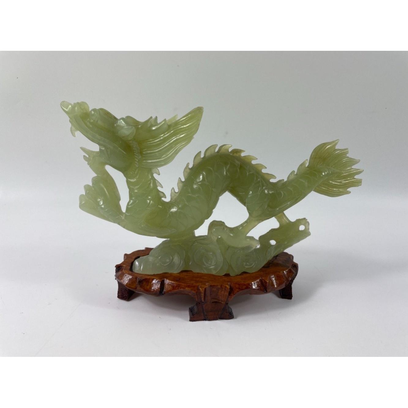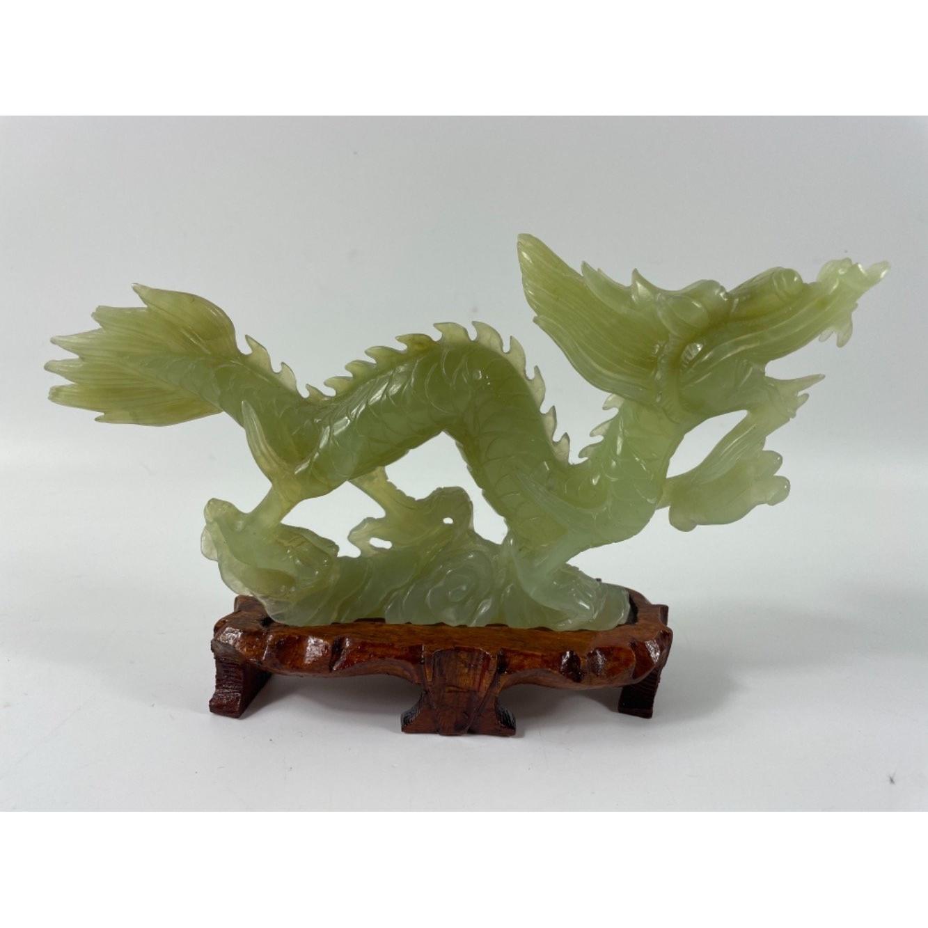A carved jade DRAGON 205mm x 105mm long with its own stand