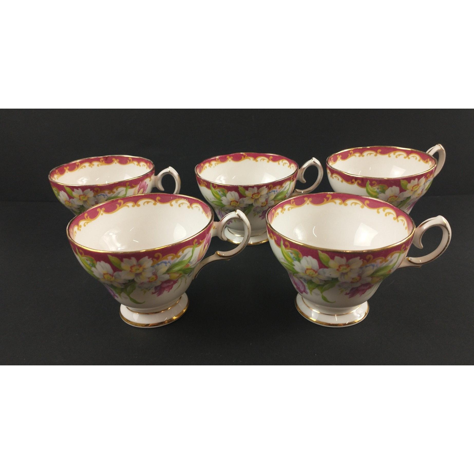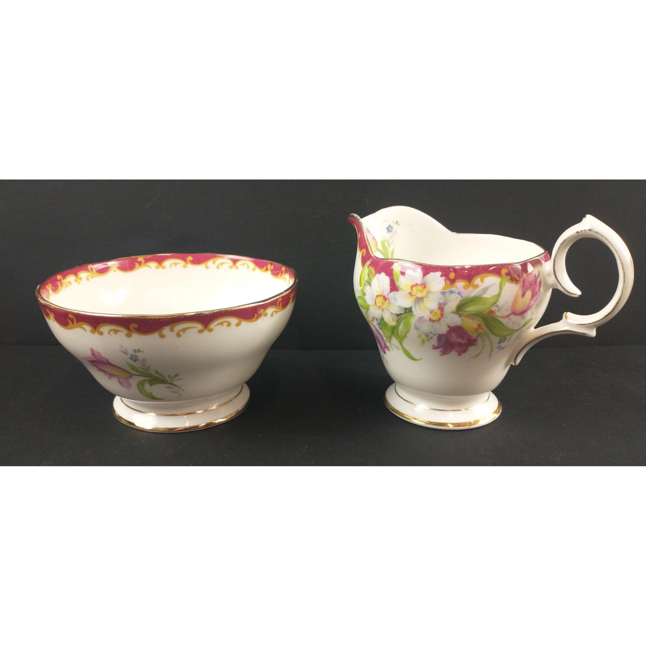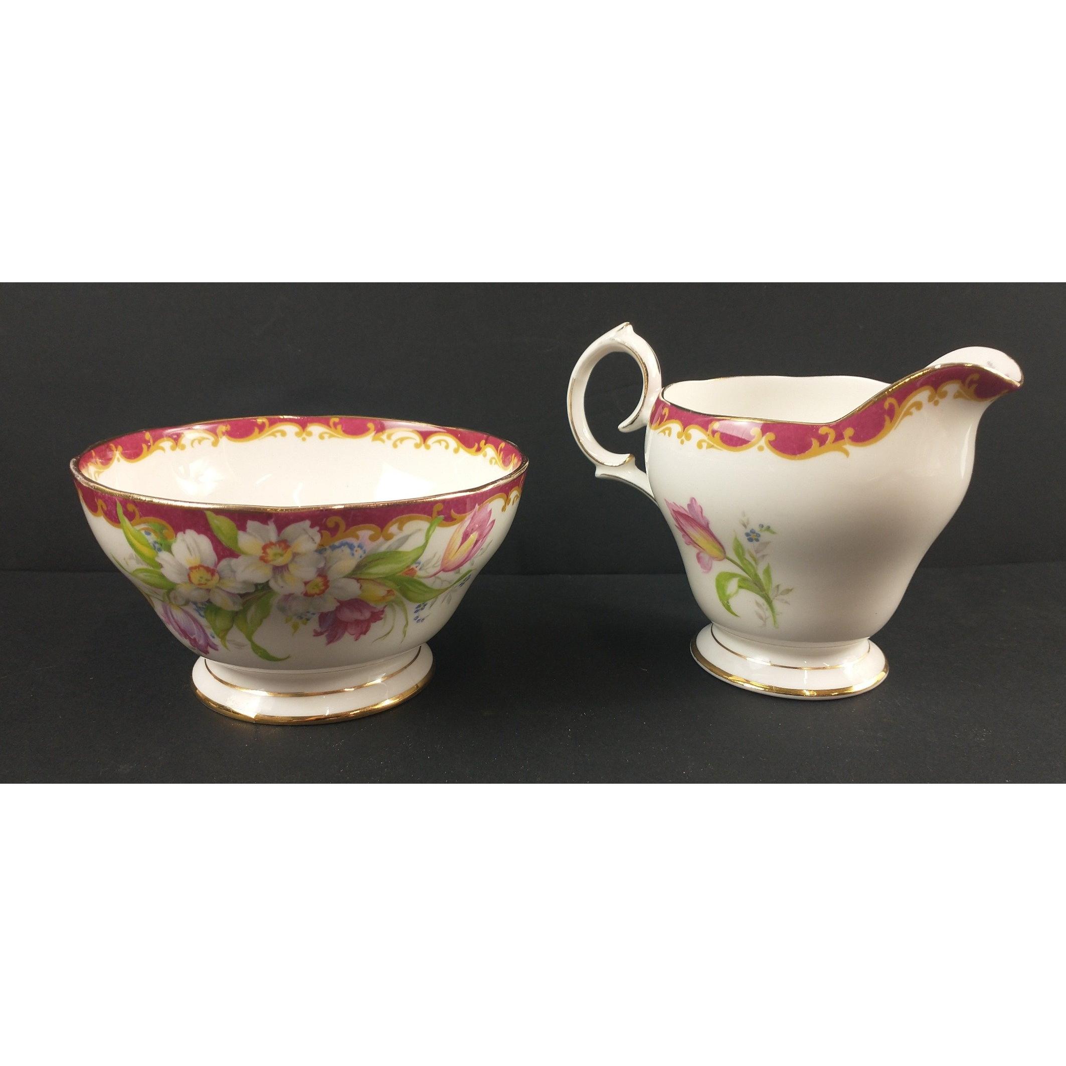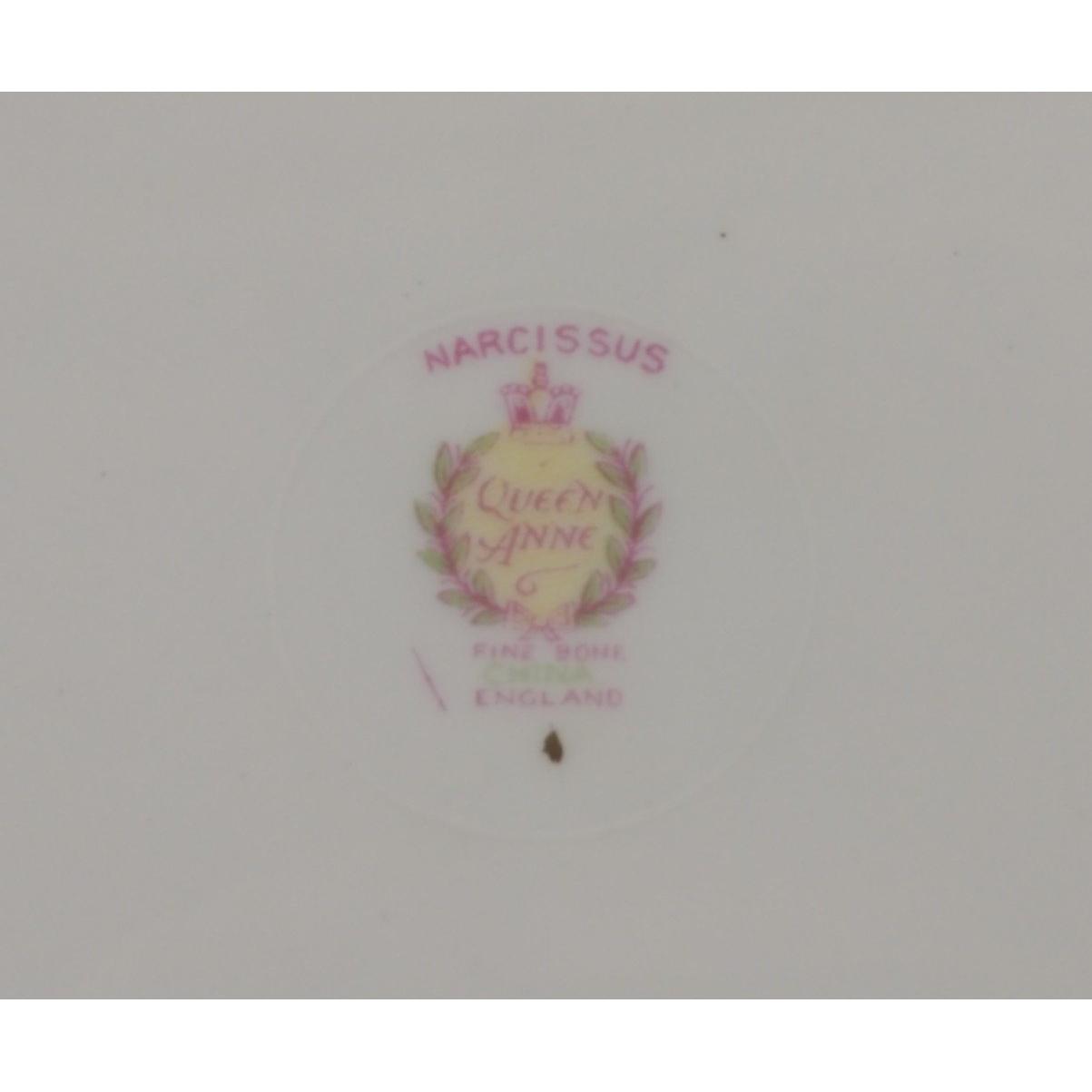 A Vintage five cup QUEEN ANNE tea service with six saucers and six side plates in the floral and colourful NARCISSUS pattern with sandwich plate cream and sugarApprox 20 pieces