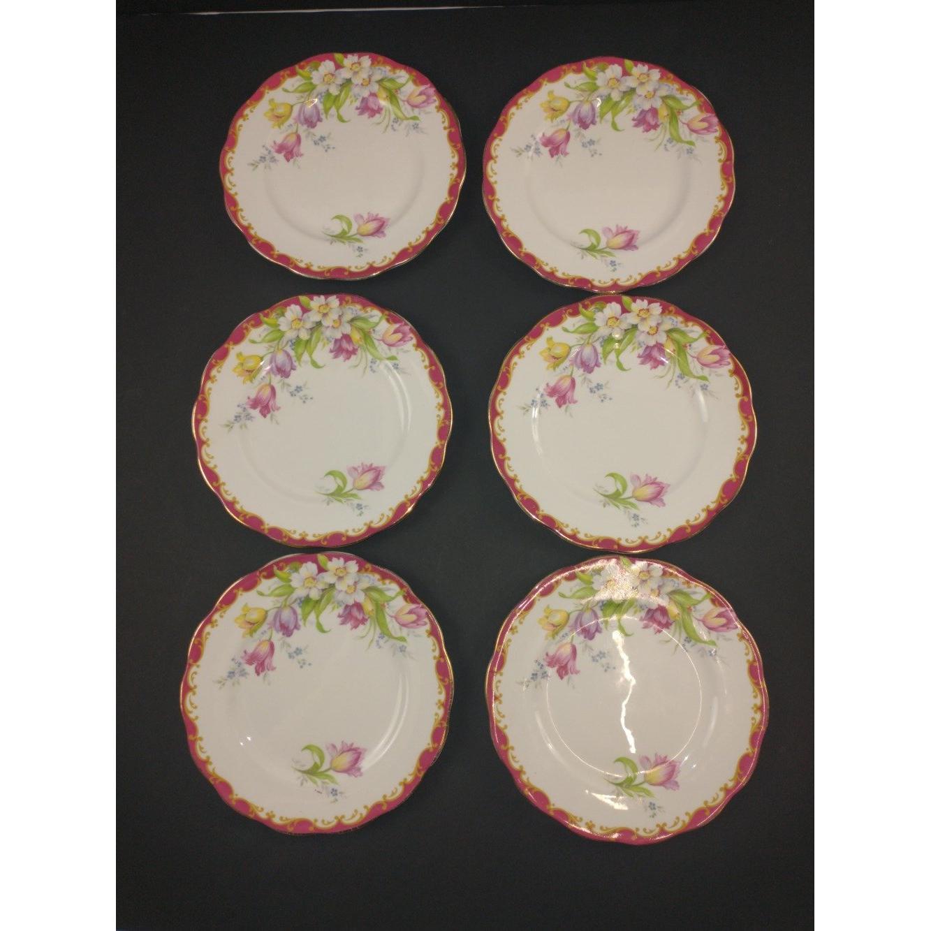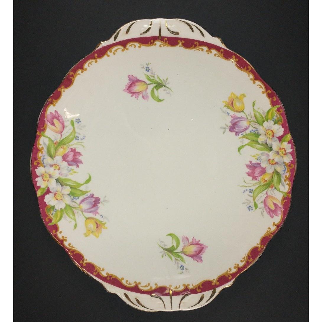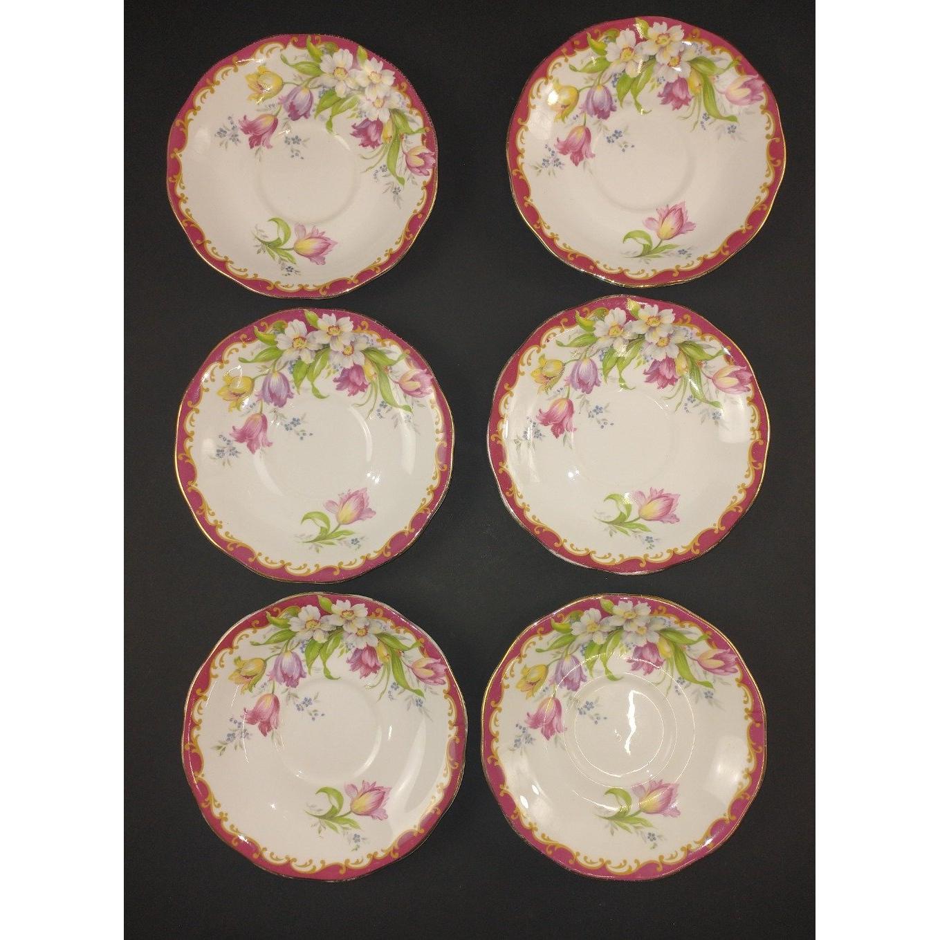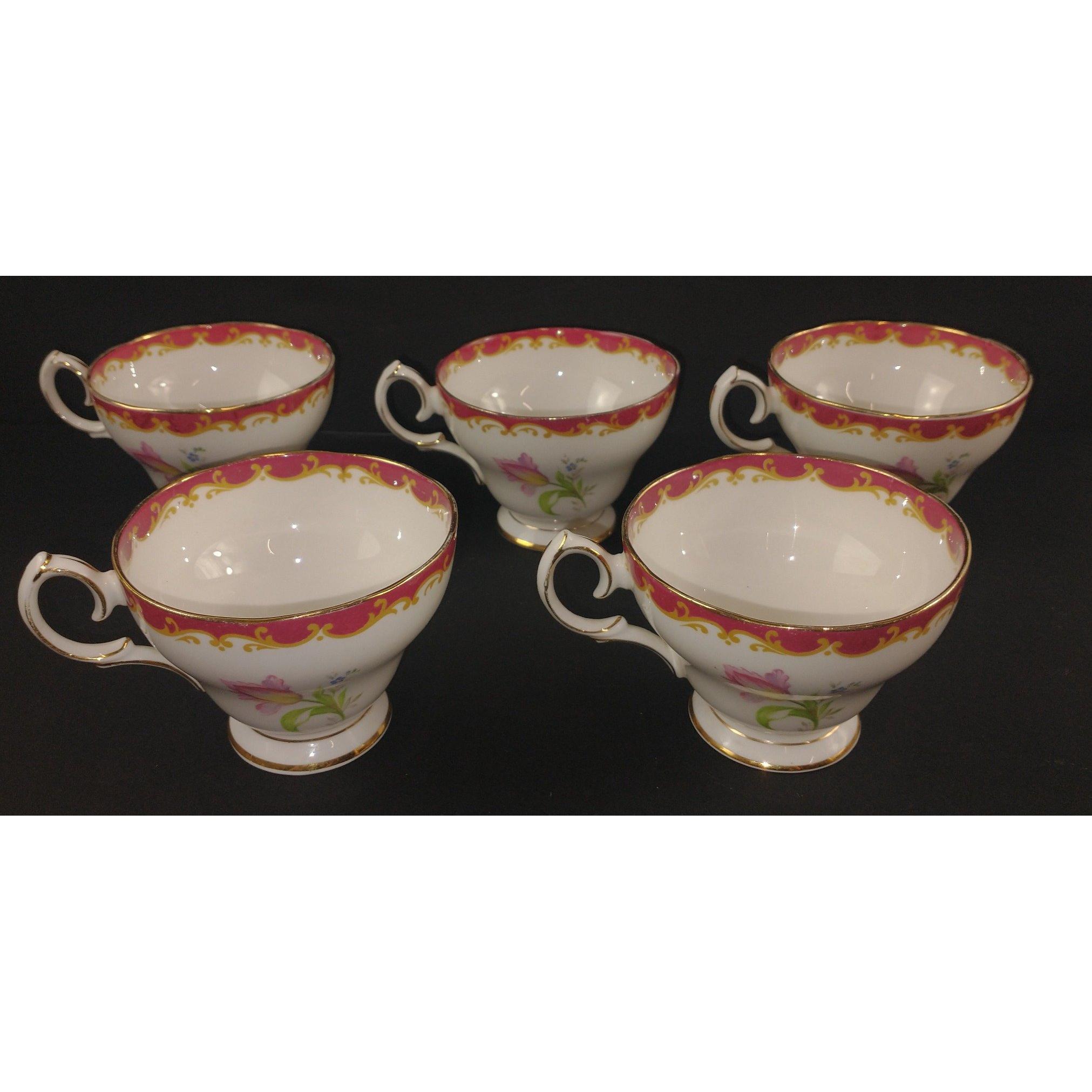 A Vintage five cup QUEEN ANNE tea service with six saucers and six side plates in the floral and colourful NARCISSUS pattern with sandwich plate cream and sugarApprox 20 pieces