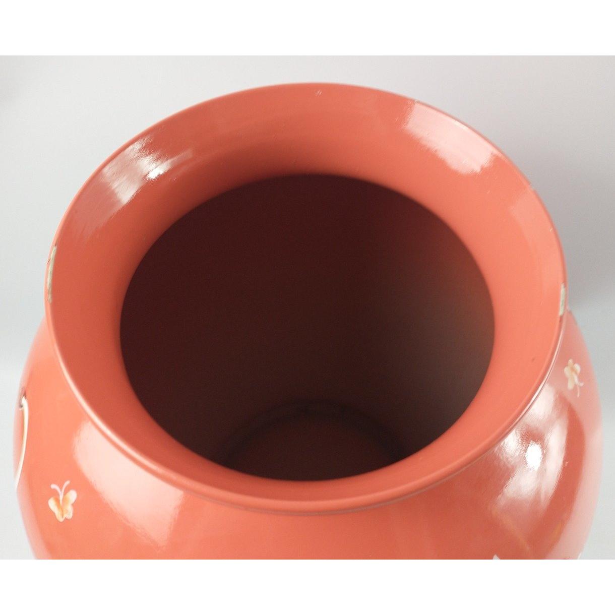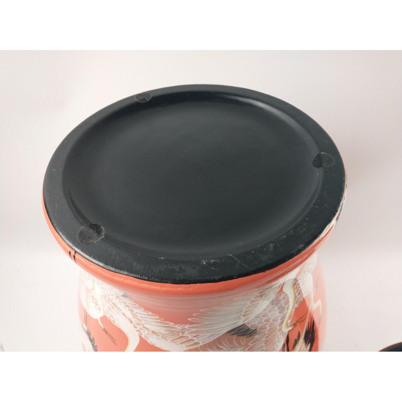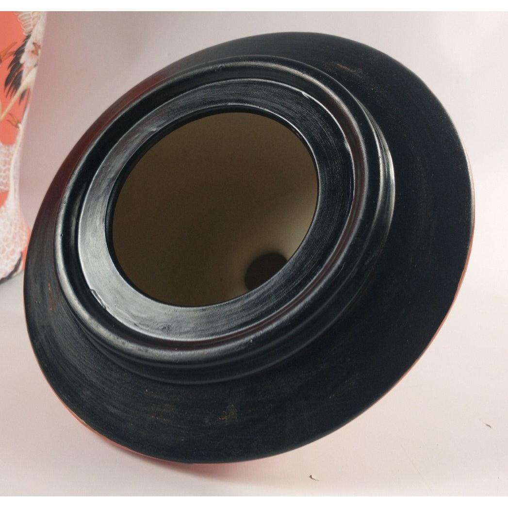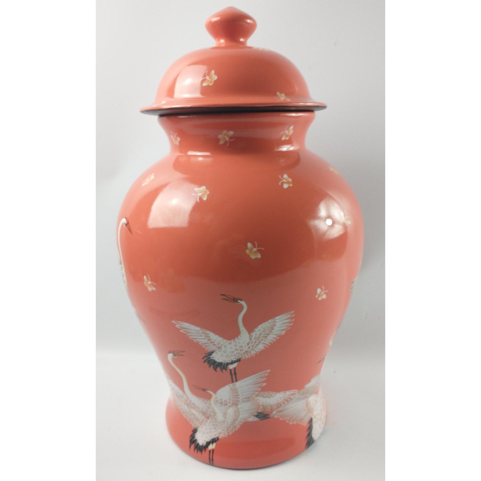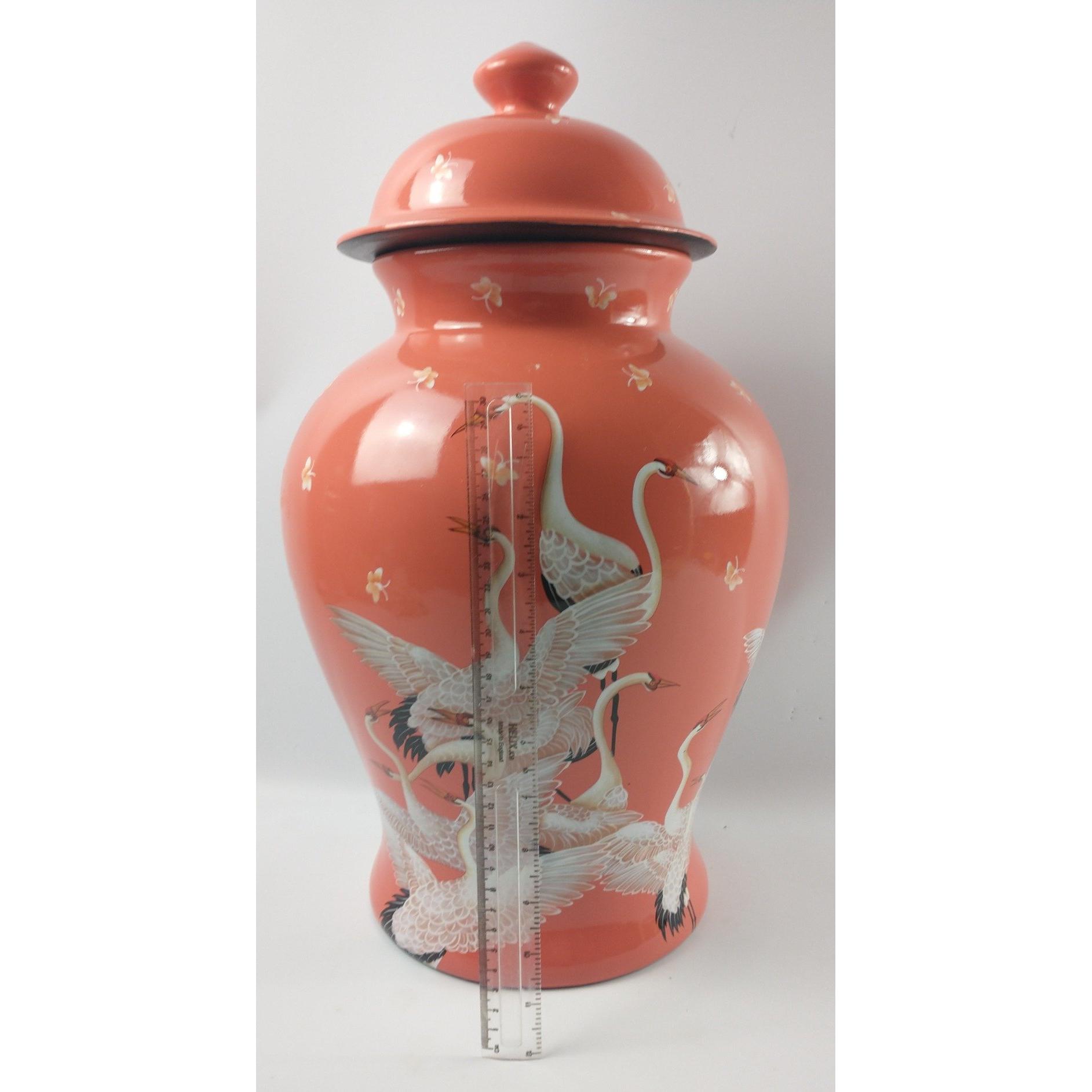 A super large GINGER JAR in a coral colour with design of cranes standing an impressive 50cm high