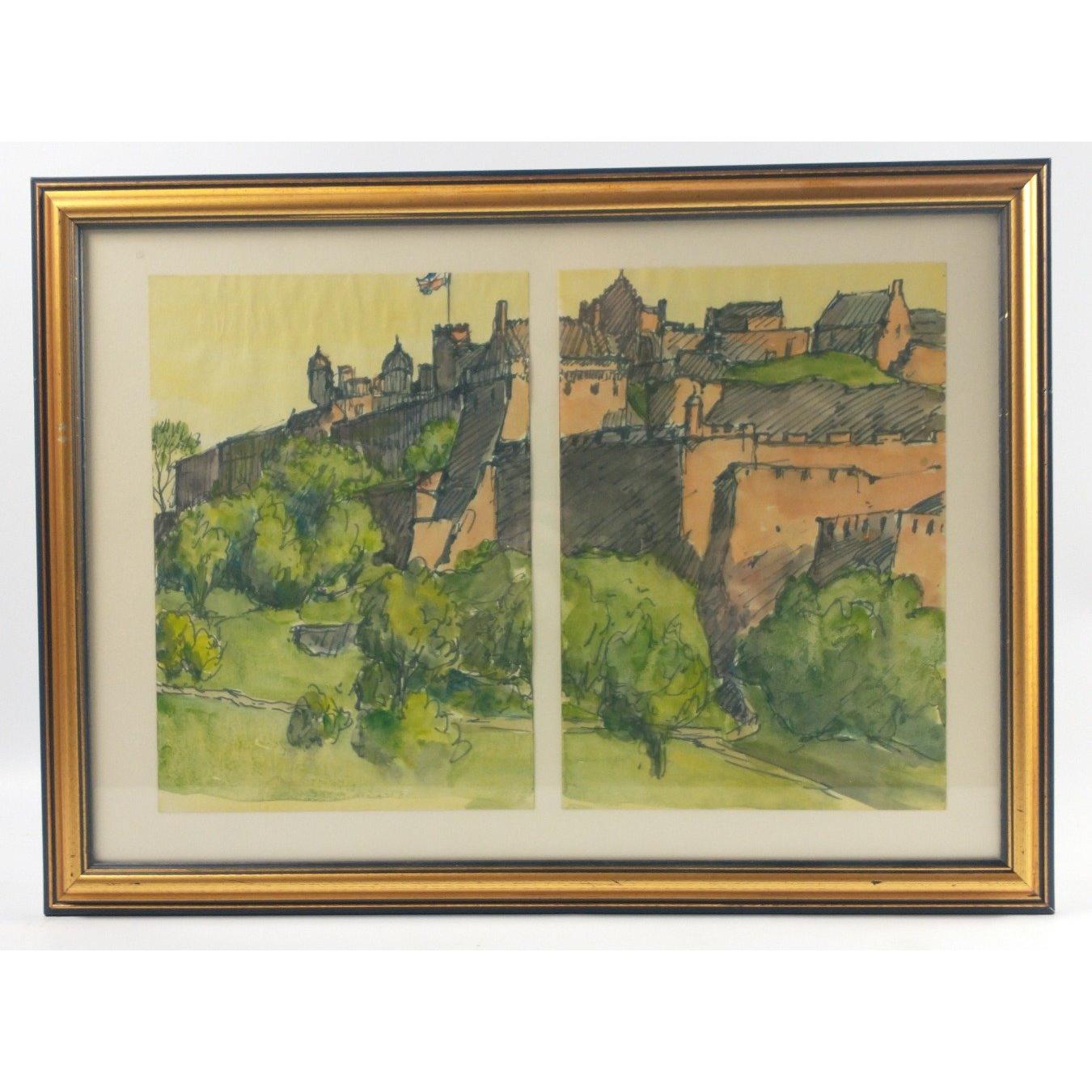 Twin panel of a watercolour by AUBREY alias Isabella Margaret Chalmers L: 37cm approx H: 25cm approx