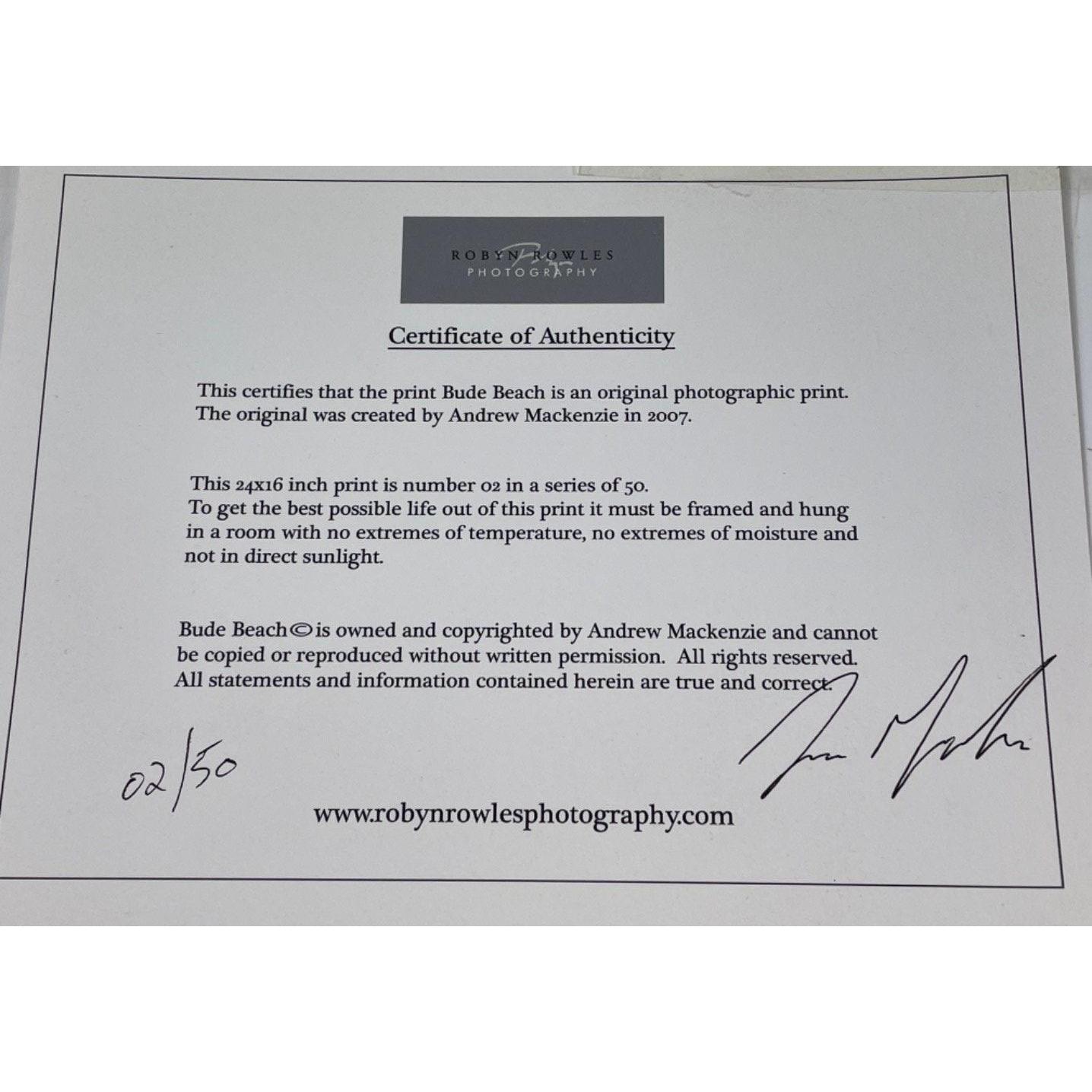 TOP QUALITY & FABULOUS Framed Photographic print 2/50 by ANDREW MACKENZIE of Bude Beach 2007 dimensions 24" x 16" Approx 1 pieces