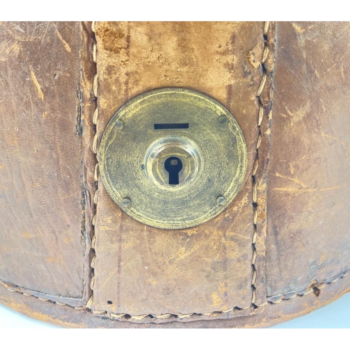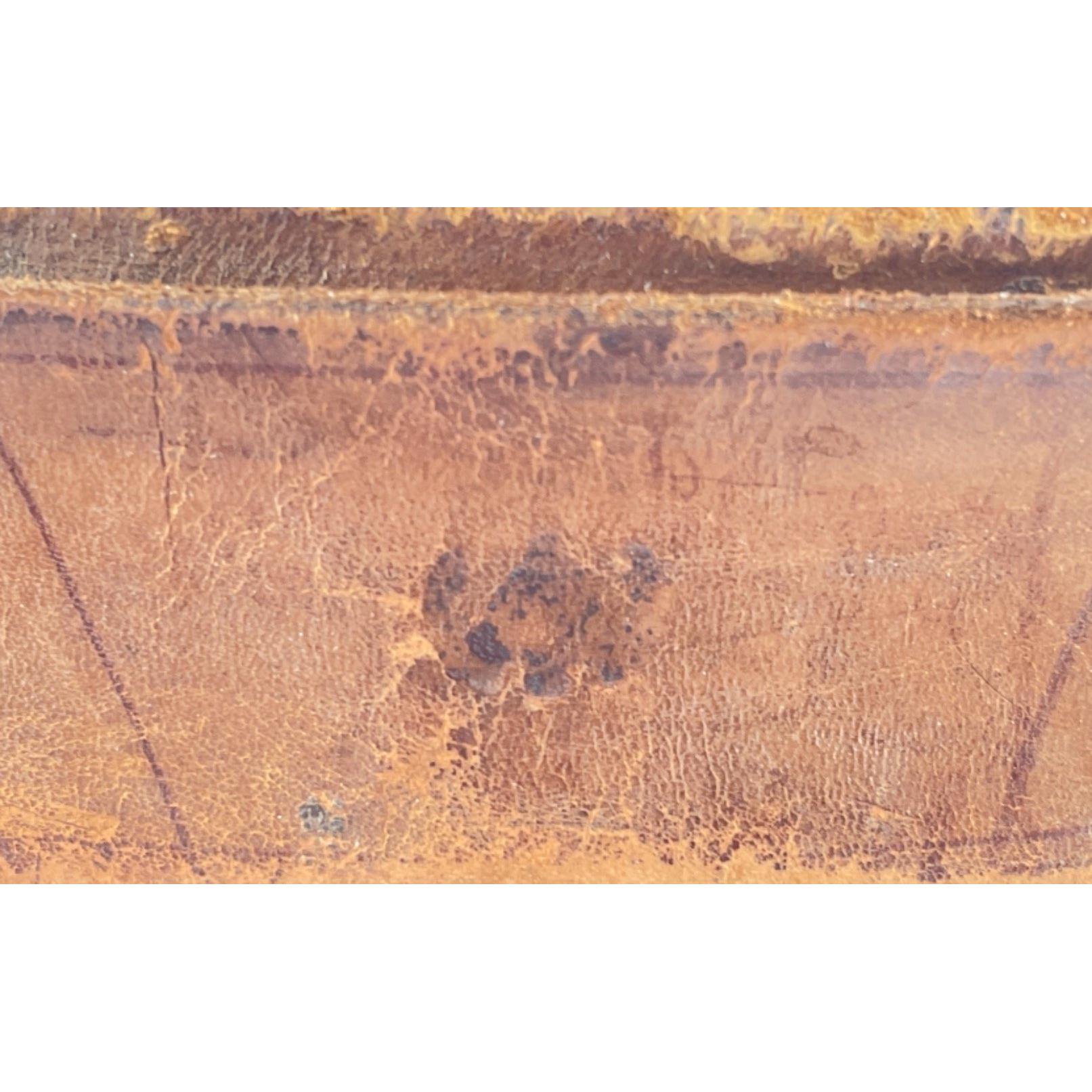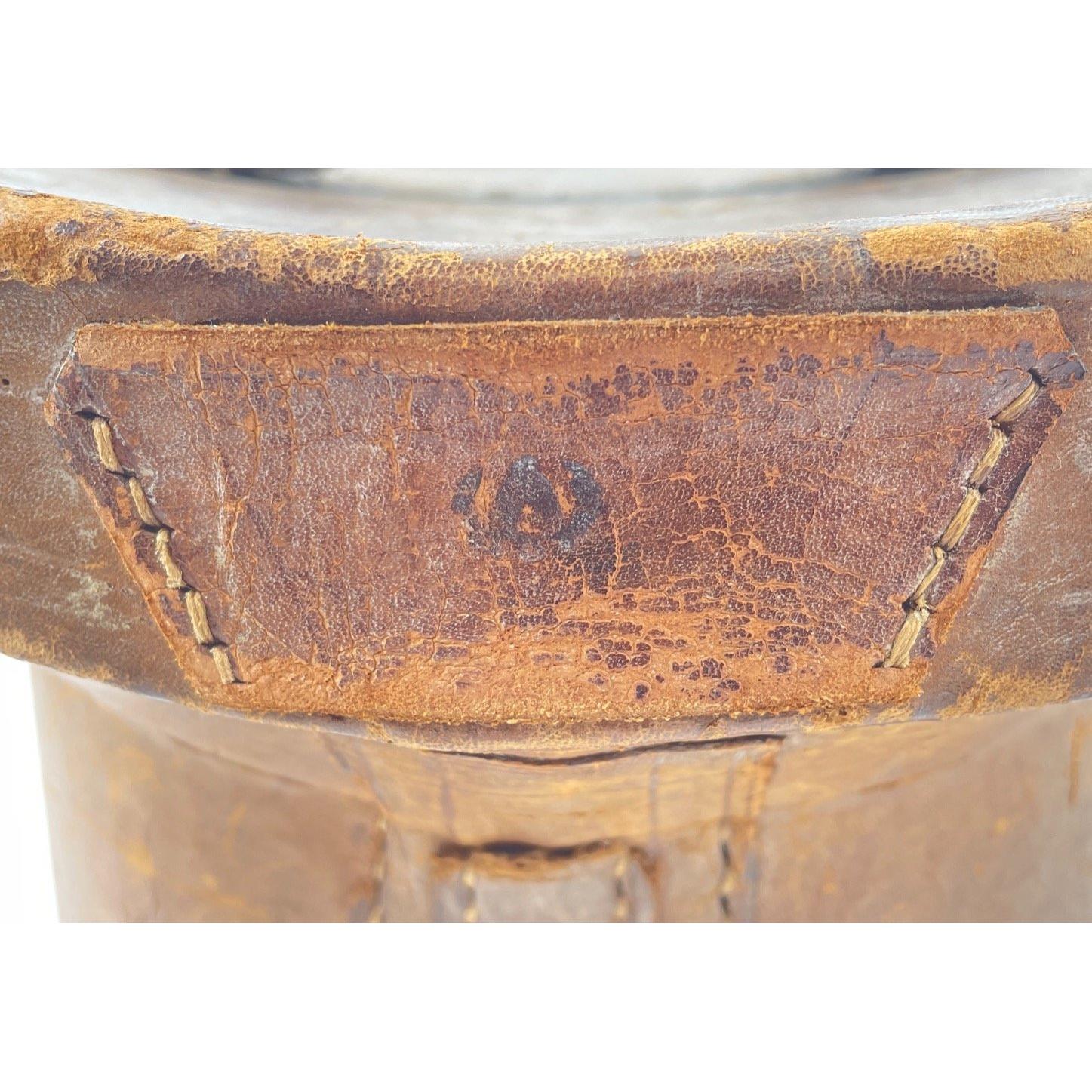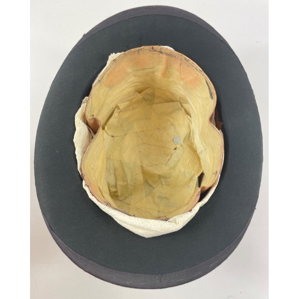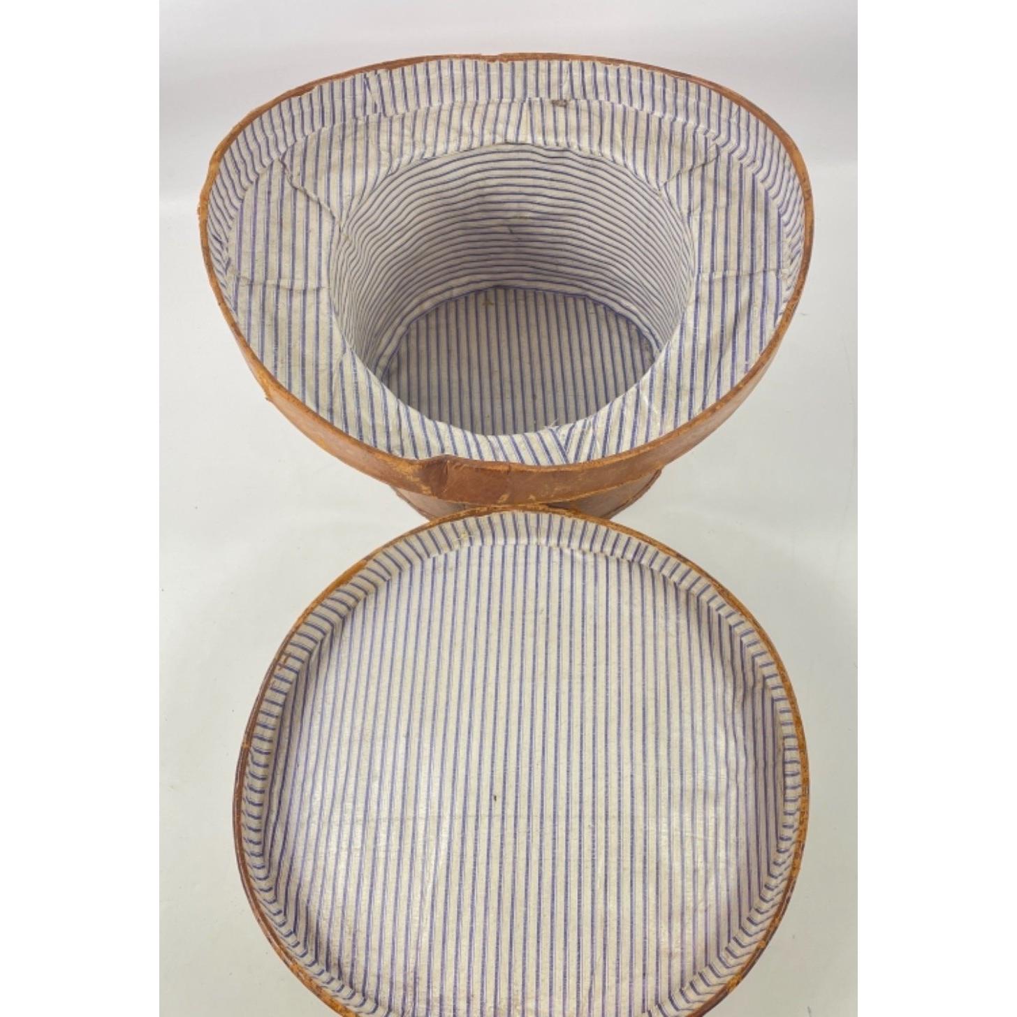 A VINTAGE TOP HAT WITH A FABULOUS VINTAGE LEATHER TOP HAT BOX (void dimensions 21cm diameter x 16cm inner depth - no maker's label present on either item.Approx 2 pieces