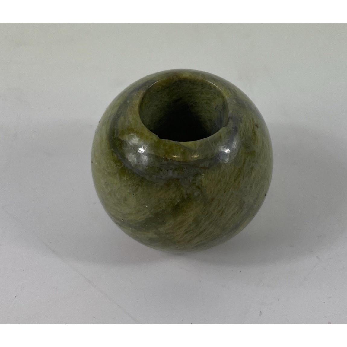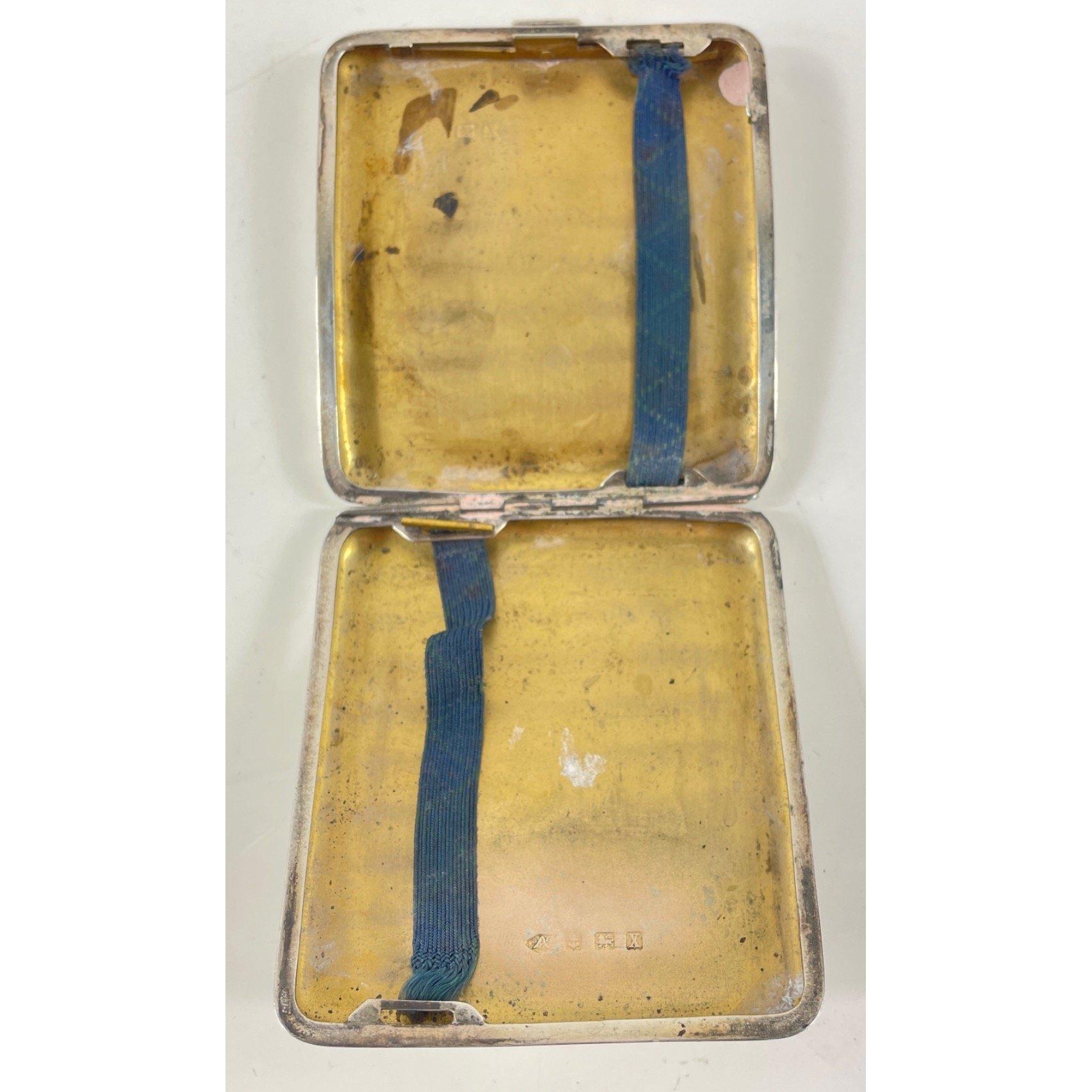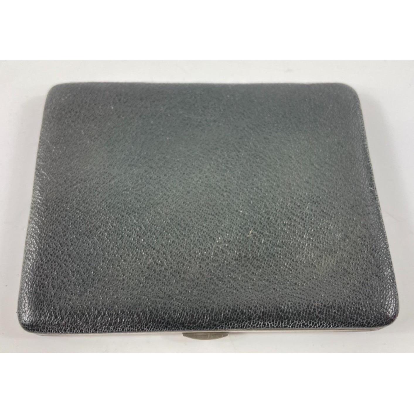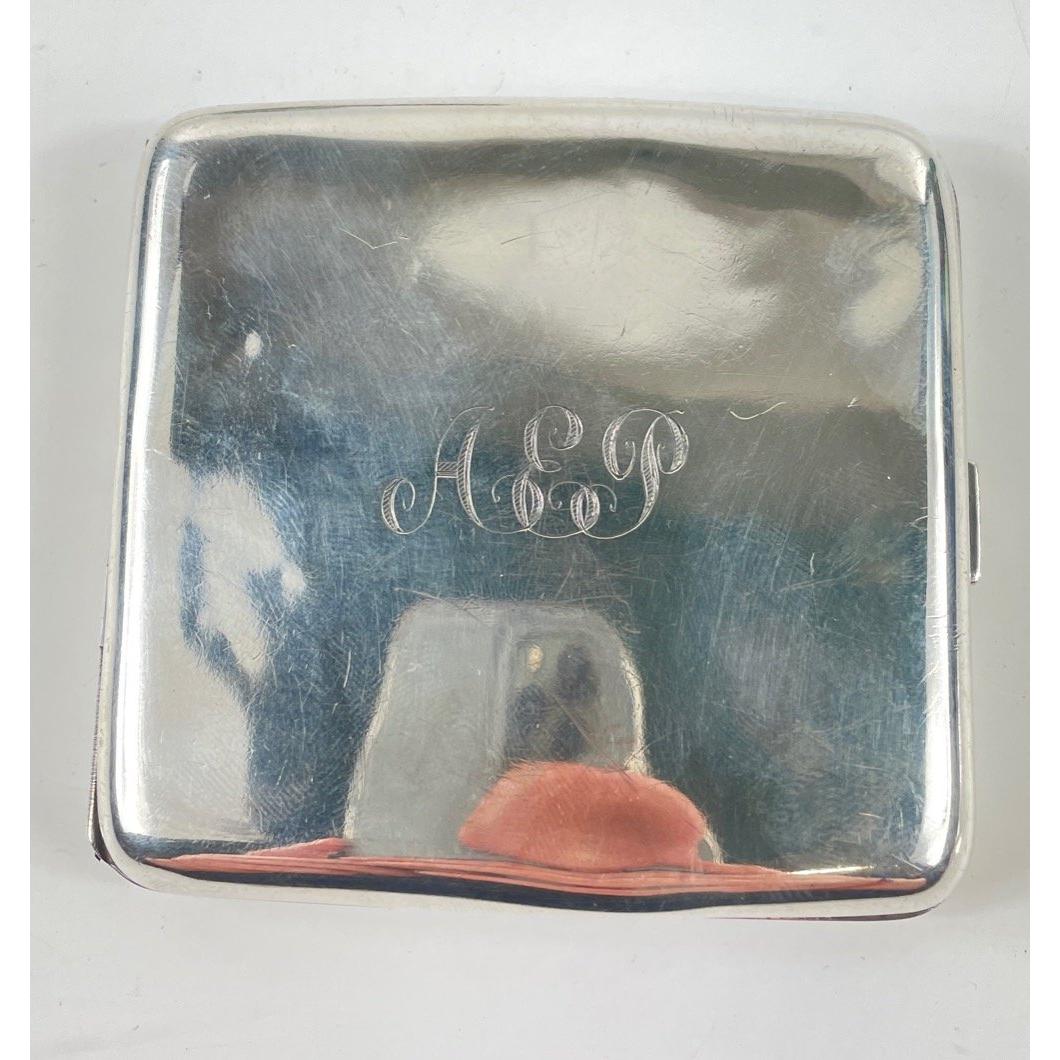 Smoker's Corner - a silver cigarette case Birmingham 1922 inscribed with the initails A.E.P., gross weight114gm, a green leather cigarette case, a sterling silver cigar trimmer stamped 925 London 1912 by GV & Co. gross weight 7gm plus a small marble ball with match striker to the base