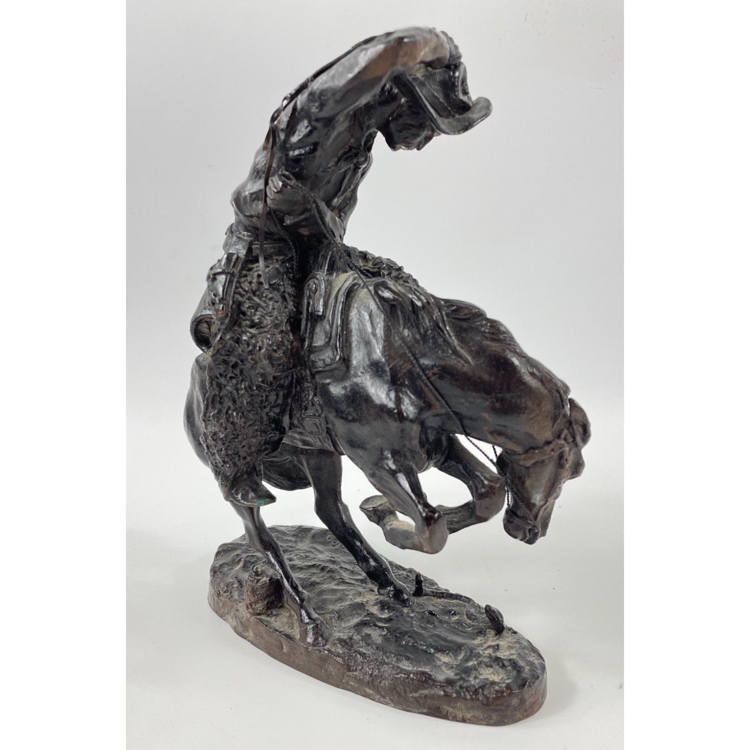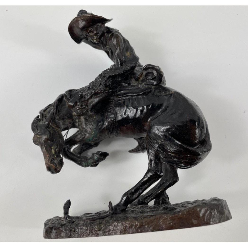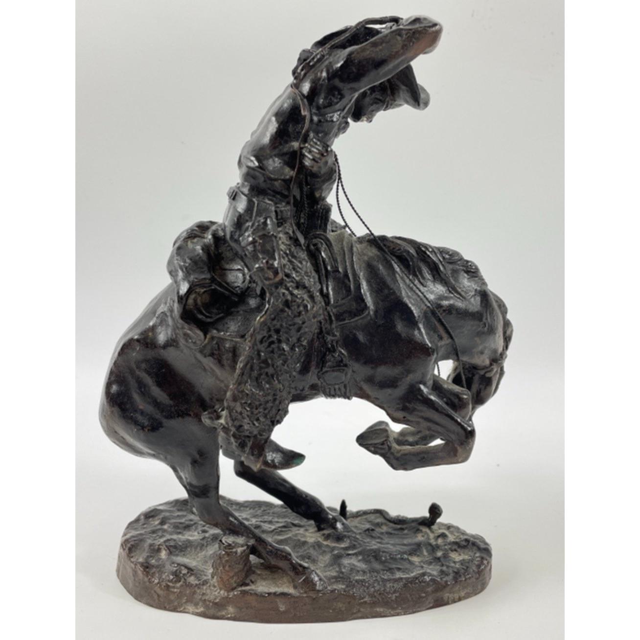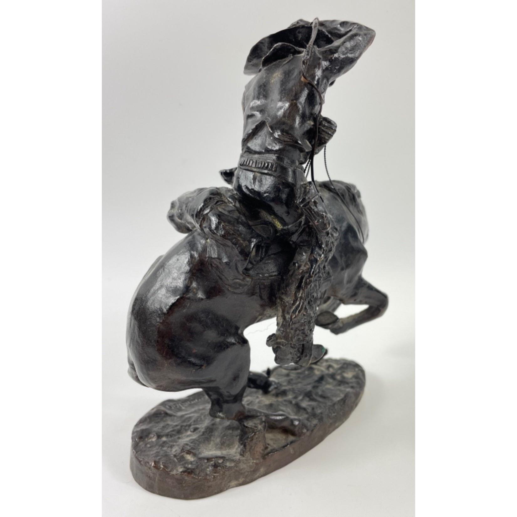 A lost wax bronze of a cowboy on a horse stamped 'copyright by Frederic Remington' standing approx 20cm highApprox 1 pieces
