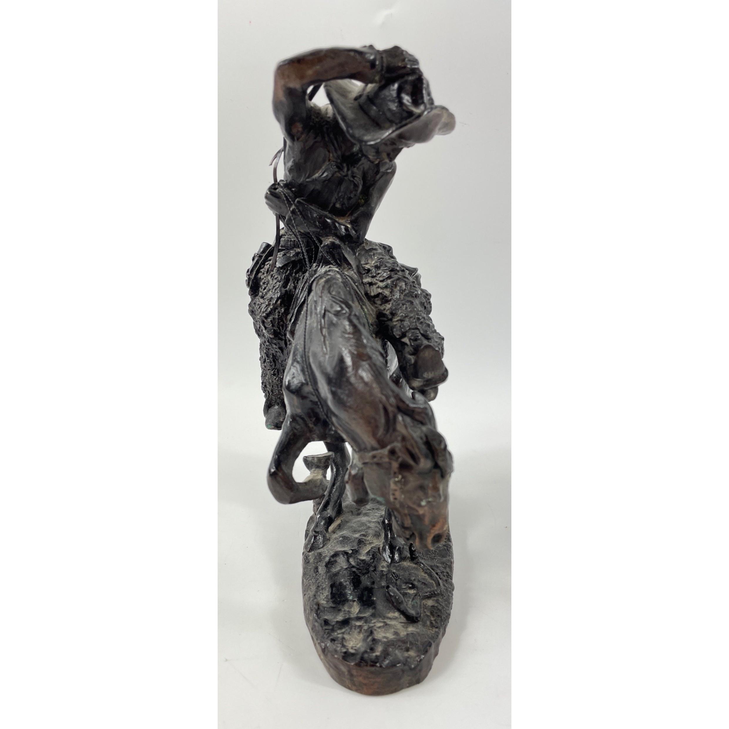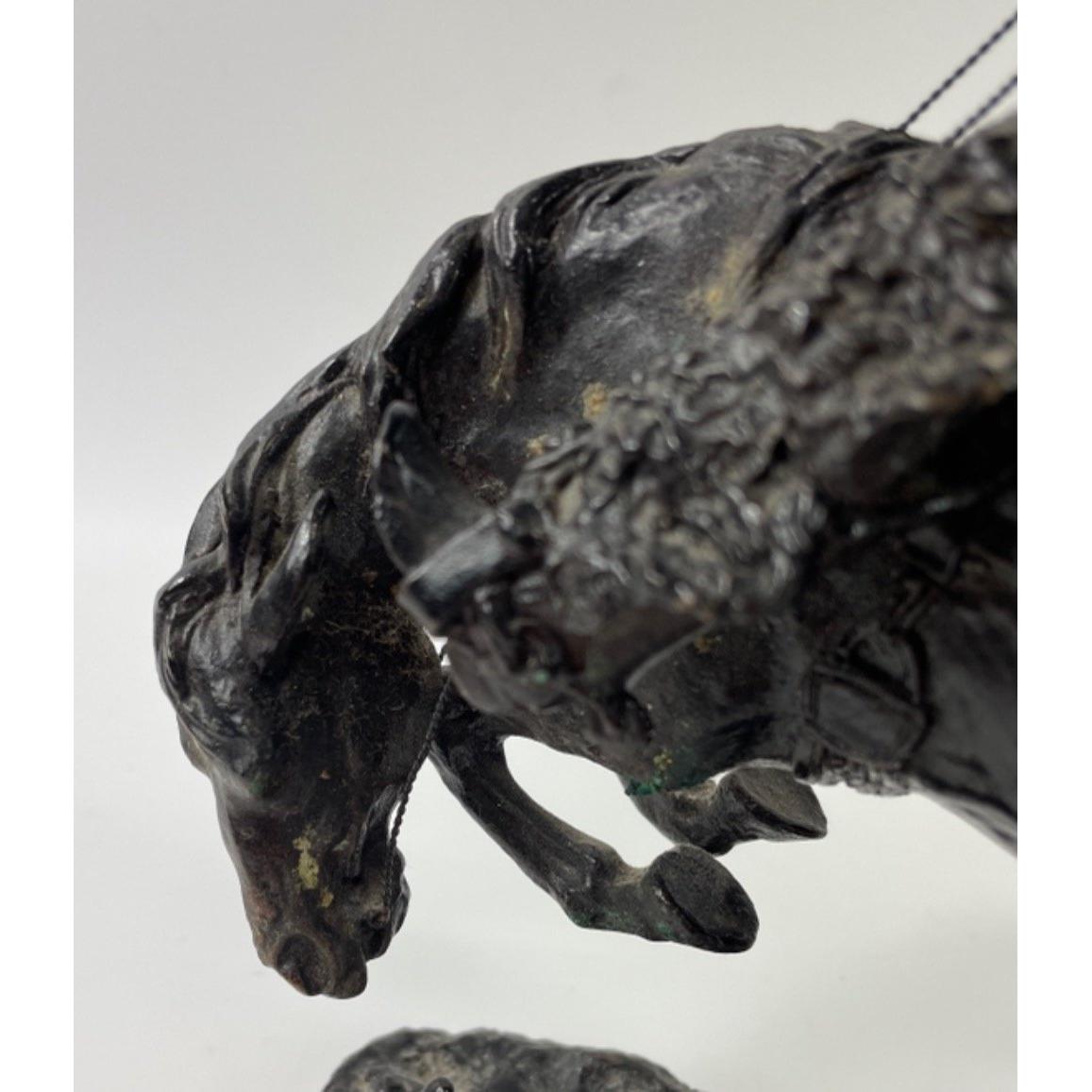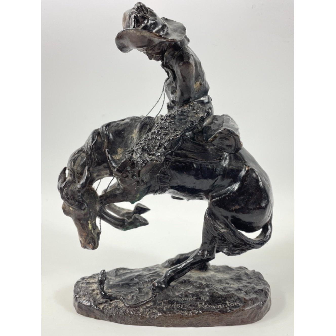 A lost wax bronze of a cowboy on a horse stamped 'copyright by Frederic Remington' standing approx 20cm highApprox 1 pieces
