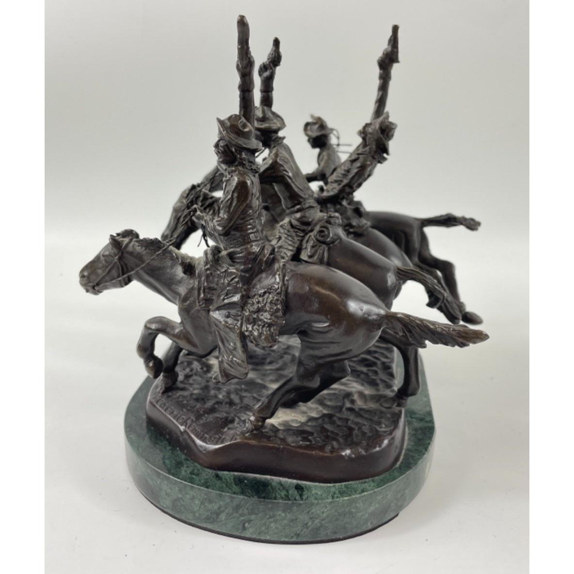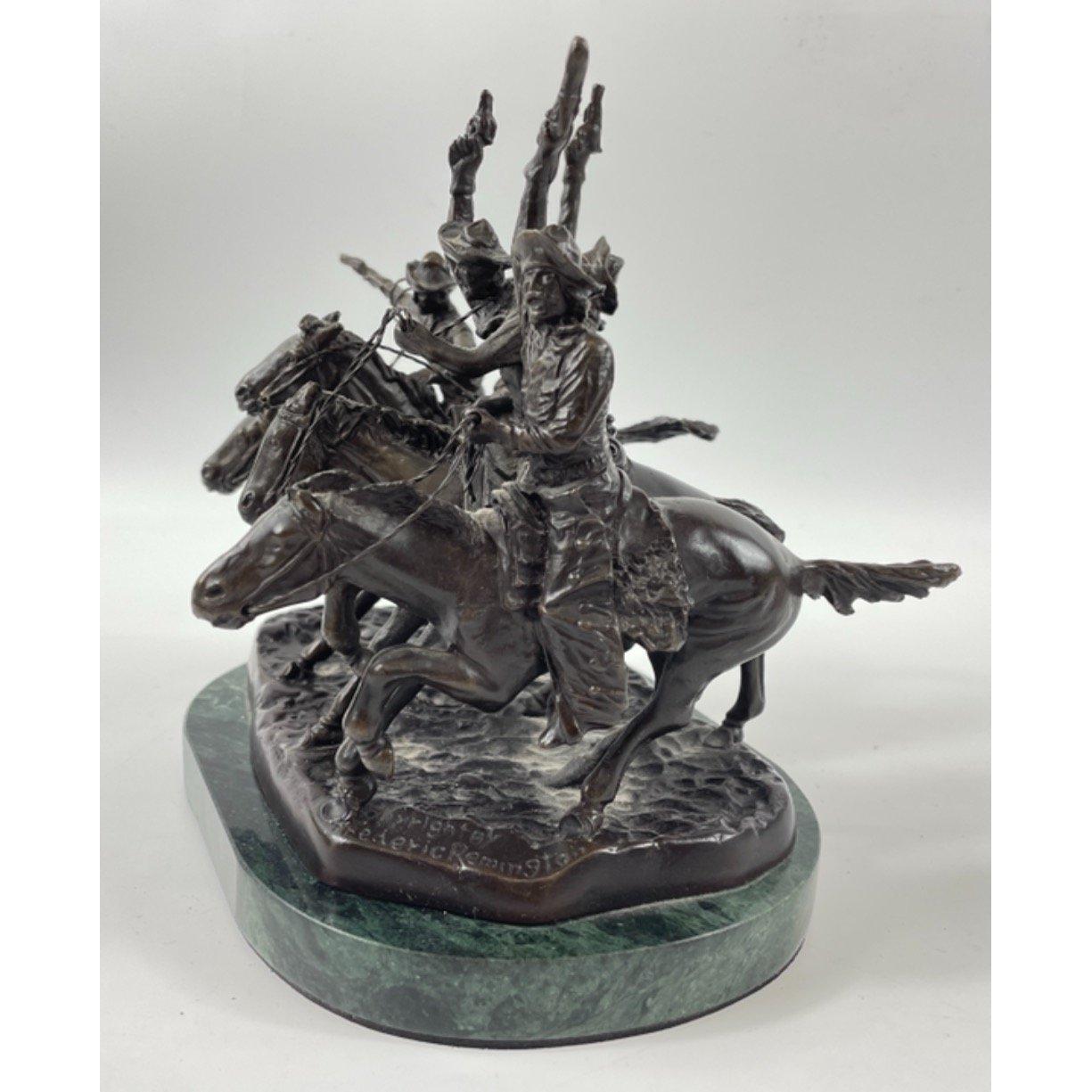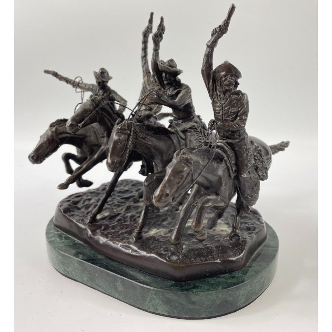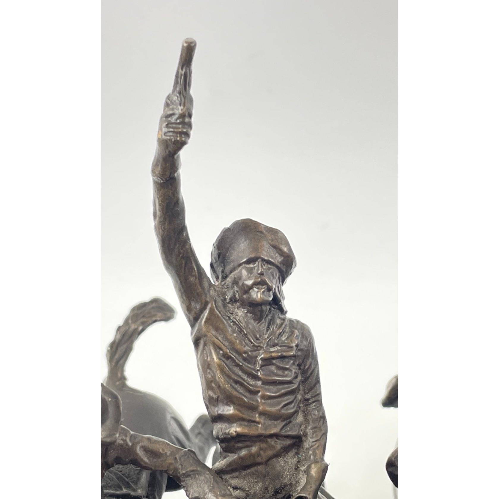SUPER COLLECTABLE Coming through the Rye - A group of four bronze mounted cowboys on a marble plinth stamped 'copyright by Frederic Remington', standing approx 20cmApprox 1 pieces