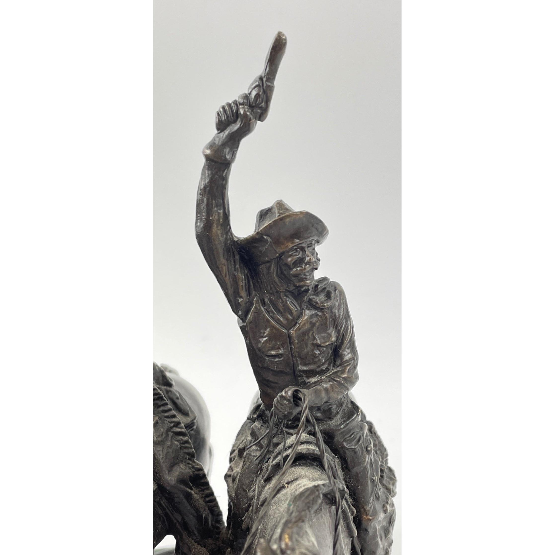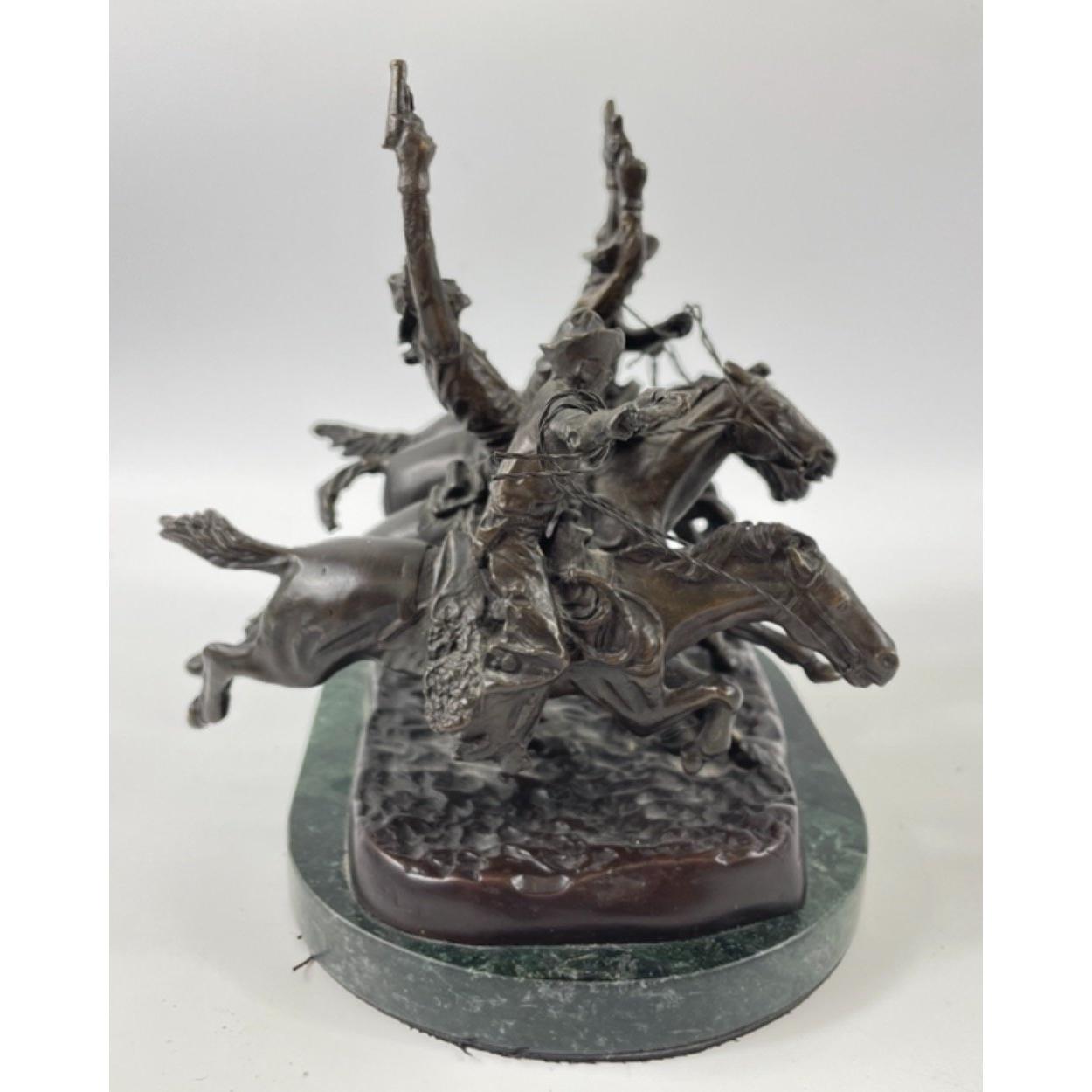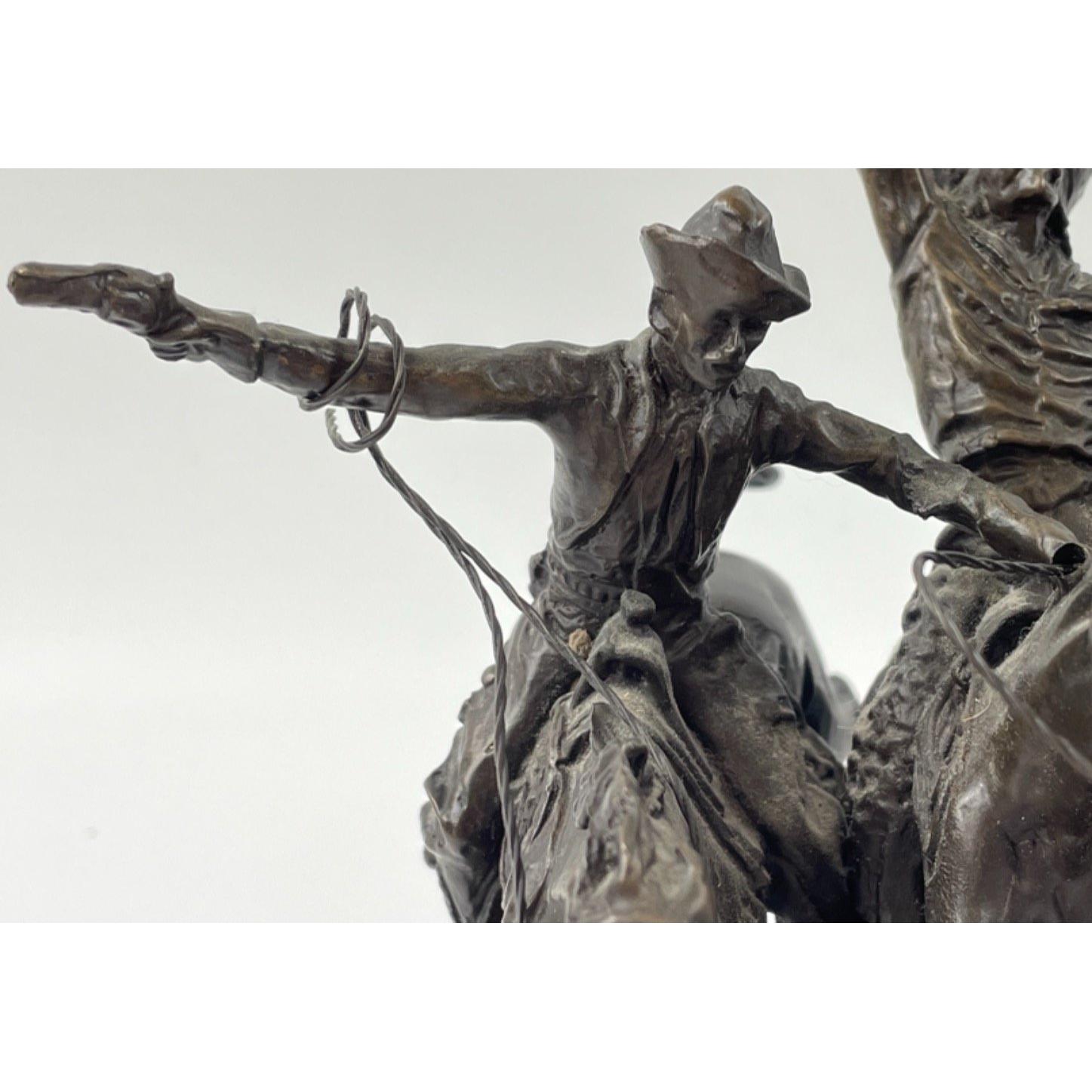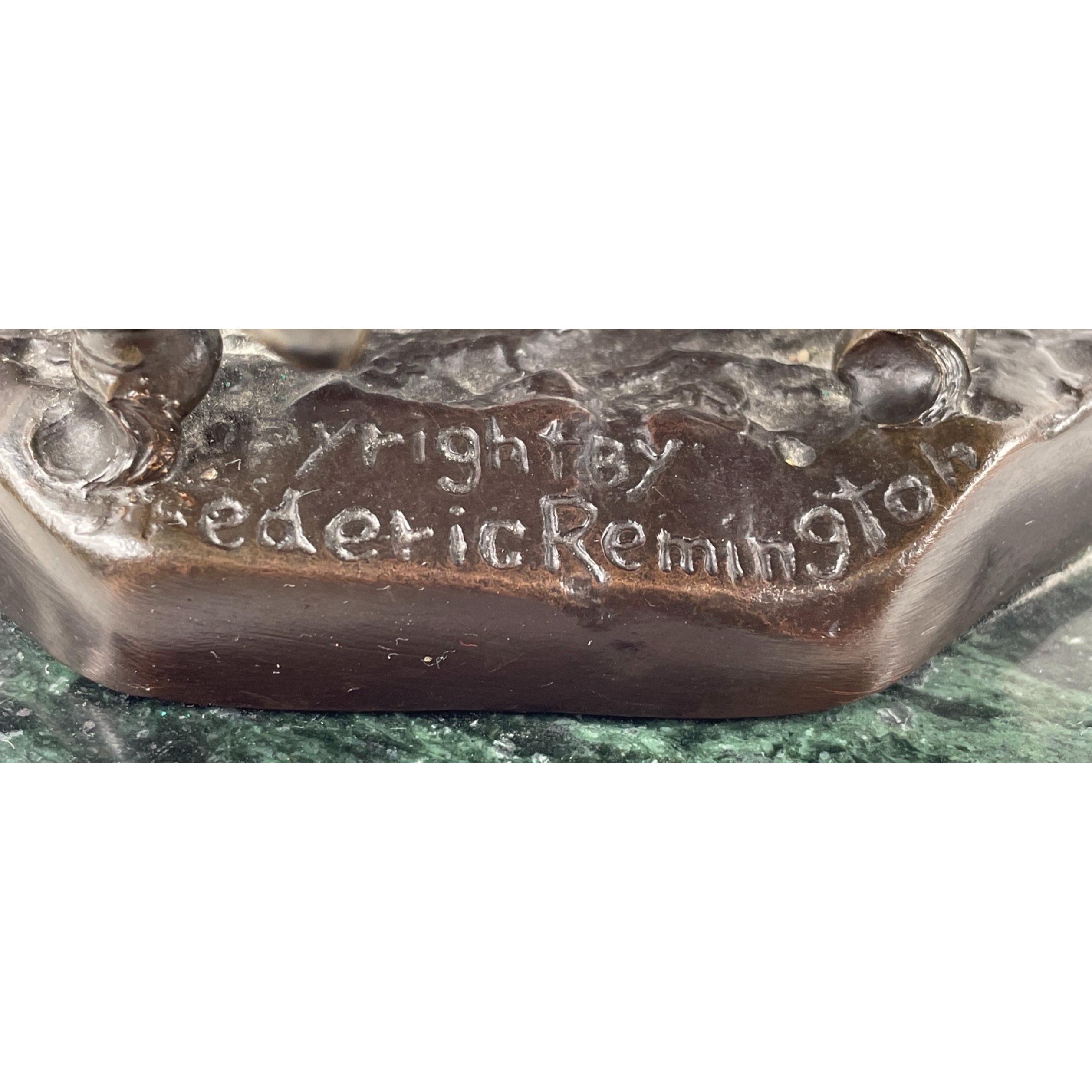 SUPER COLLECTABLE Coming through the Rye - A group of four bronze mounted cowboys on a marble plinth stamped 'copyright by Frederic Remington', standing approx 20cmApprox 1 pieces