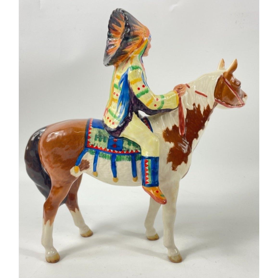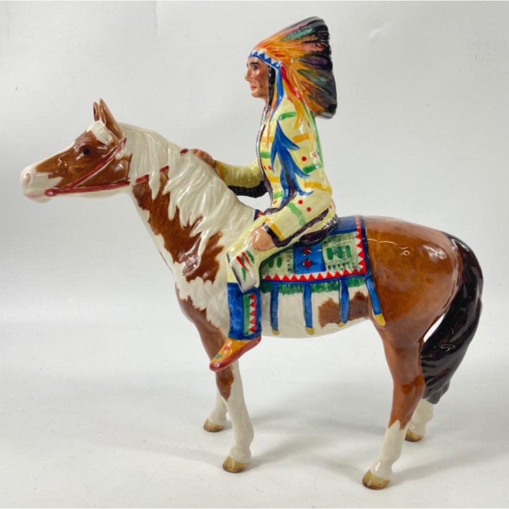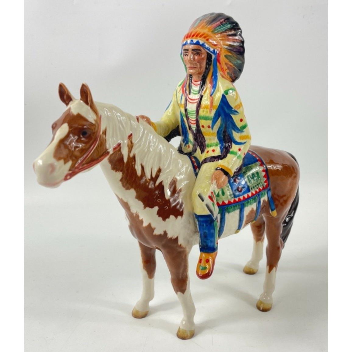 A rare BESWICK figurine (stamped 53 on horse's foot) of a vibrantly coloured Native American Chief on a skewbald horse H 8.75” W. 8”Approx 1 pieces