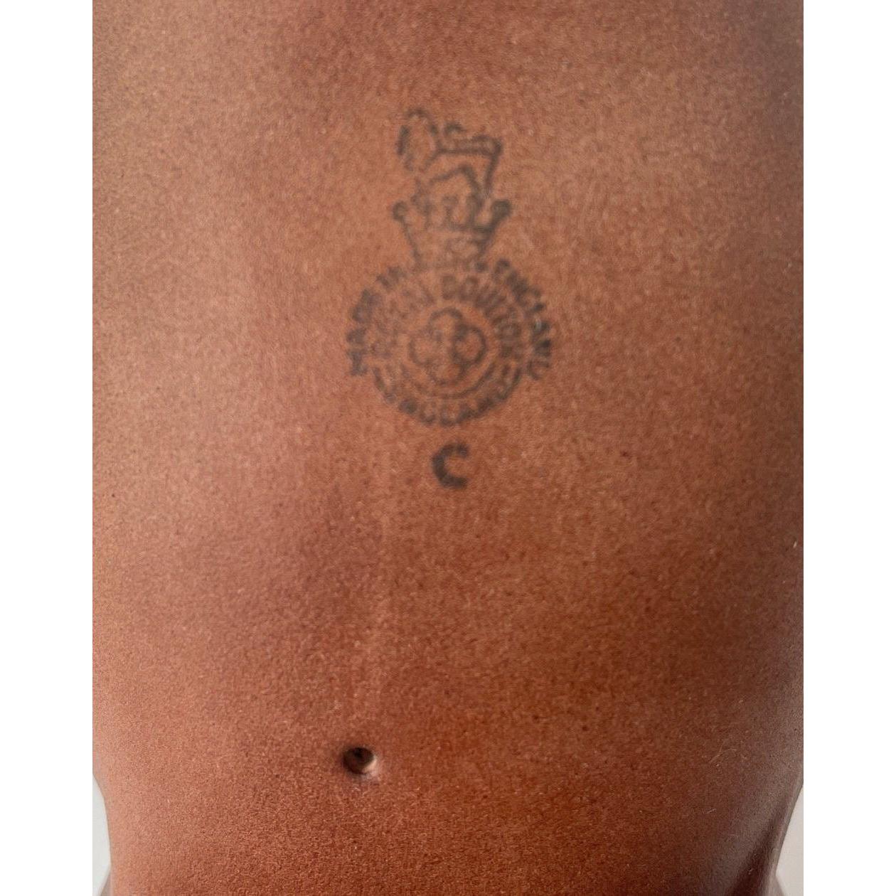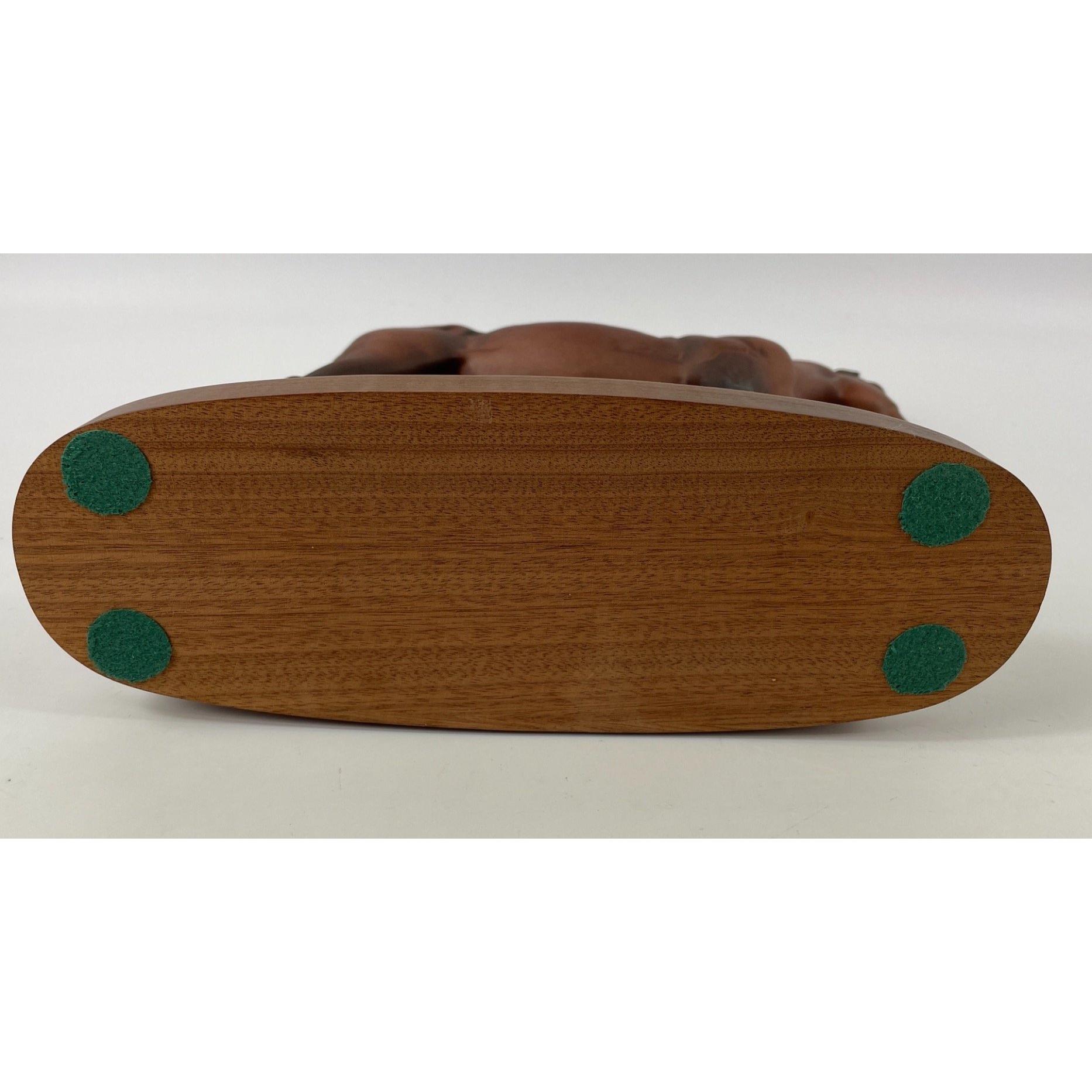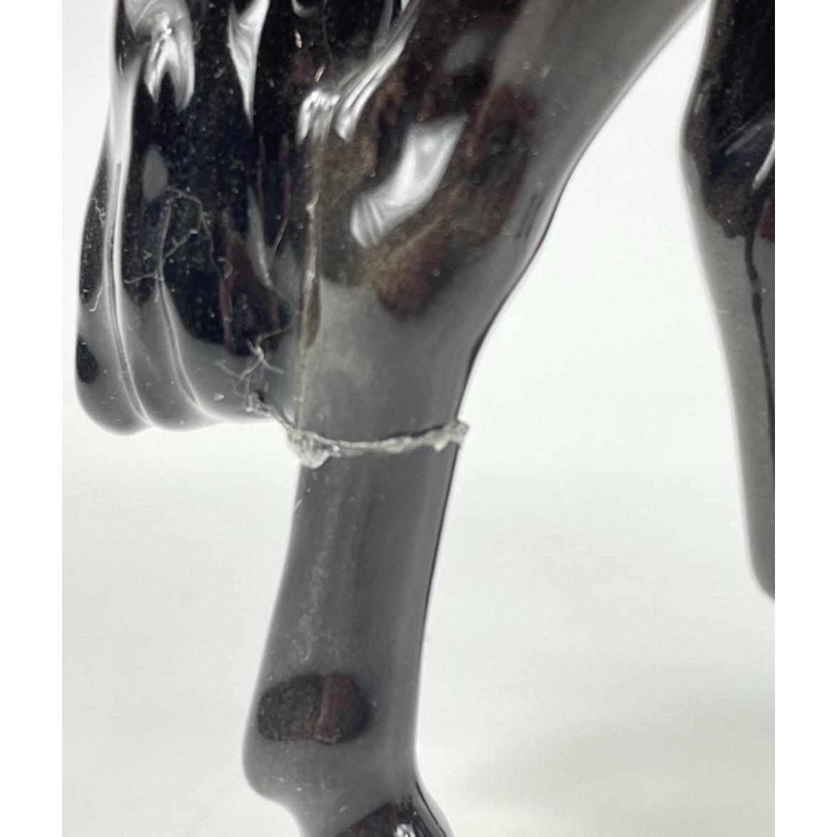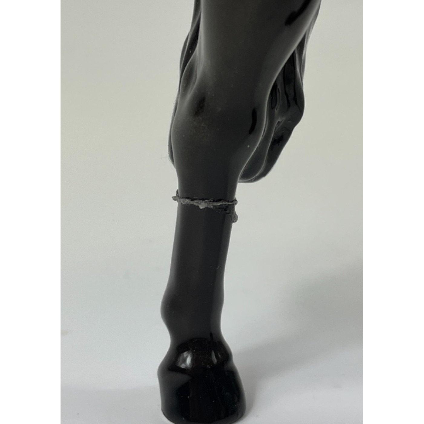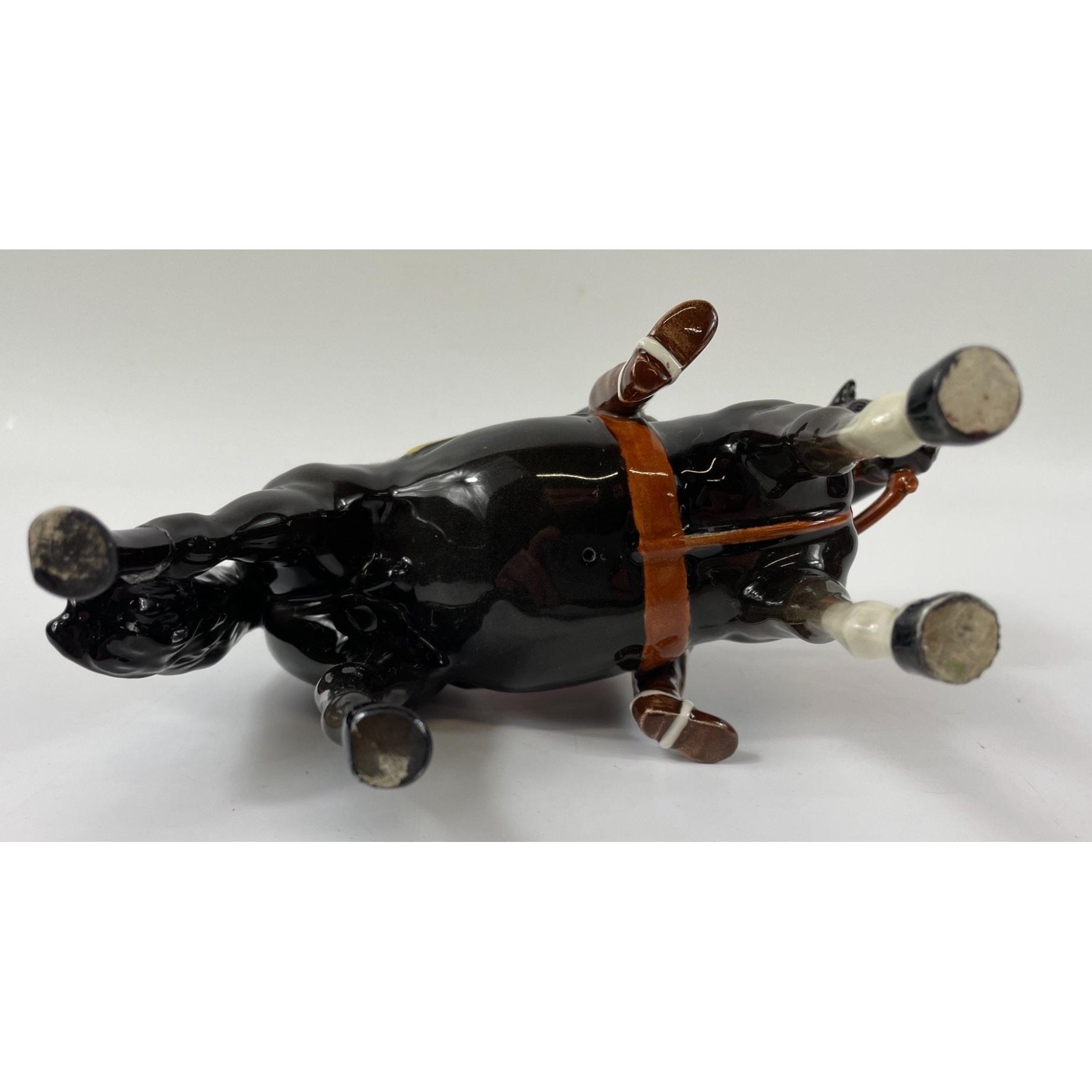 Two equine figures to include a ROYAL DOULTON 23cm high horse on a wooden plinth and a MOUNTIE on a black horse standing 22cm high, no maker's mark (damage repaired to rear horse's leg),