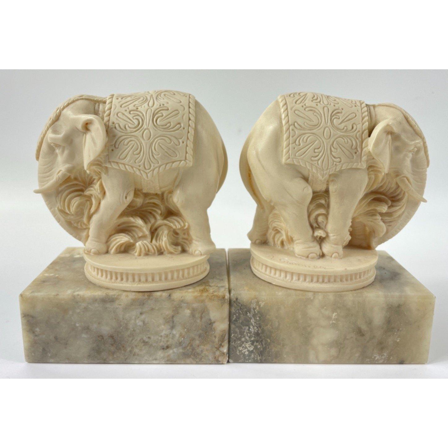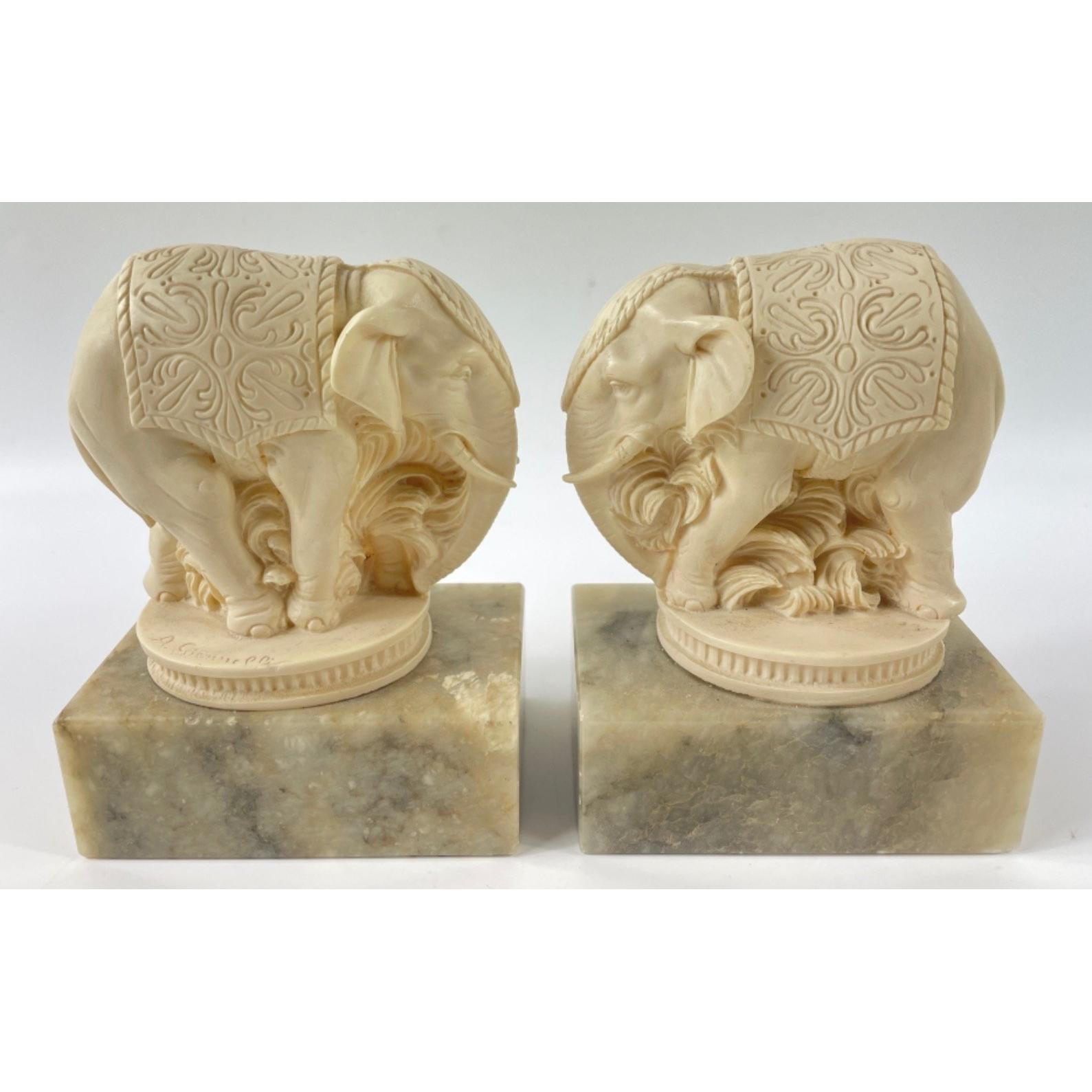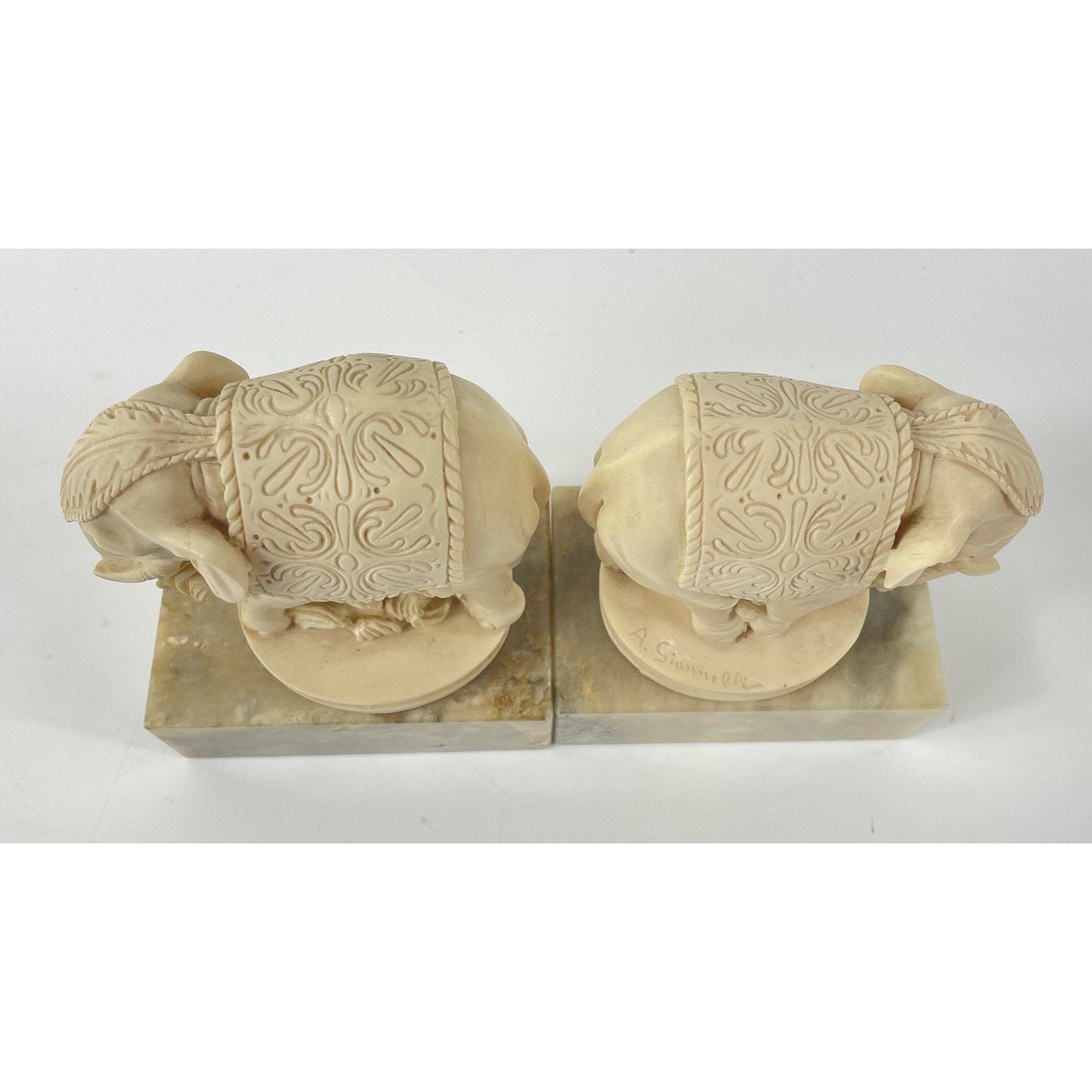 A pair of ARNALDO GIANELLI alabaster sculptured elephant bookends standing 14cm high, very slight damage to tuskApprox 2 pieces
