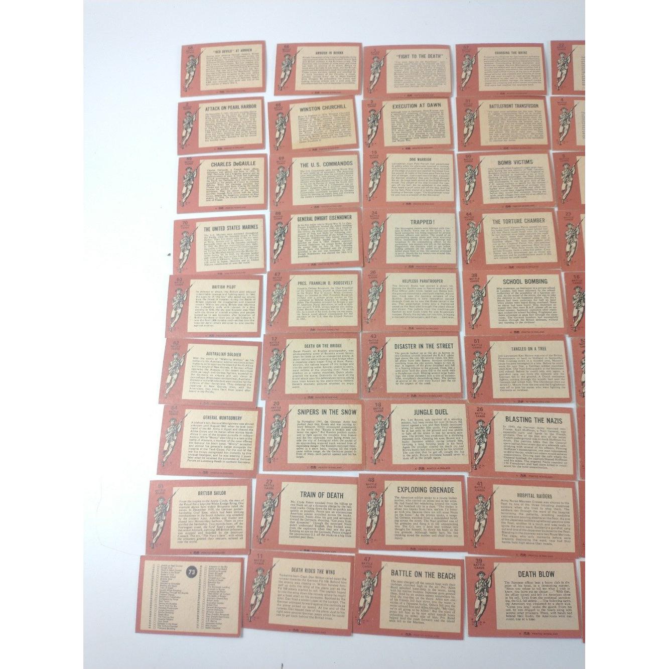 Collection WWII Battle cards circa 1966. Almost full set, number 33 missing and number 11 with 'swap'Approx 73 pieces
