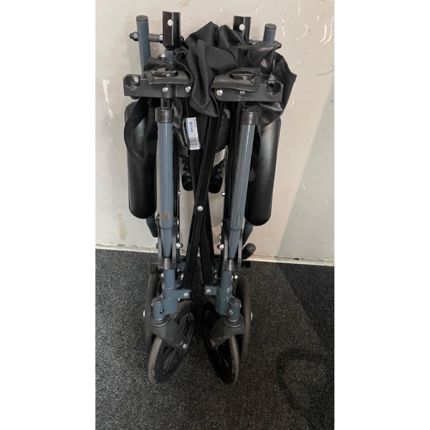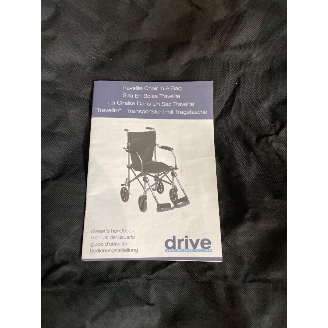 A TRAVELITE CHAIR IN A BAG - a lightweight aluminium framed porterage wheelchair suitable for weights up to 115kg (18 stone) complete with its own compact carry bag for stowing the chair in car boots, coaches etc.