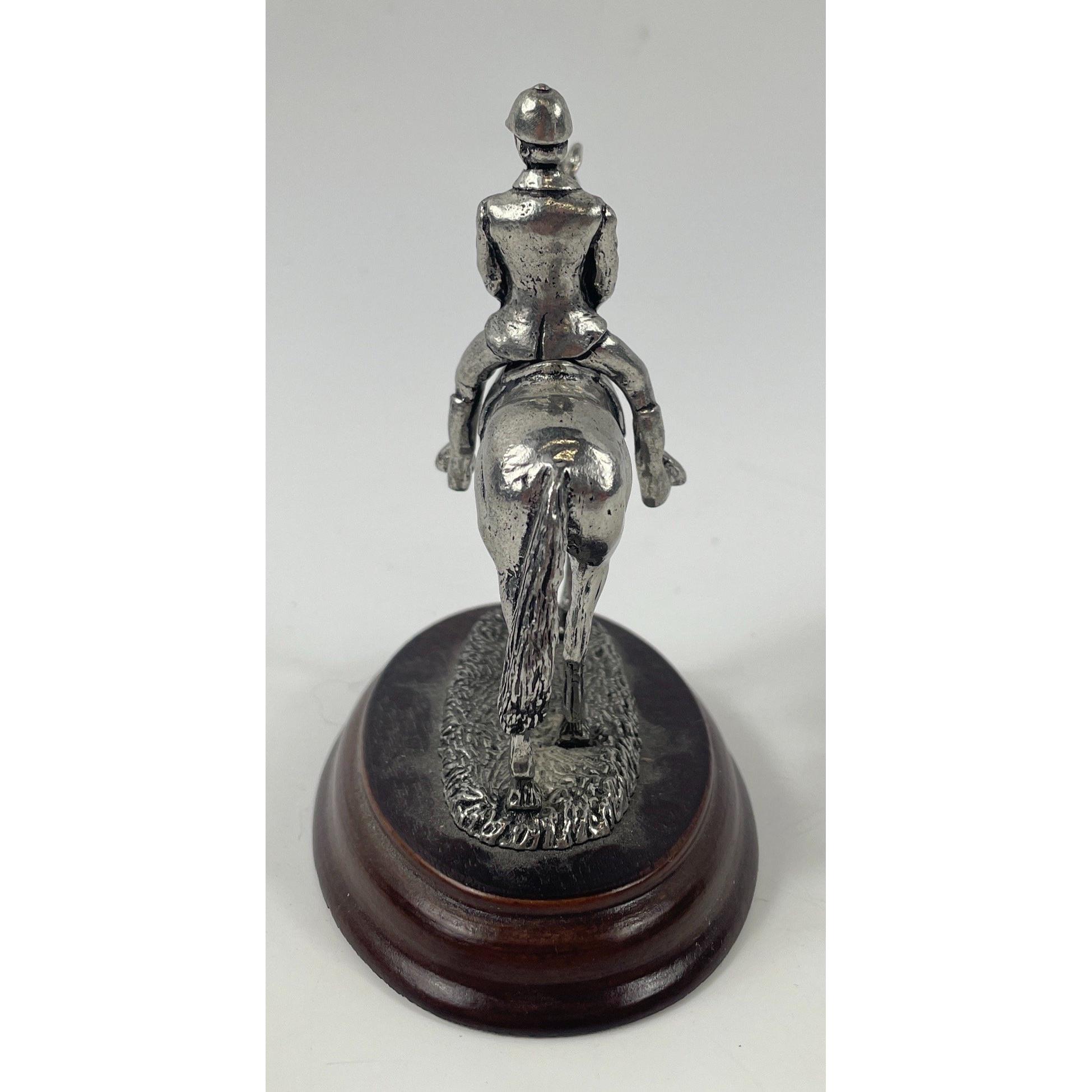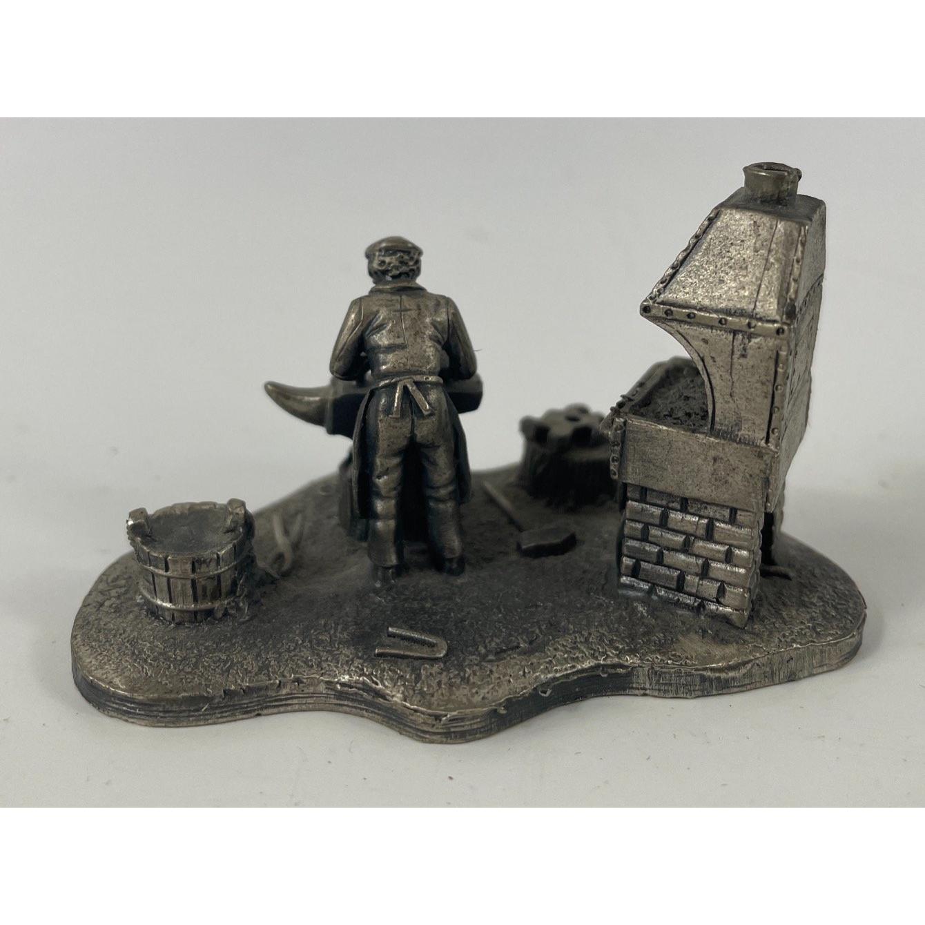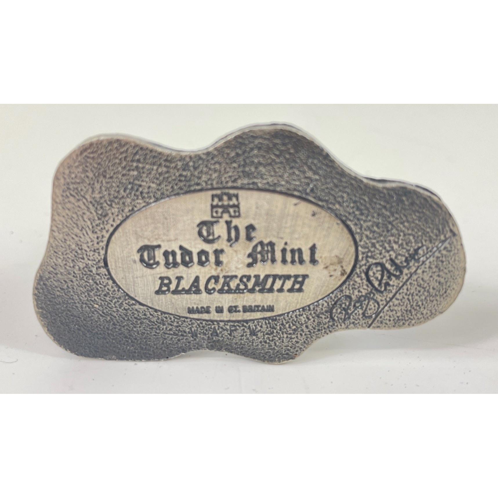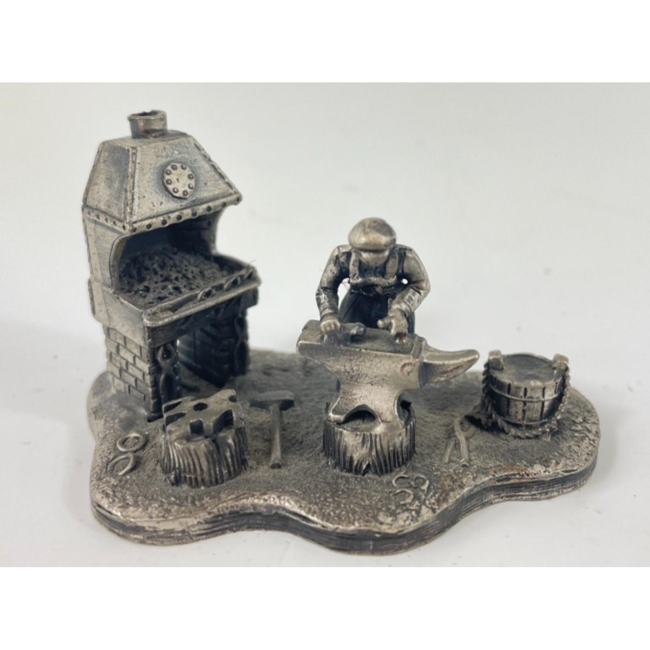 Metal decorative items including a blacksmith standing by his anvil standing 13cm high, a blacksmith from the Tudor Mint, a rider on horseback and a saddled horse Approx 4 pieces