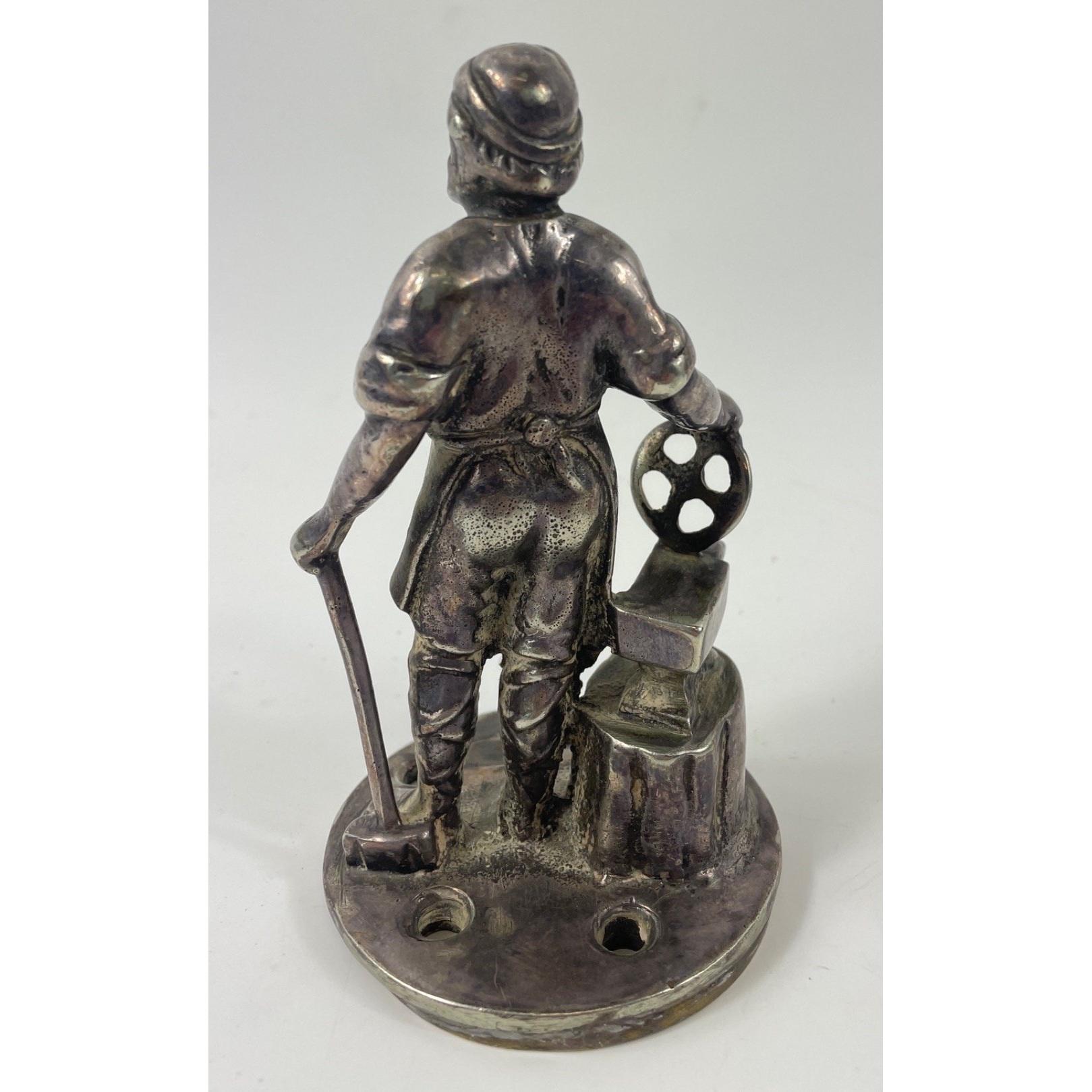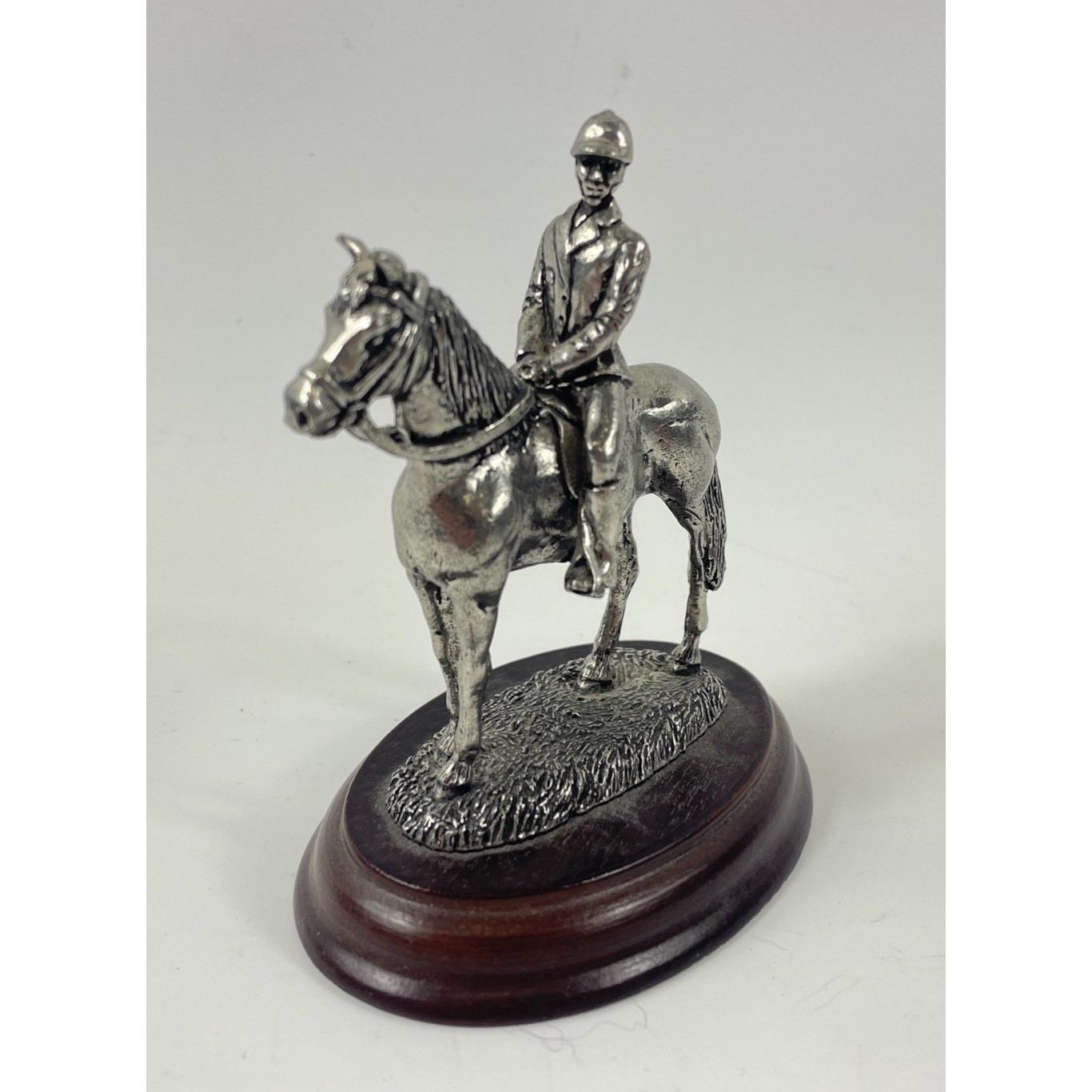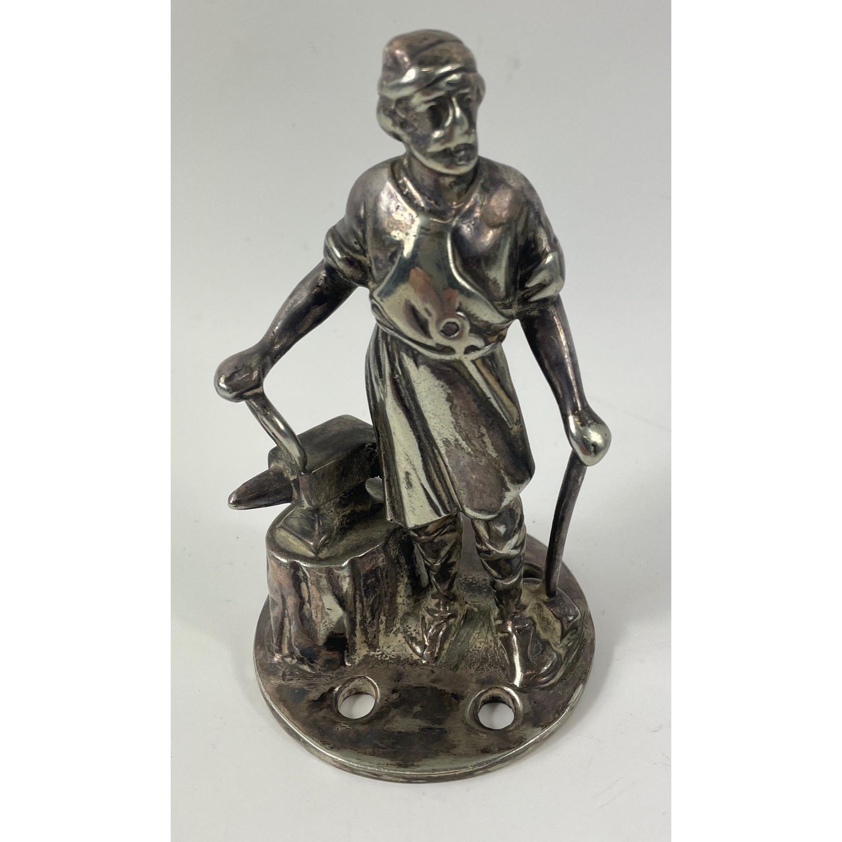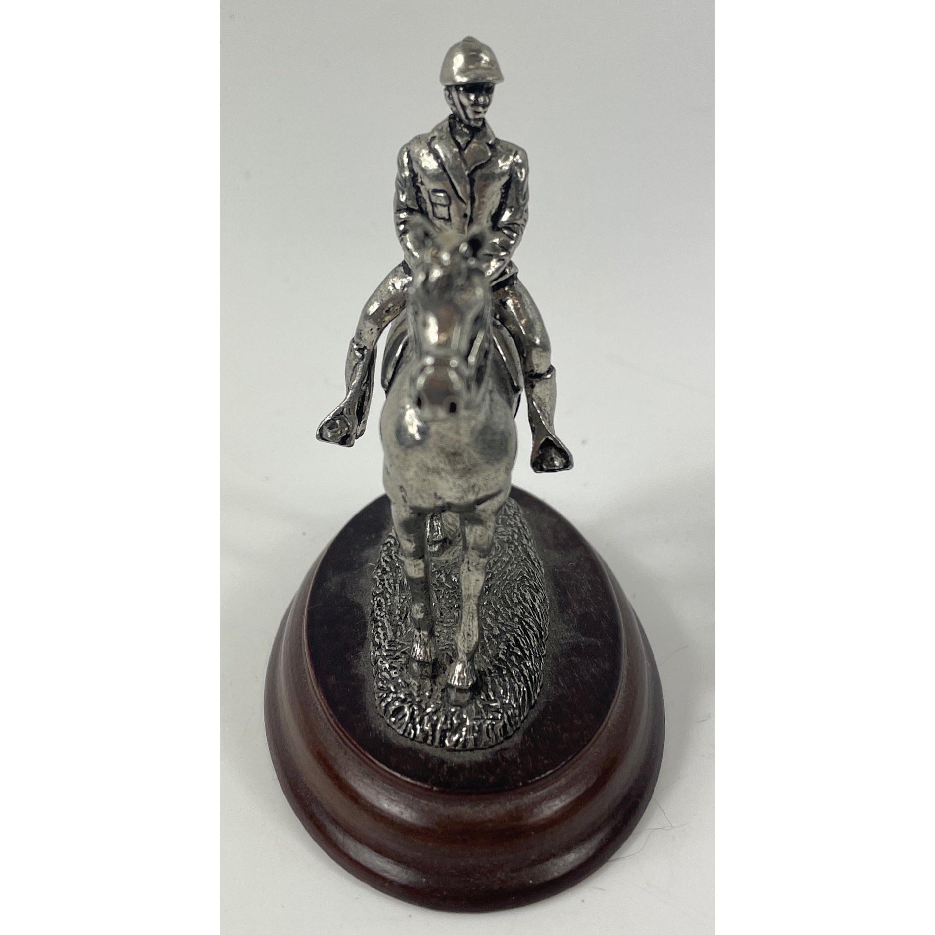 Metal decorative items including a blacksmith standing by his anvil standing 13cm high, a blacksmith from the Tudor Mint, a rider on horseback and a saddled horse Approx 4 pieces