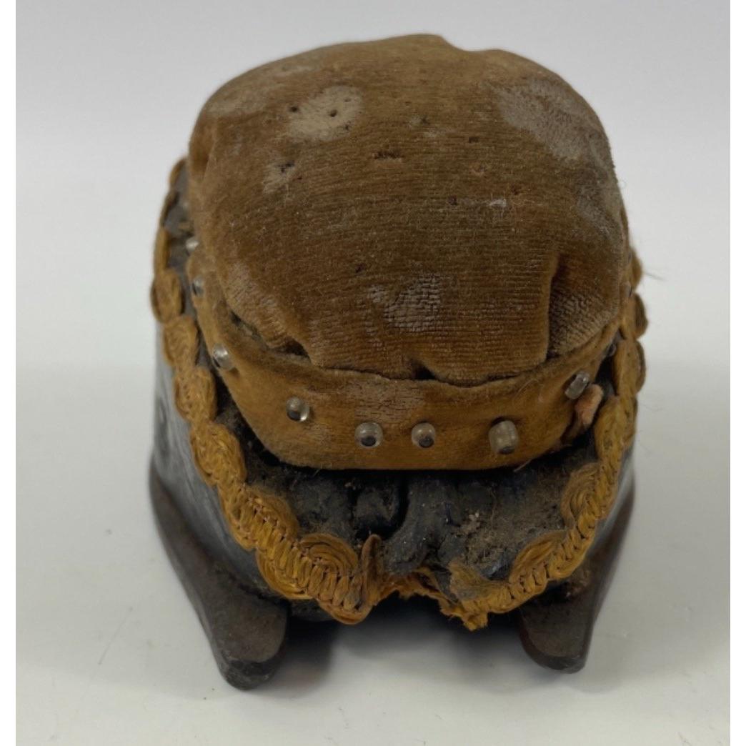 Two VICTORIAN small pony hooves thought to be souvenirs of fallen much loved young horse/ponies from the CRIMEAN campaign, one with remaining pin cushion and the other one without - commonplace at the time, beautiful but sad! - dimensions 8cm x 10cm approx