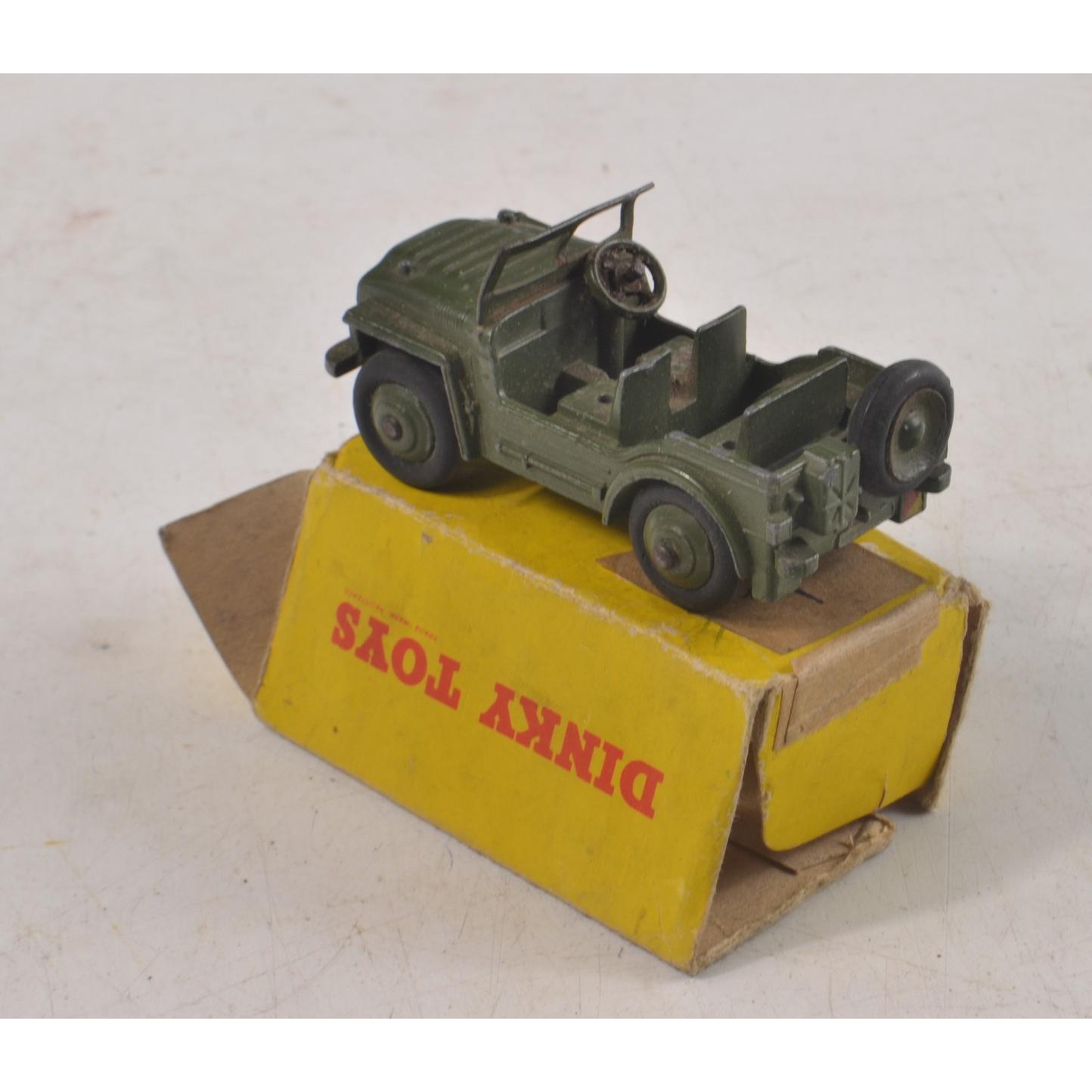 DINKY toy AUSTIN CHAMP JEEP with some damage to paintwork. Comes with original box which is missing most of its flaps.