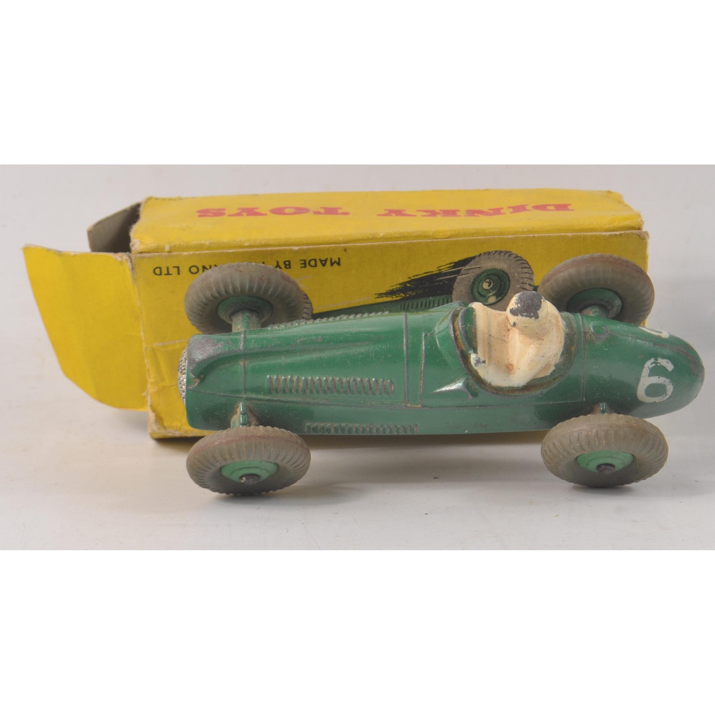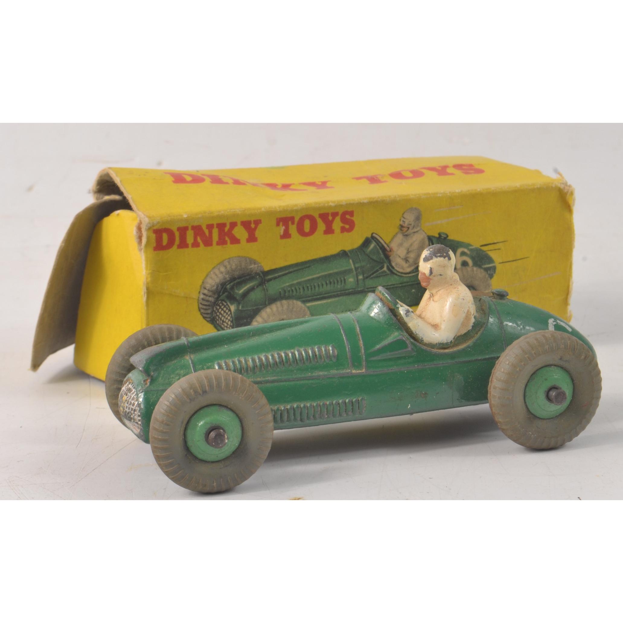 DINKY TOYS COOPER-BRISTOL No23g with original box, the car is in playworn condition,box has lost both ends and only one flap remains, otherwise intact.