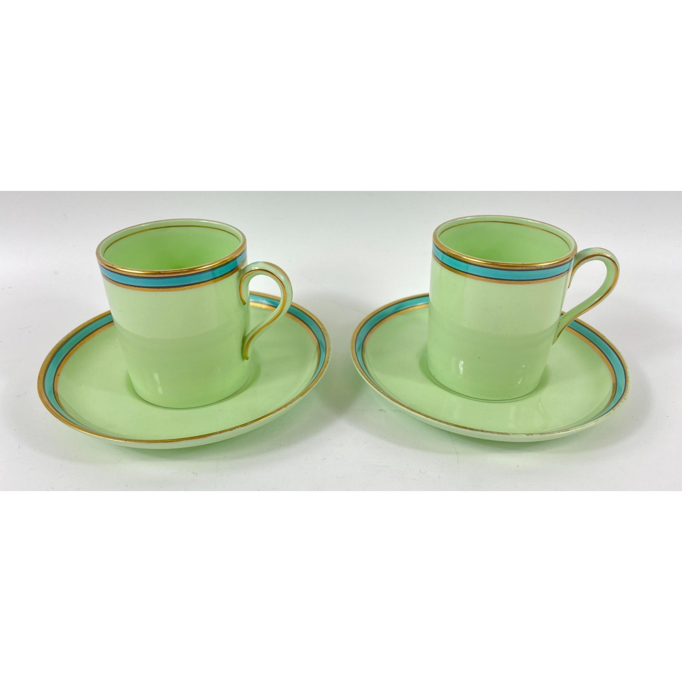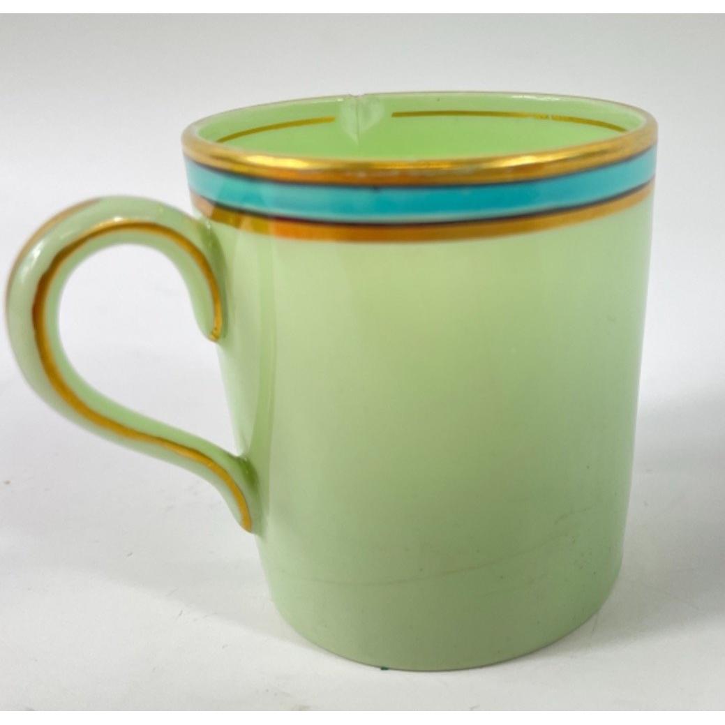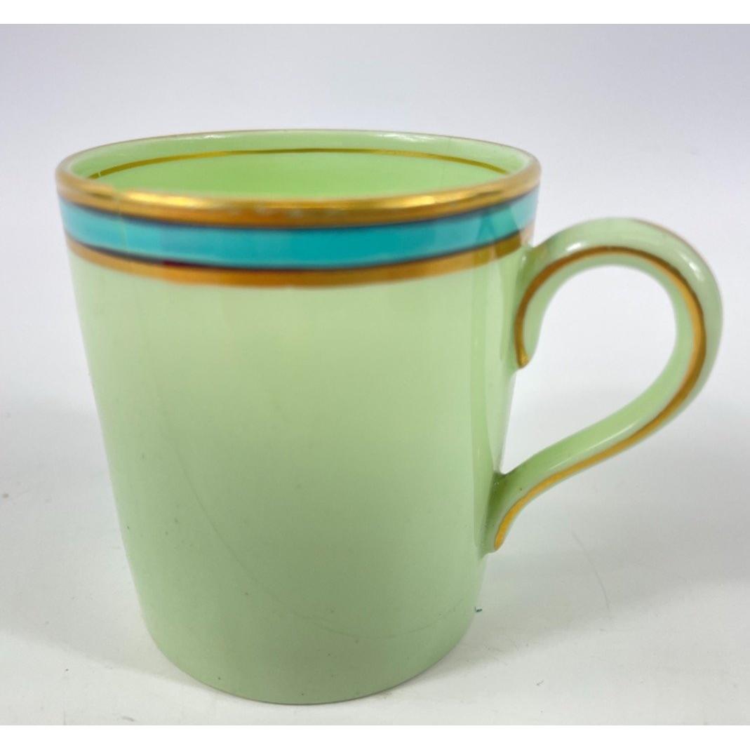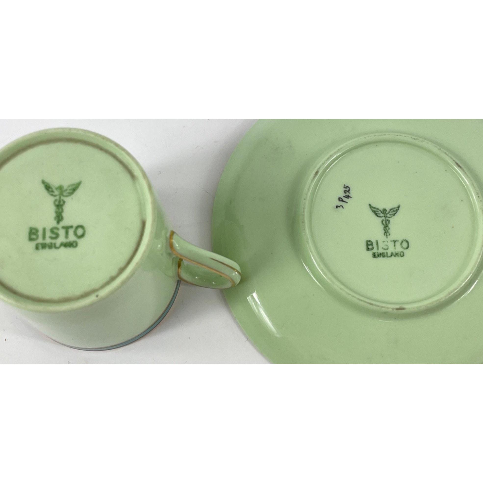 RARE! A part vintage BISTO coffee set in green with a teal trim to include 10 coffee cans and 11 saucers ( 1 cup is damaged )Approx 21 pieces