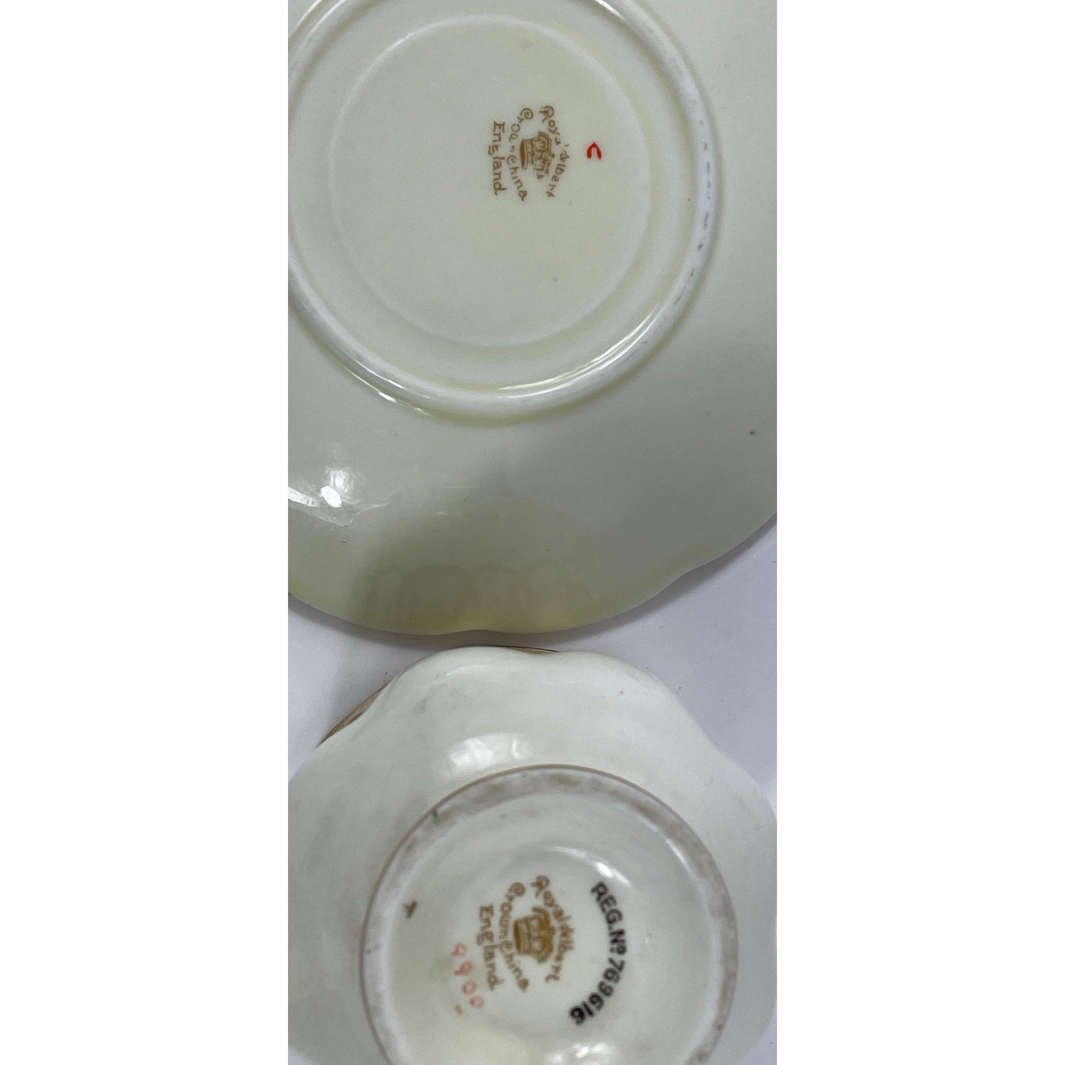 A part ROYAL ALBERT tea service reg. no 769616, to include 5 cups, 7 saucers, 5 side plates and 1 sandwich plate (1 cup with small chip to rim and slight crack)Approx 18 pieces