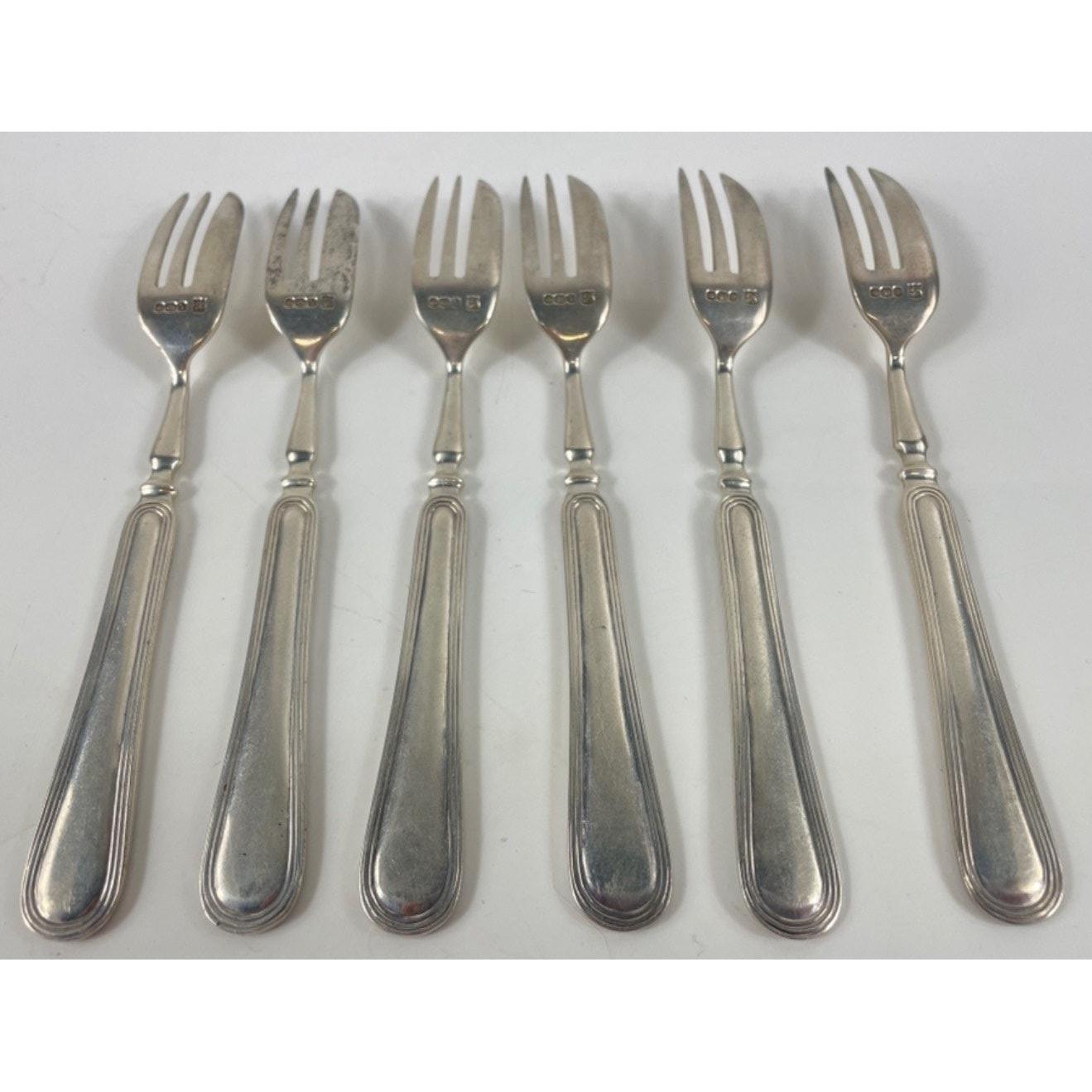 A set of 6 SHEFFIELD 1927 silver hallmarked cake forks by silversmith James Deakin & Sons, weight 208gmApprox 6 pieces