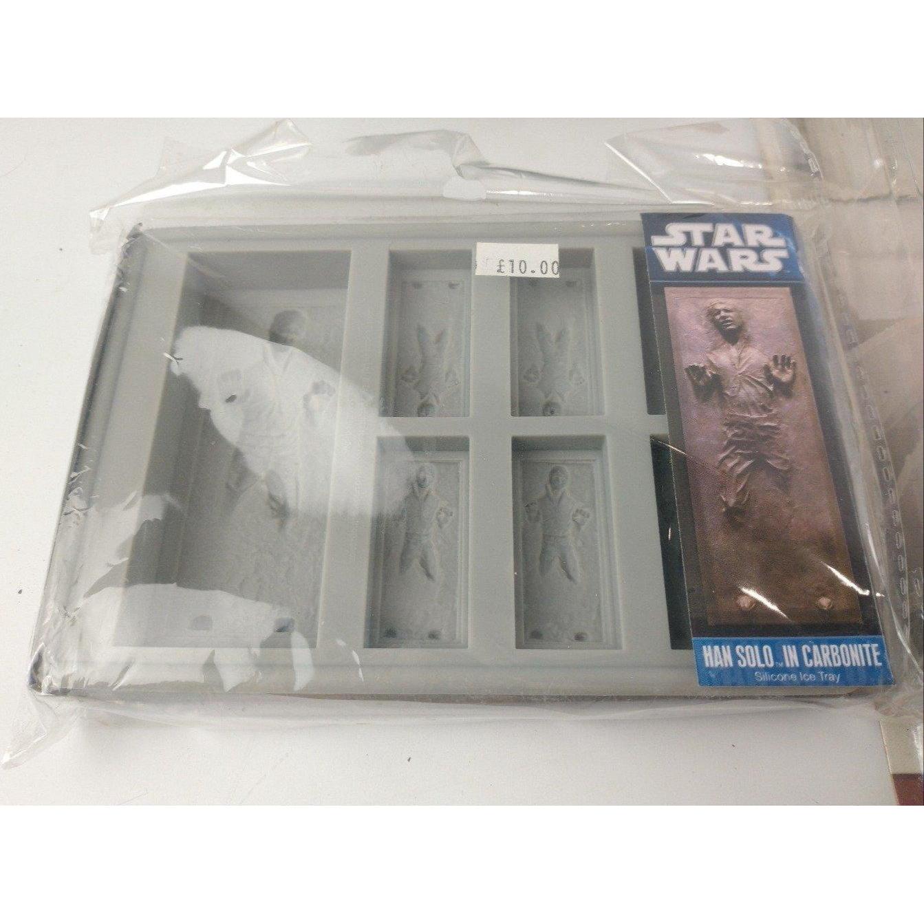 COLLECTABLE STAR WARS Han Solo in Carbonite silicone ice tray, a pkt of STAR WARS Light Saber Chopsticks( the cardboard is detached from the outer wrapper but it just requires re-fixing, and is intact and lastly R2-D2 small plastic model, Luke Skywalker, Darth Vader, Han Solo(keyring) another different Han Solo and a HASBRO different pose Darth Vader with light saber without his face mask