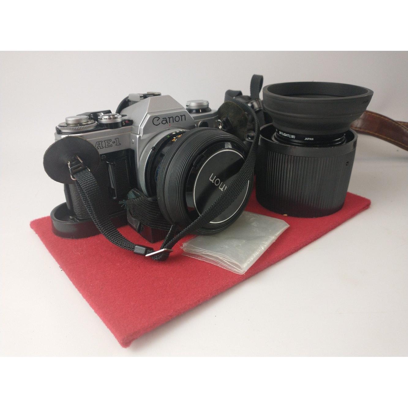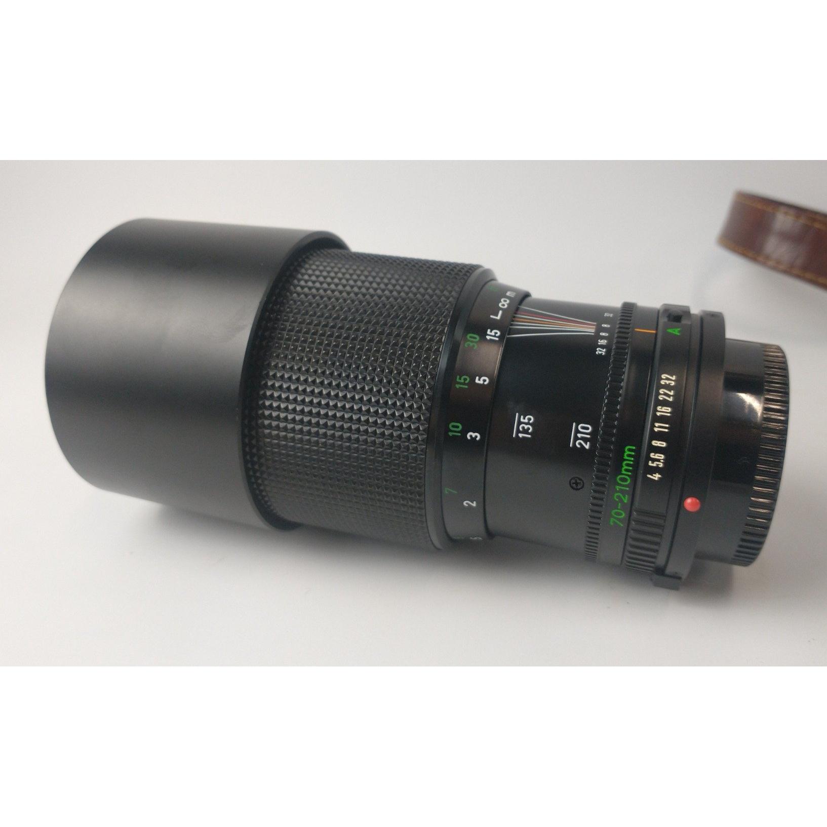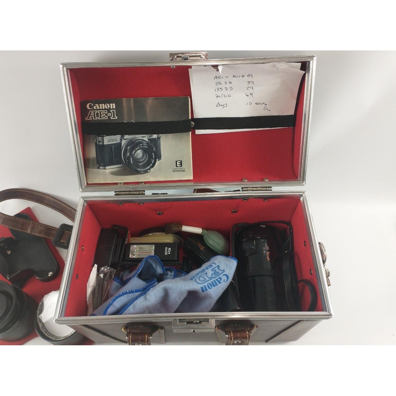 A CANON AE-1 35mm film camera with a CANON FD 50mm 1:18 S.C lens(attached to the camera) and also a CANON Lens FD 28mm 1:2.8, a further CANON ZOOM LENS FD 70-210mm1:4 , and yet another lens a CANON FD 135mm 1:35 S.C with stout camera accessory carry-case 4