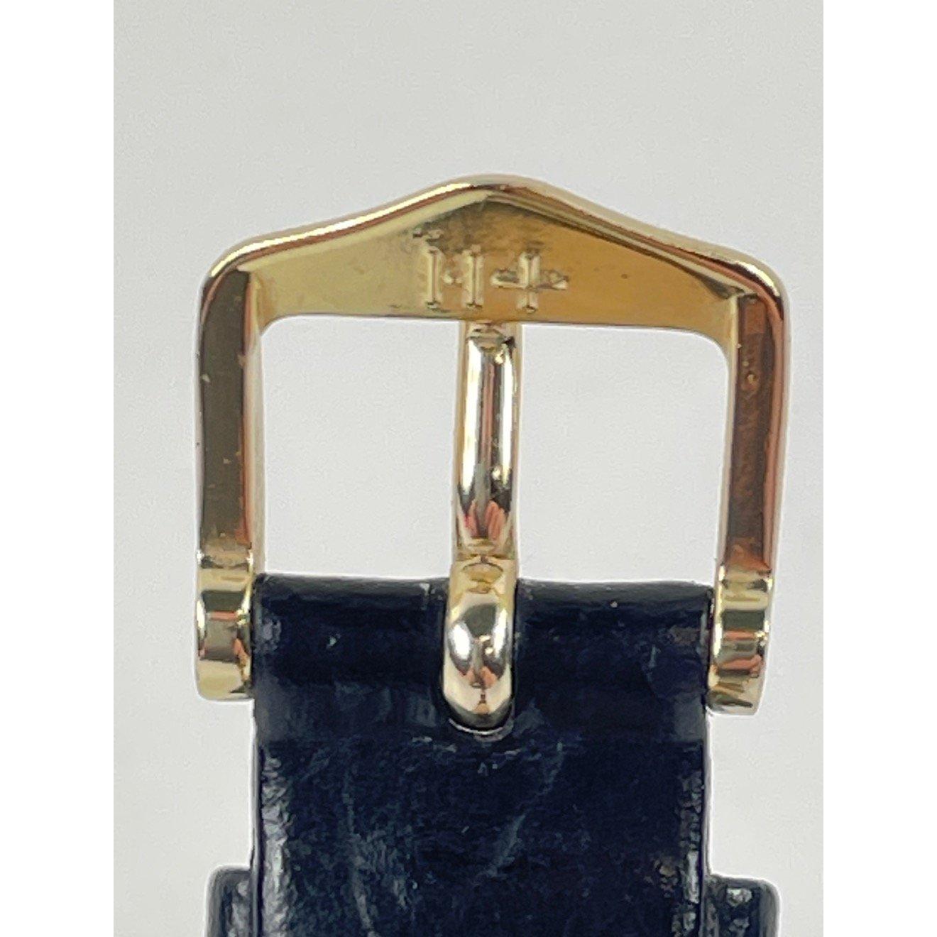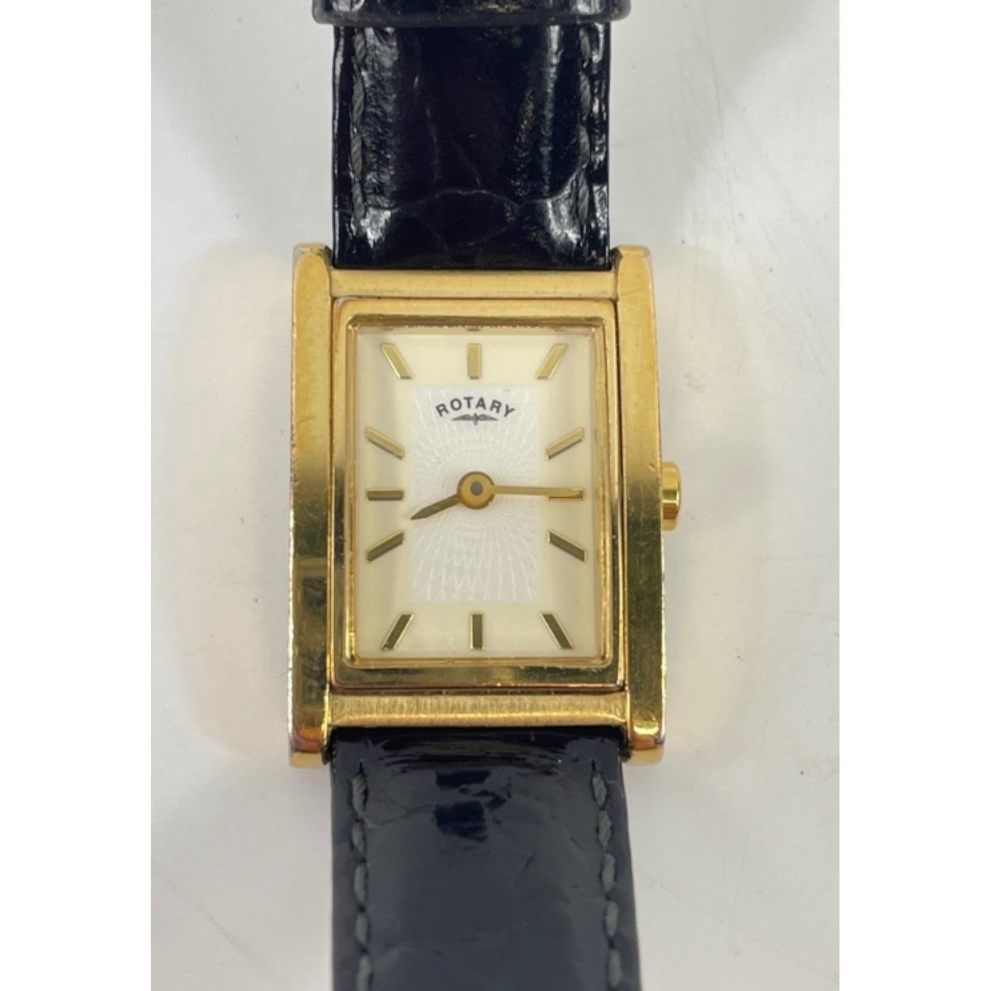 A ladies yellow metal Rotary watch with leather strap, face measures 2.5x2cmApprox 1 pieces