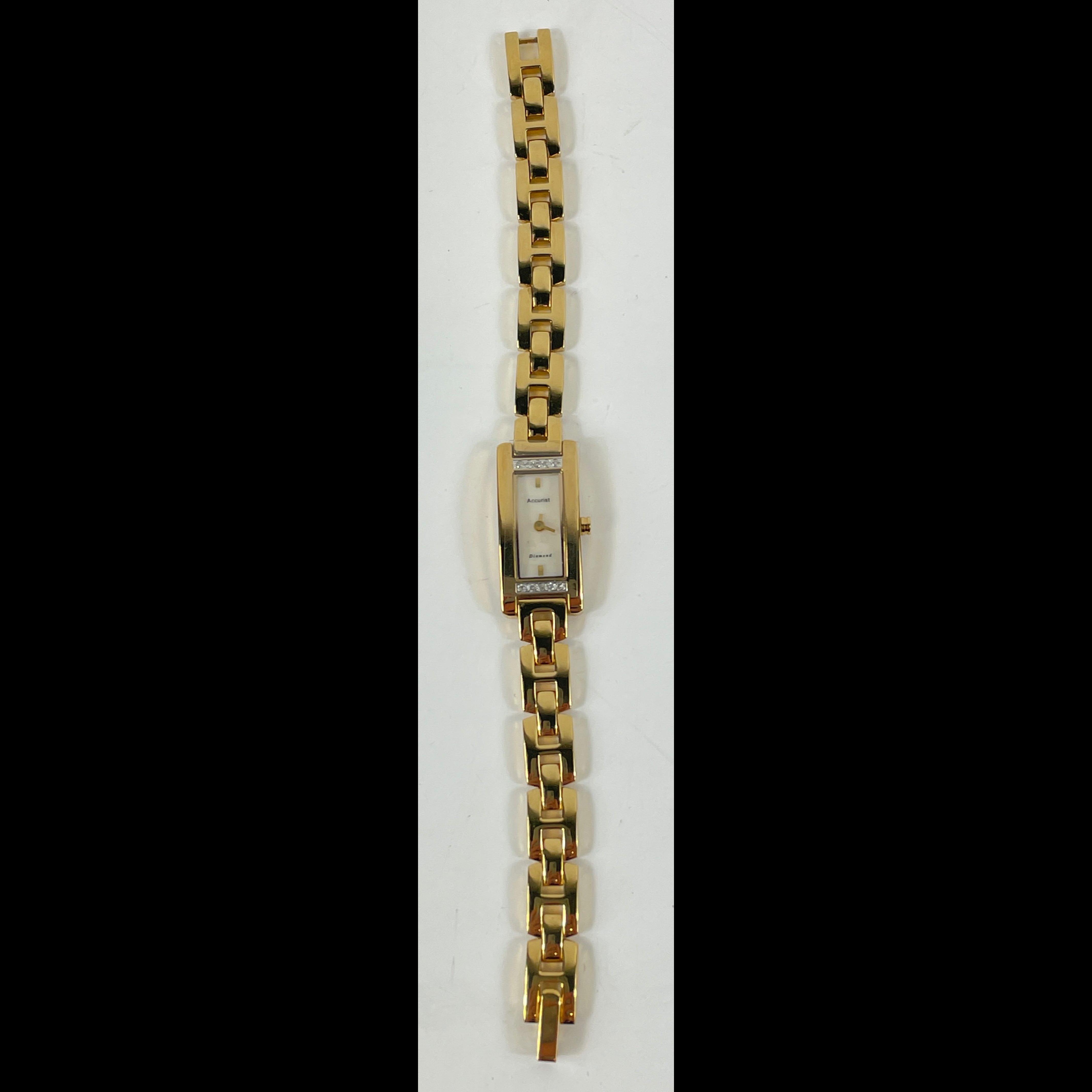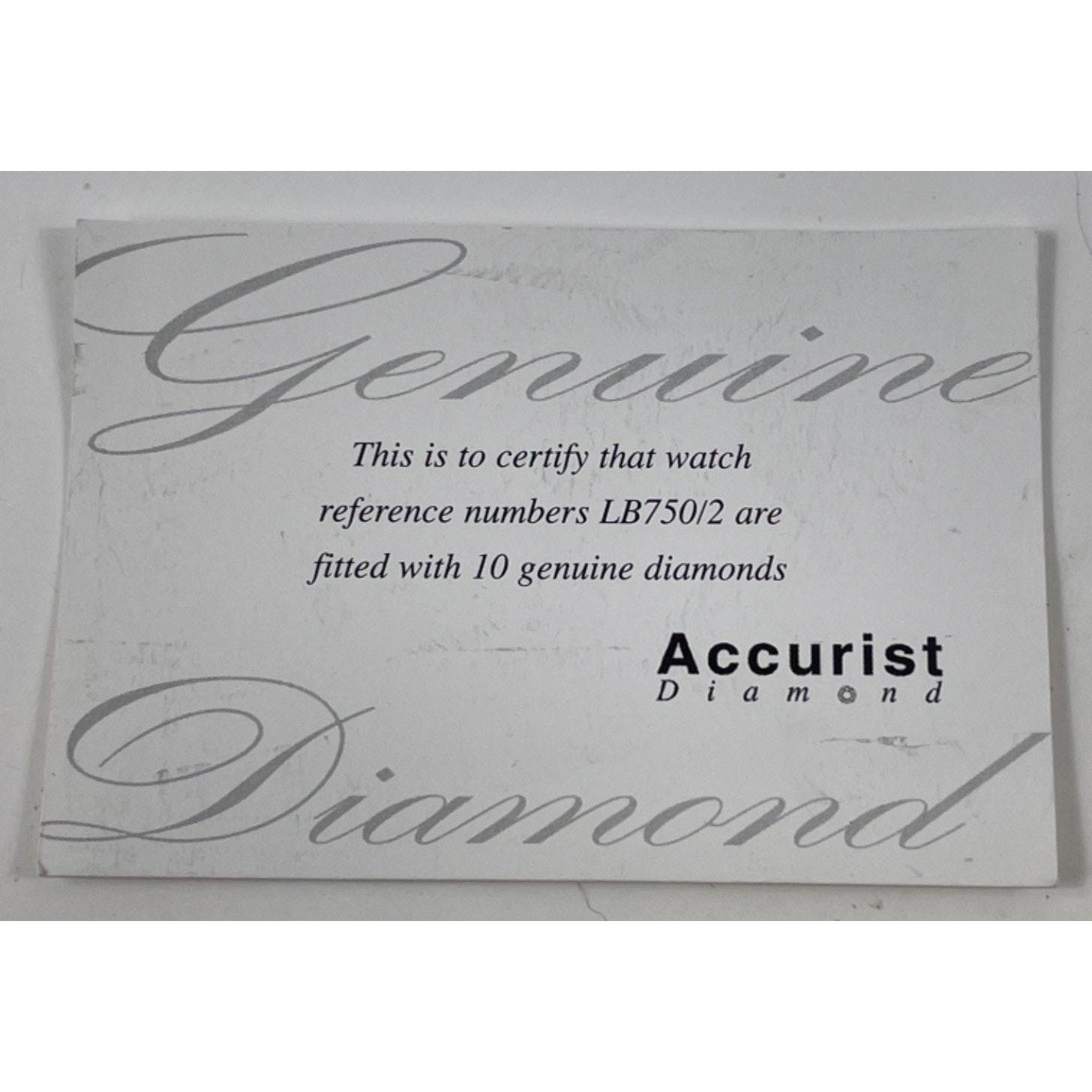 A boxed ladies Accurist watch with 10 diamonds complete with guarantee and instructions (as new condition, protective film still on face of watch).Approx 1 pieces