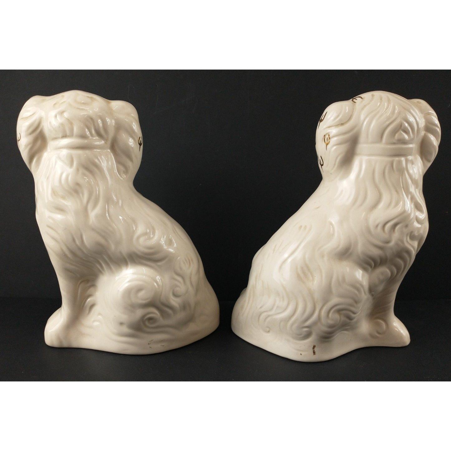 A pair of cream and gold mantle dog figurines 20H x 15cmW