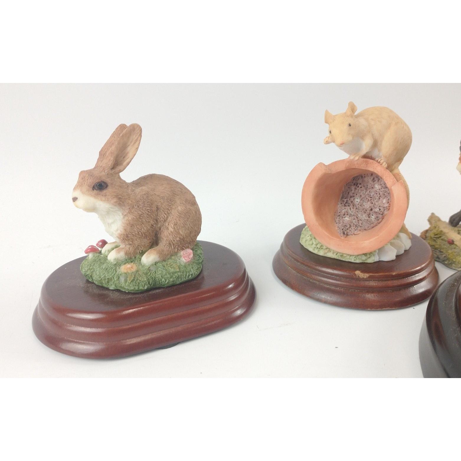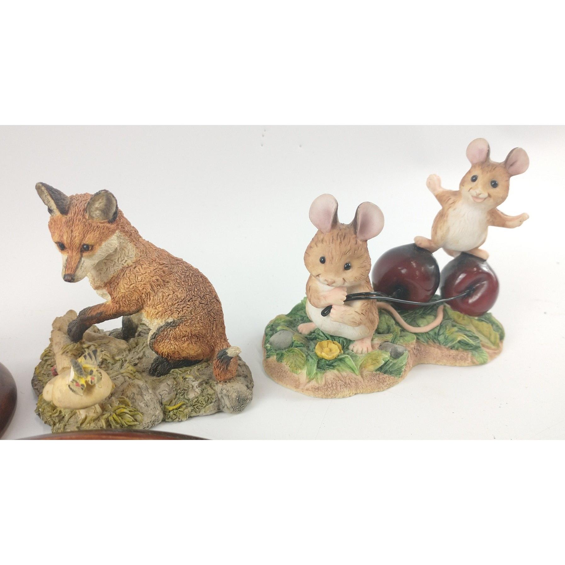 A selection of animal based figurines to include a rabbit, merrie mice by Border Fine Arts, a fieldmouse on a flower pot, a fox, and a sheepdog and lamb wall plaqueApprox 5 pieces