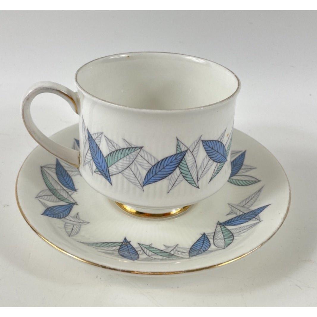 A ROYAL STANDARD Trend pattern with 22 kt gold rims tea service to include 6 cups, 9 saucers, 9 side plates, 1 milk jug and 1 sugar bowlApprox 26 pieces