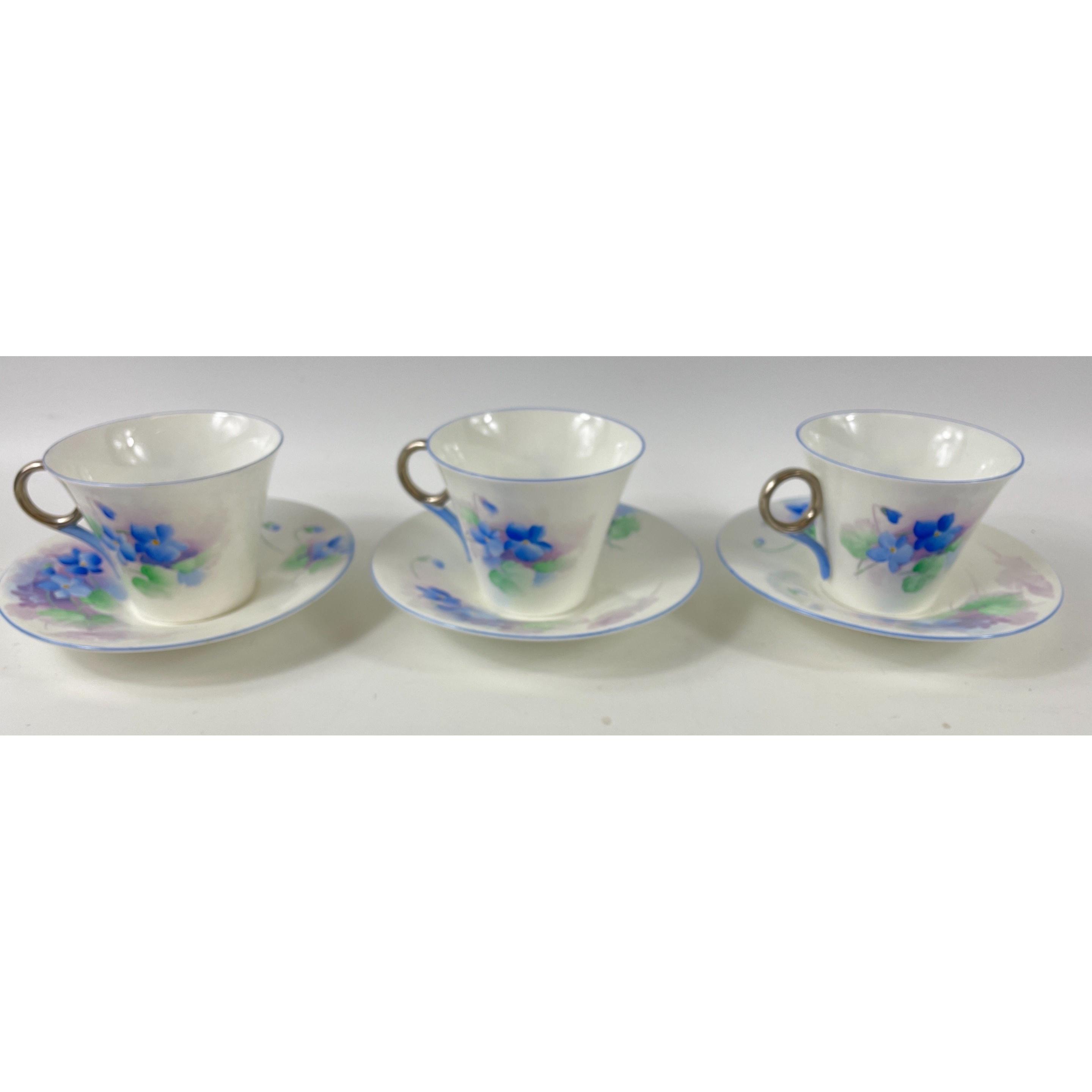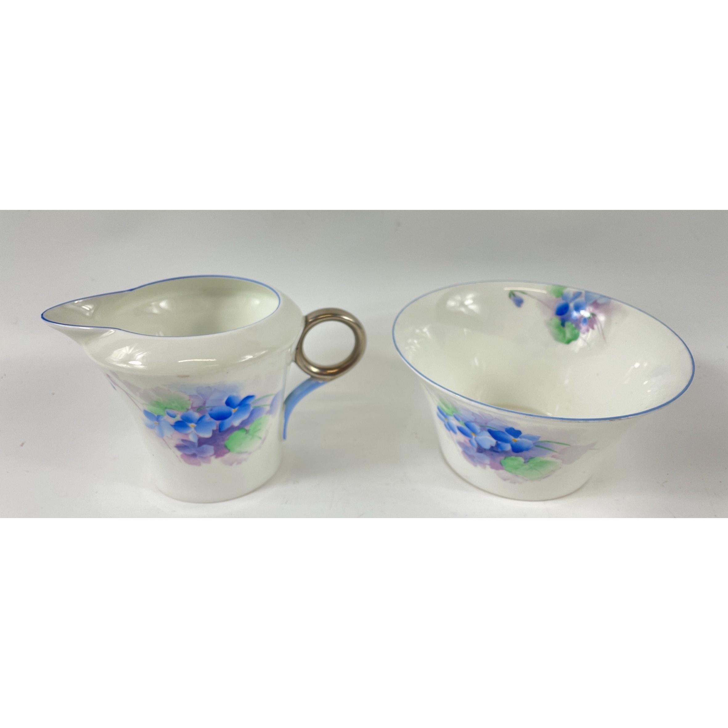 A beautiful ART DECO form cornflower blue tea service by SHELLEY to include 12 teacups, 12 saucers, 12 squared side plates, 2 butter dishes, 2 sandwich plates, 1 milk jug and 1 sugar bowl
