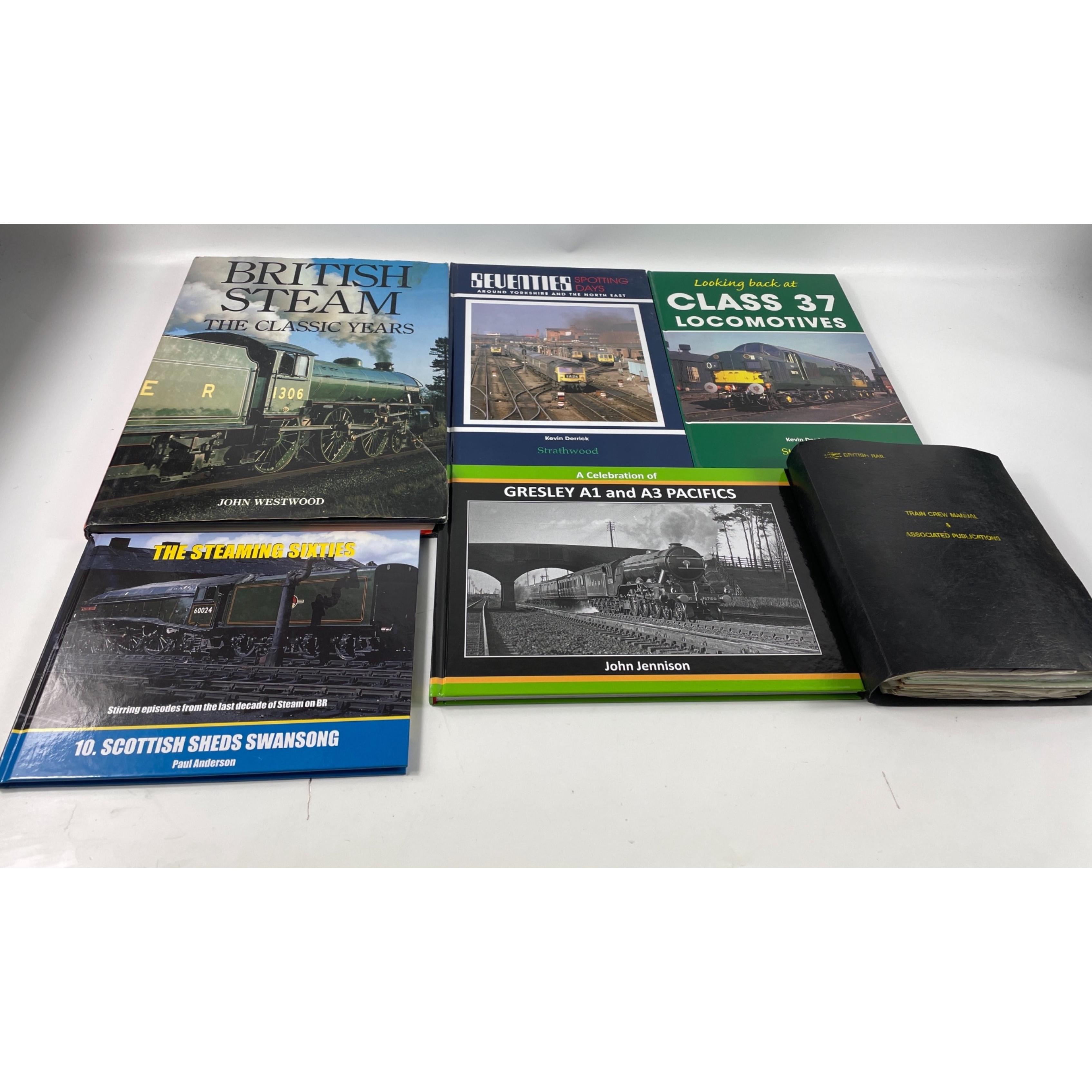 A boxed lot to include a BRITISH RAIL TRAIN CREW MANUAL for a CLASS 60 Locomotive to include driver's manual, crew manual etc also publication books to include Class 37 Locomotives, The Modern Railways magazine publications, Seventies Spotting Days around Yorkshire and the North East, Gresley A1 and A3 Pacifics, The Steaming Sixties 10 Scottish Sheds Swansong Britsh Steam The Classic Years, a collection of Freight Master booklets, British Railways pocket book No 1 etc