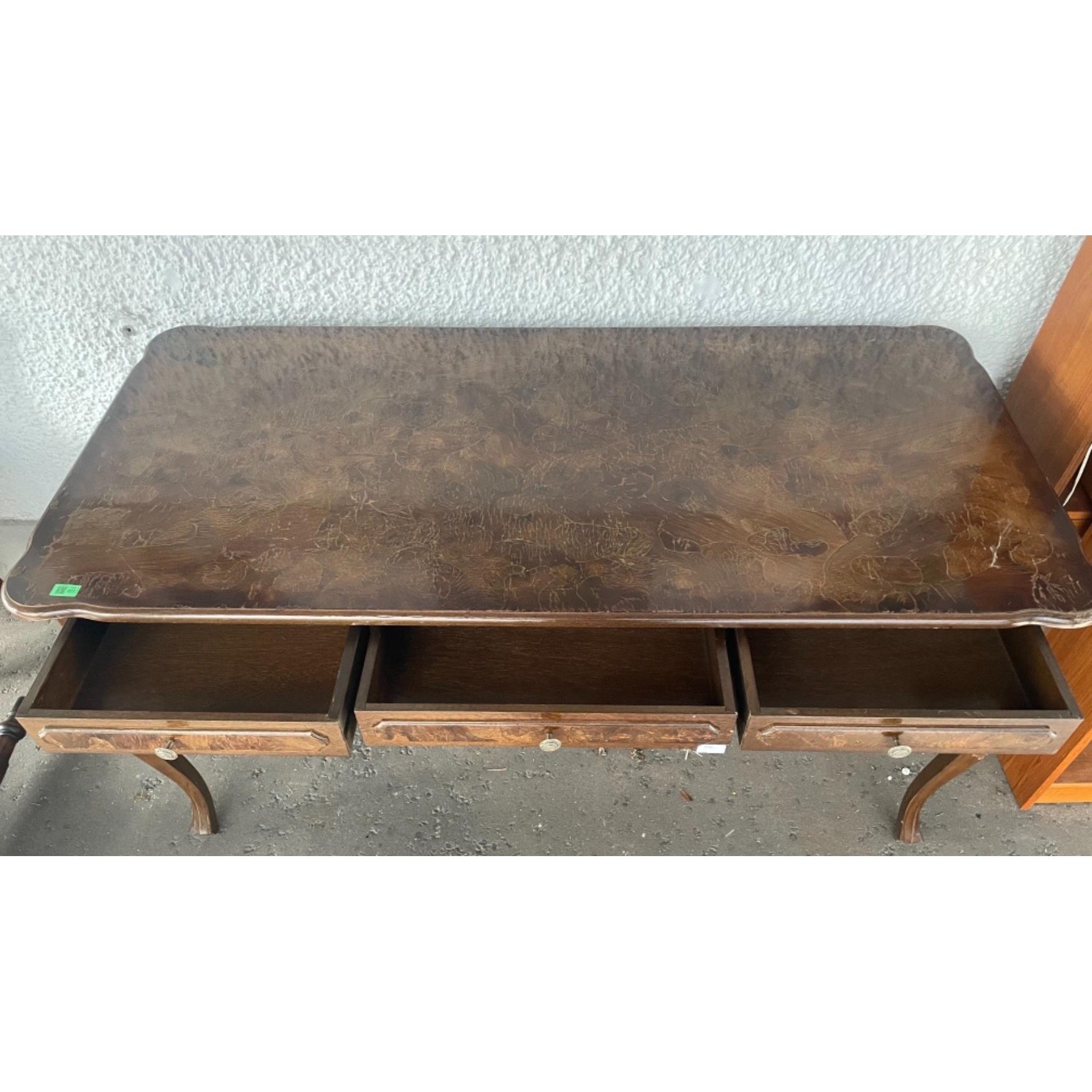 The EXECUTIVE STUDY Chippendale style large knee-hole desk in walnut style, equipped with 5 drawers for storing documents and accessories. With saber-shaped carved legs faithfully reflects the Chippendale style. Originality and elegance complement that recalls an era of luxury. Dimensions 5ft in length and 2 feet depth approx