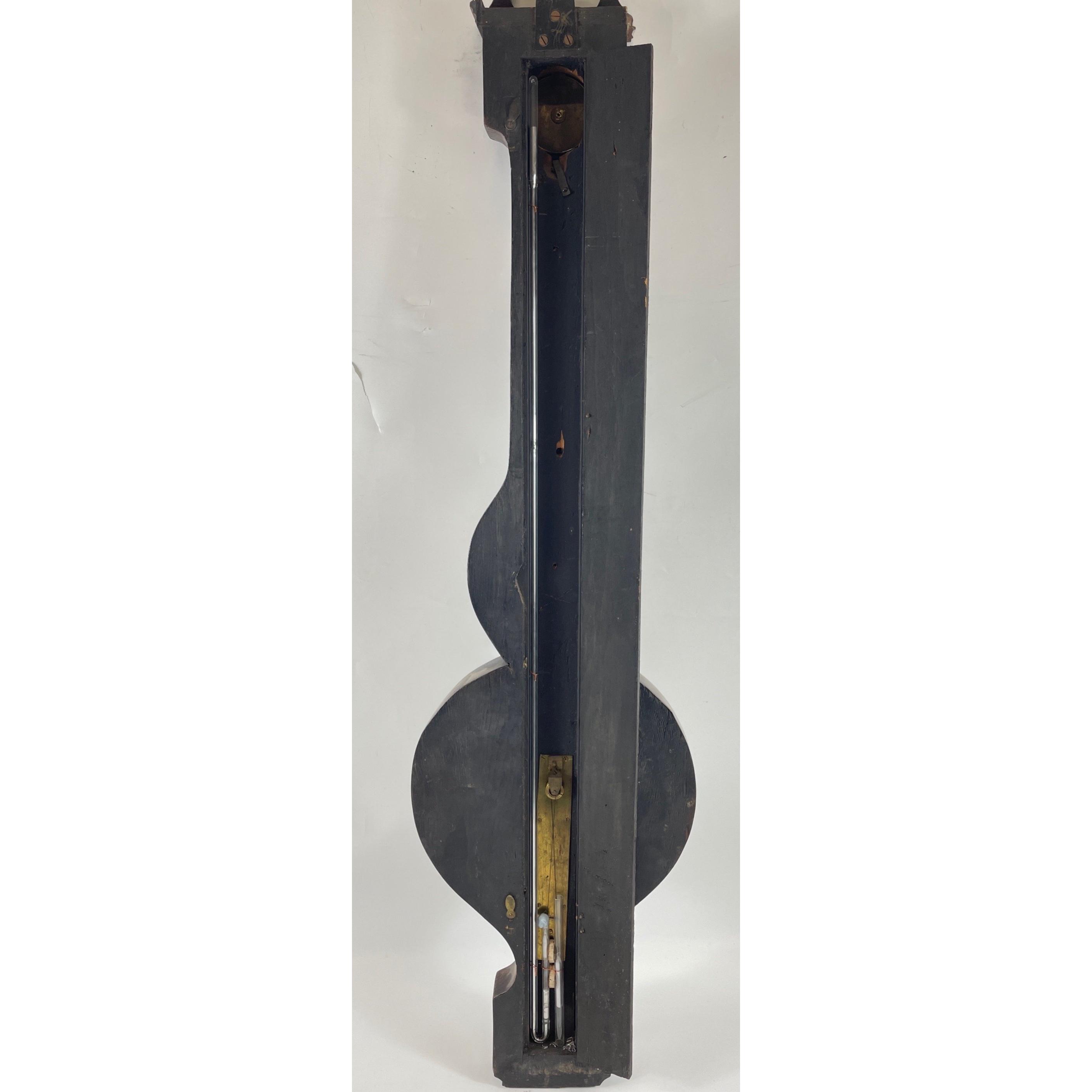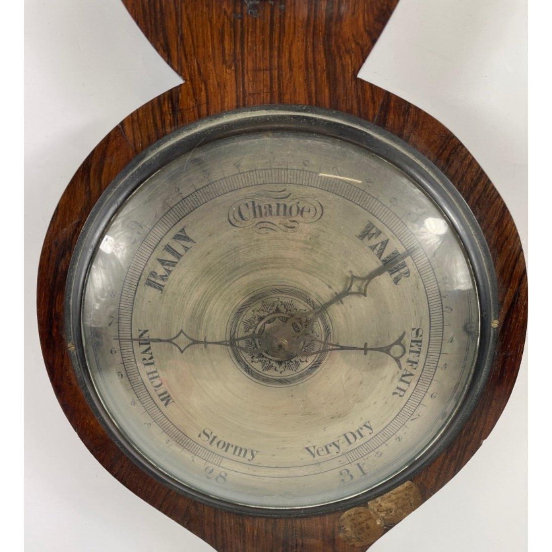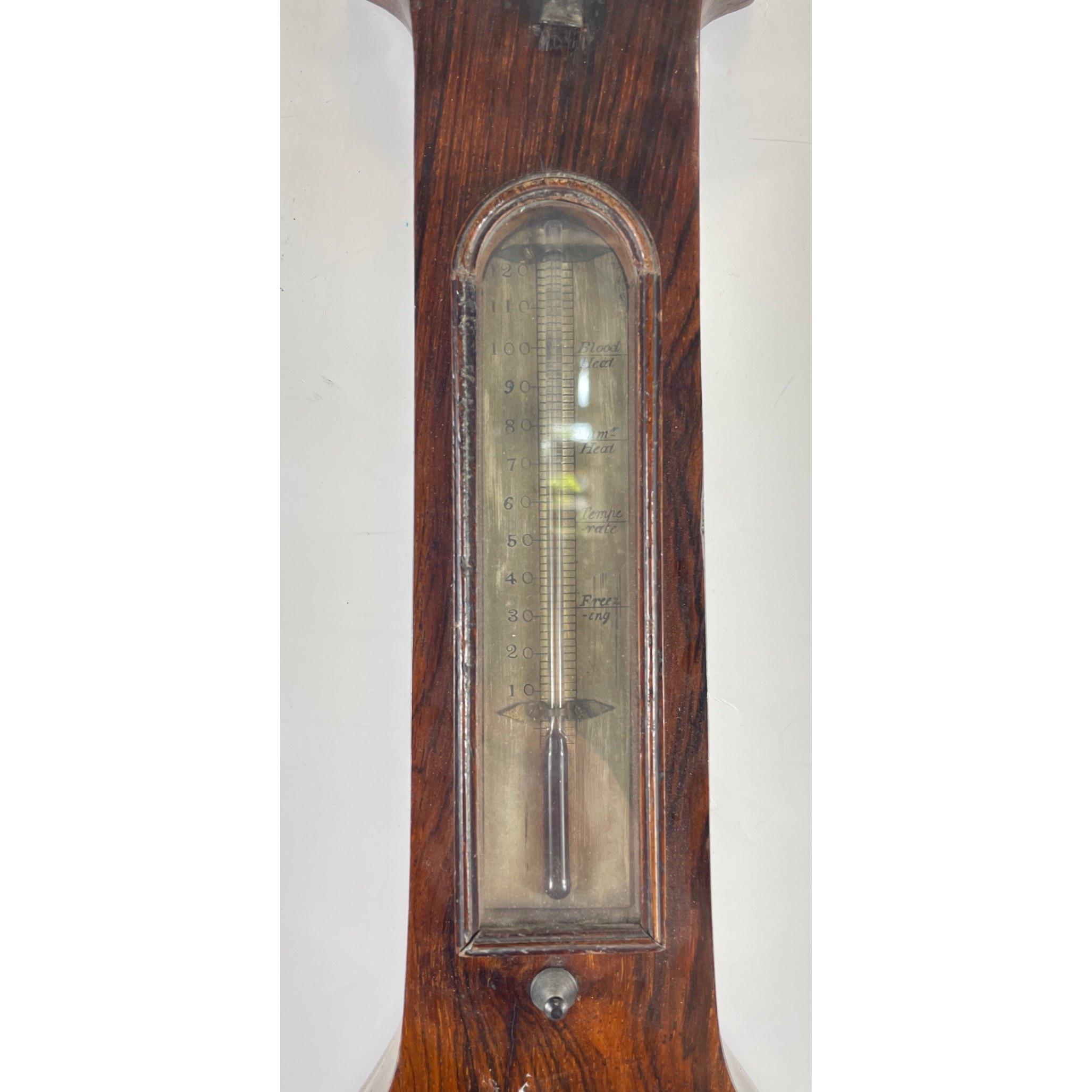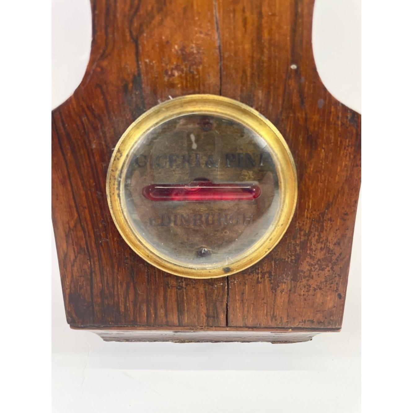 CICERI AND PINI EDINBURGH -19th Century, circa 1840's rosewood 5-glass Wheel Barometer, the ‘swan-neck’ pediment over case, of ‘Rio’ rosewood, inset with engraved, silvered brass hygrometer, Fahrenheit thermometer, main 8-inch diameter barometer dial and spirit-level, verso the hinged door when opened shows some broken glass, which will require slight repair to the top of the glass tube(see pics) otherwise signed by the makers. Retailed by the Edinburgh branch of a well-respected firm of London makers.