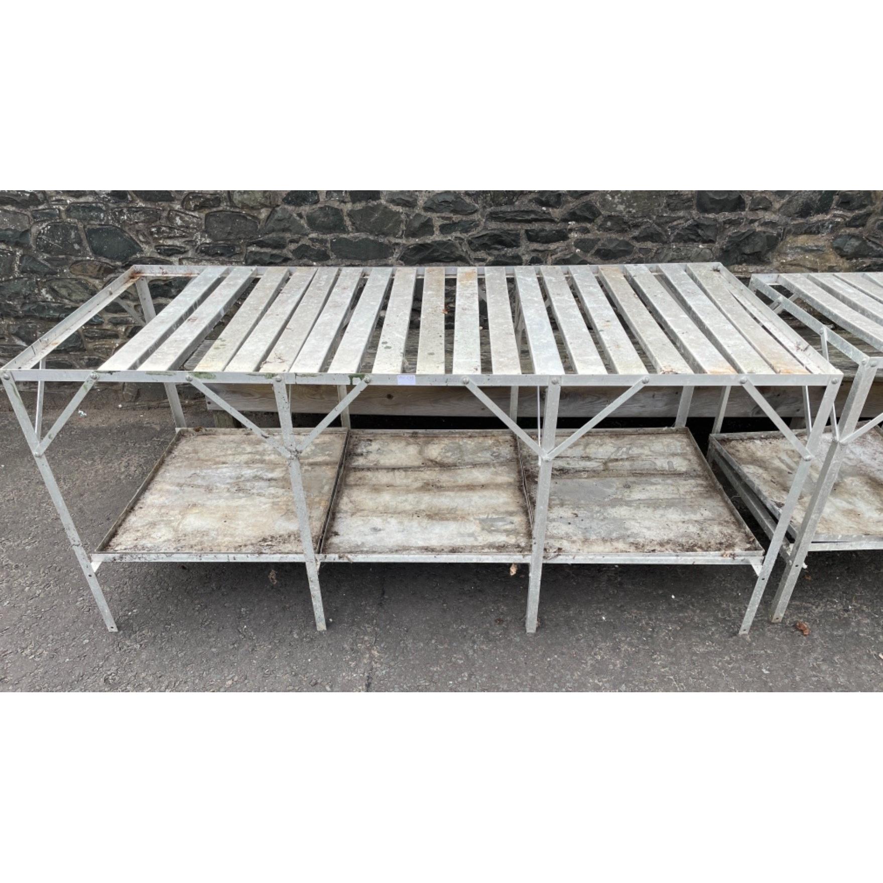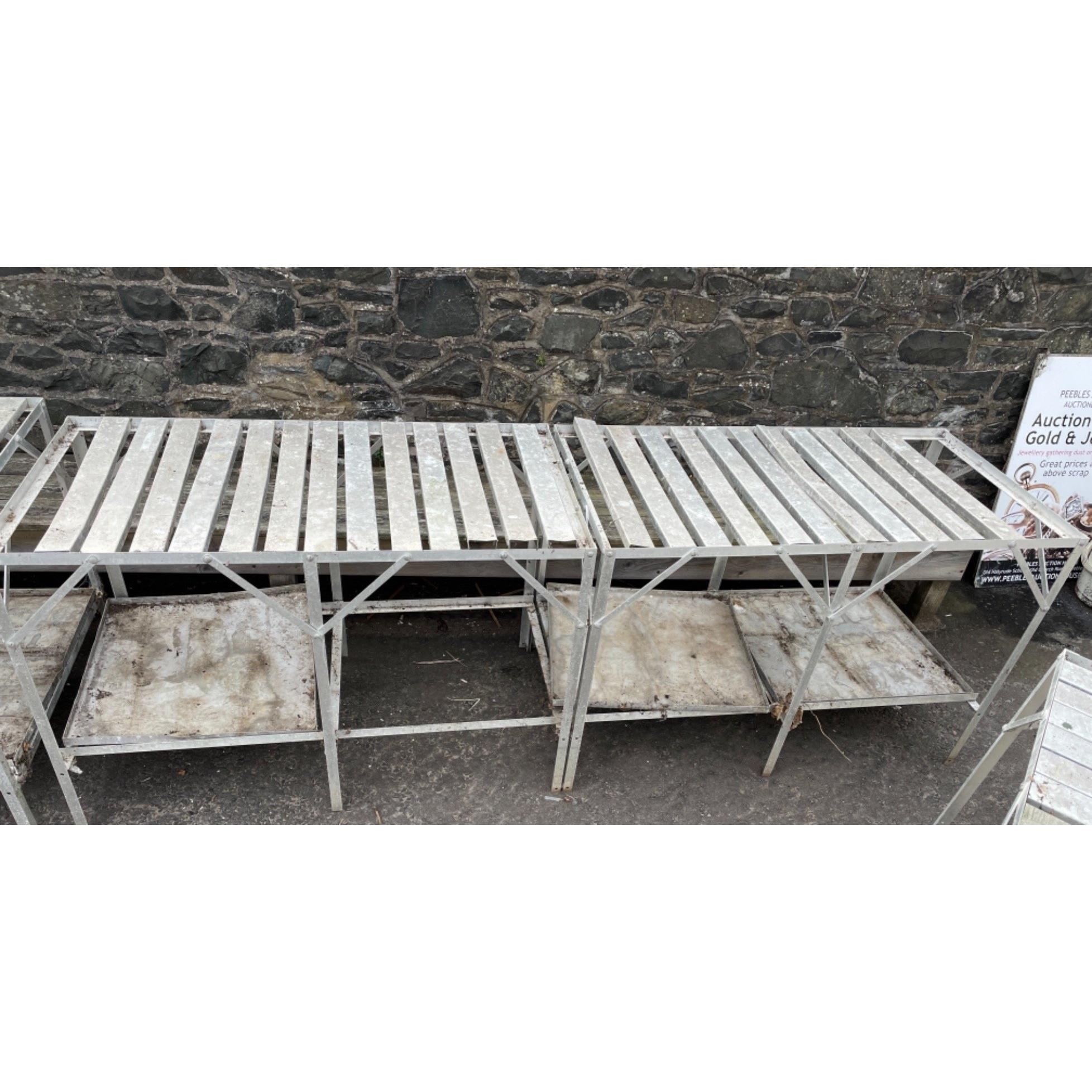 Four pieces of aluminium greenhouse staging (2 pieces 174 x 63 x 76cm H and 2 pieces 116 x 63 x 76cm H )Approx 4 pieces