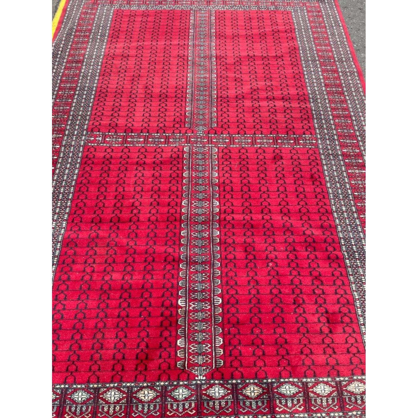 An IRRESISTIBLE VINTAGE INDIAN CARPET 9ft x 6ft with deep red base and symmetrical design in four main central panels - simply stunning!