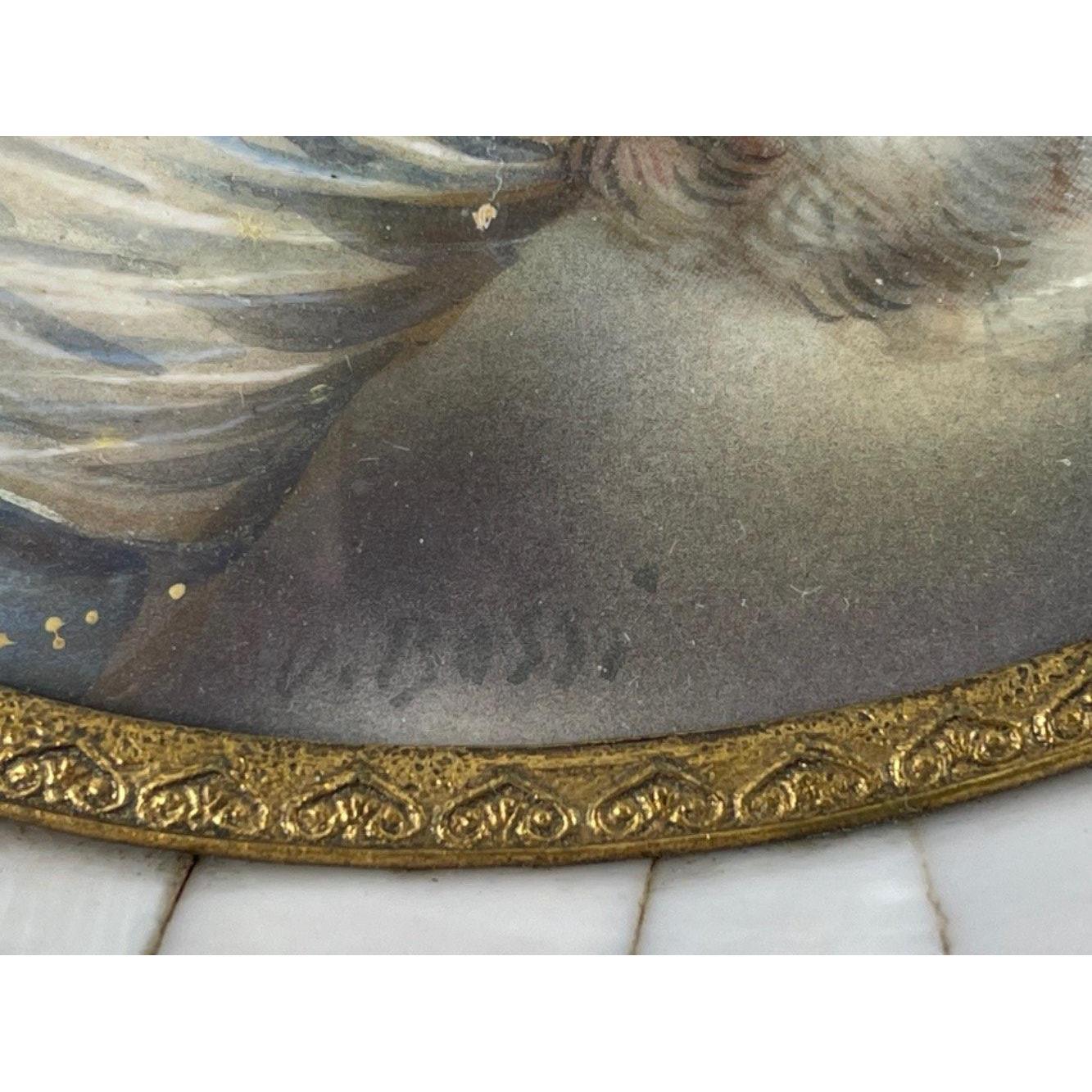 ORIGINAL DOMENICO BOSSI signed (1767 - 1853) oval framed portrait of a Lady, wearing collet pale blue dress with a bow in her hair within a period bone frame dimensions 14cm height x 8cm length
