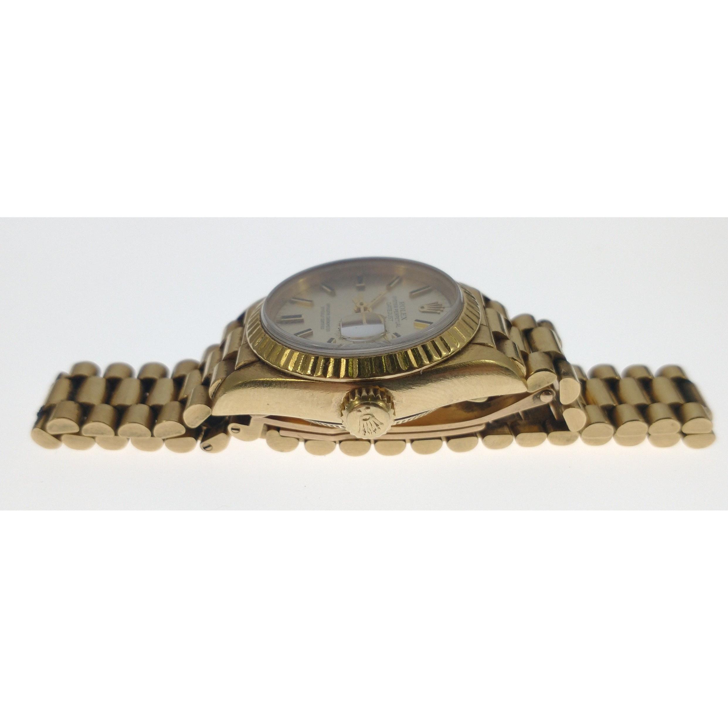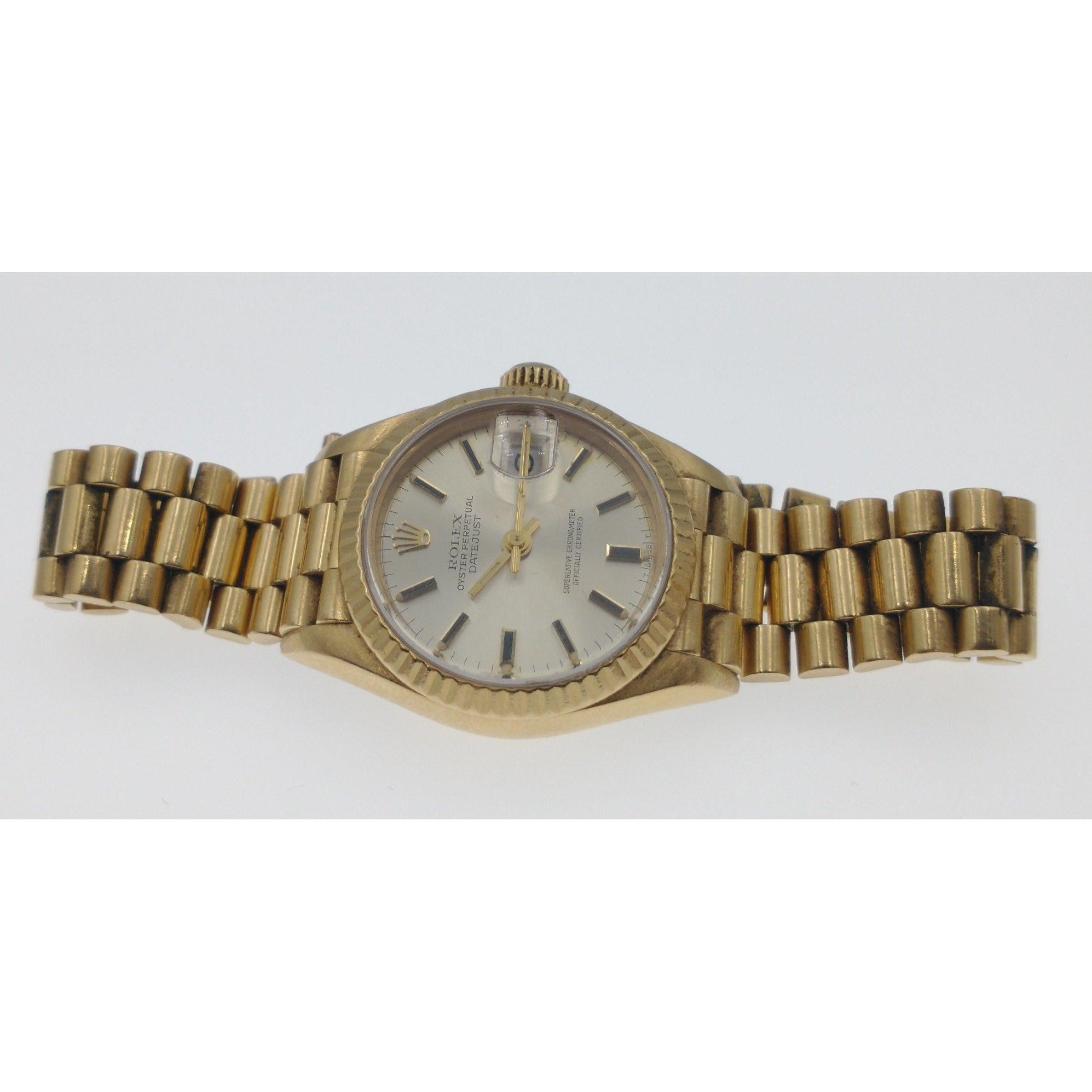 A ROLEX ladies wrist watch OYSTER PERPETUAL DATE JUST 750 stamped YELLOW GOLD Wrist Watch and Bracelet, gross weight 70g approx (no box or paperwork).