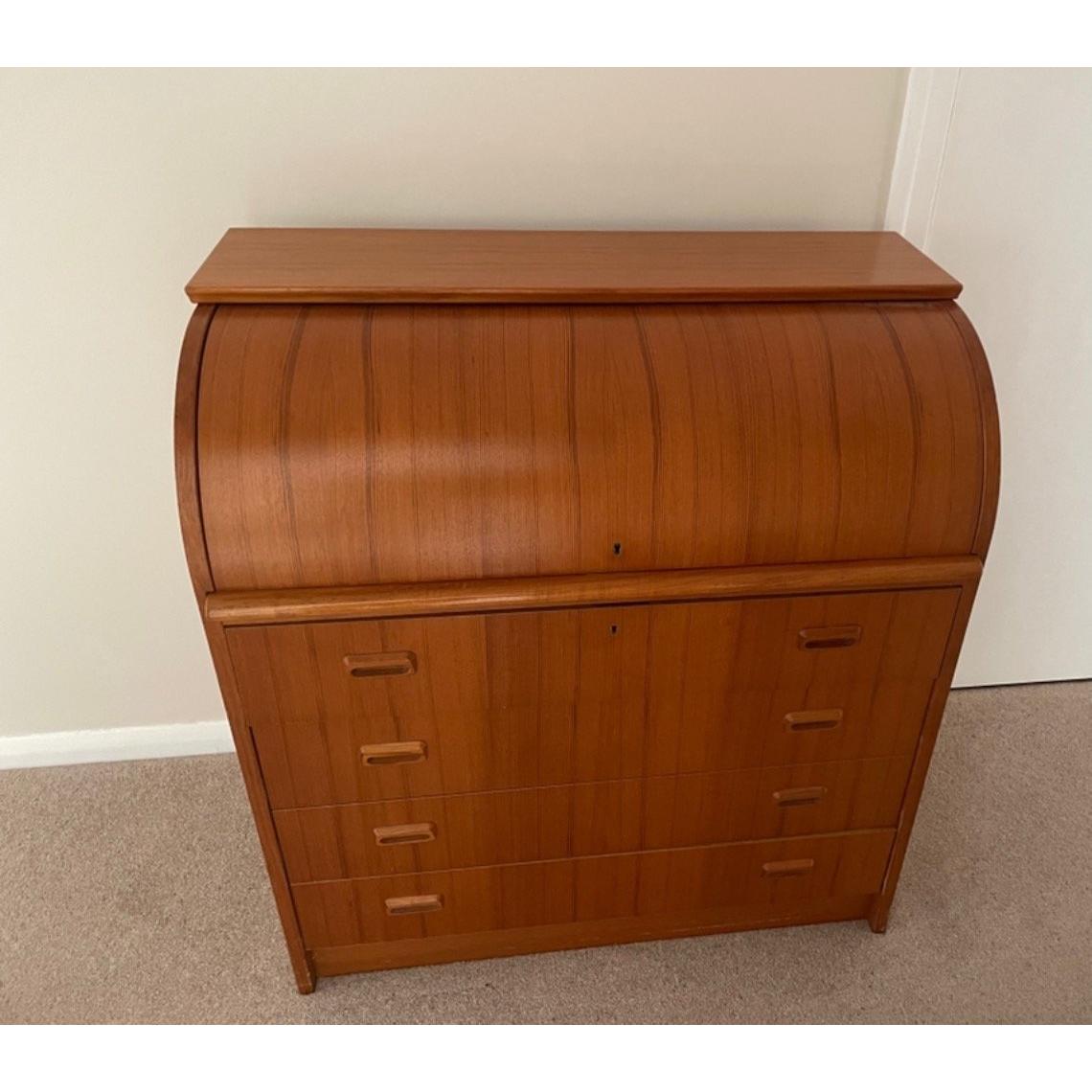 A RETRO teak roller top bureau with two keys 3ft length x 18”depth approx