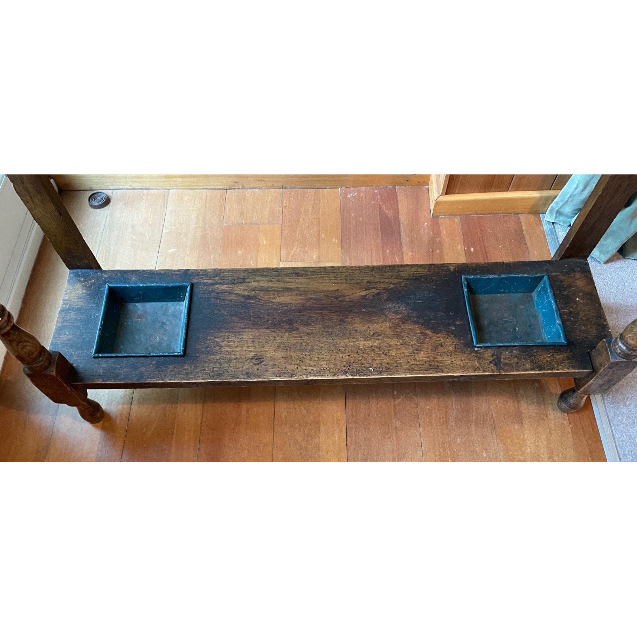 An UNUSUAL c1880's VICTORIAN WELSH DRAGON hand carved oak hall stick and stand with hooks and twin drip trays - dimensions 190cm high x width 101cm x depth 29cm approx